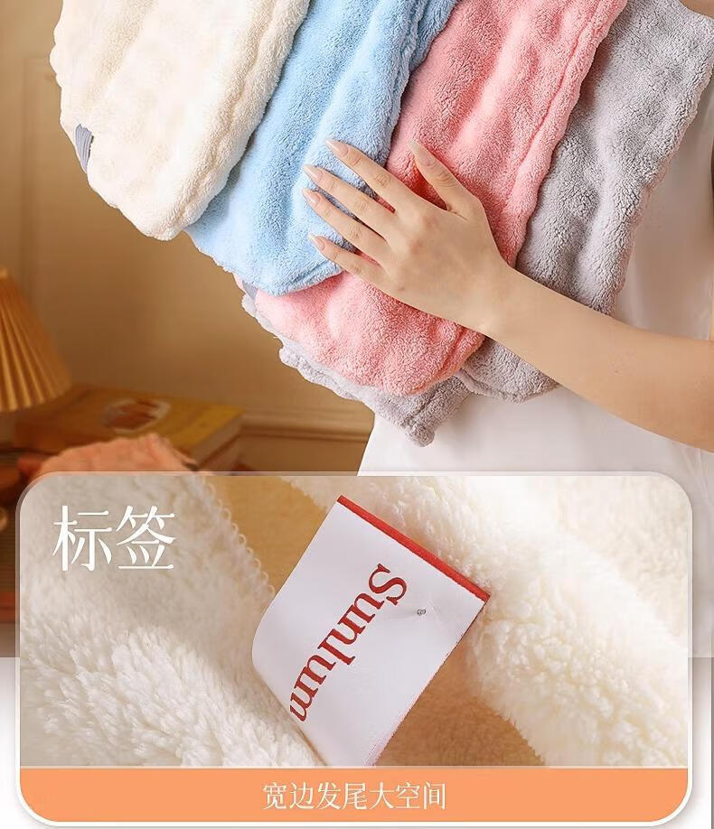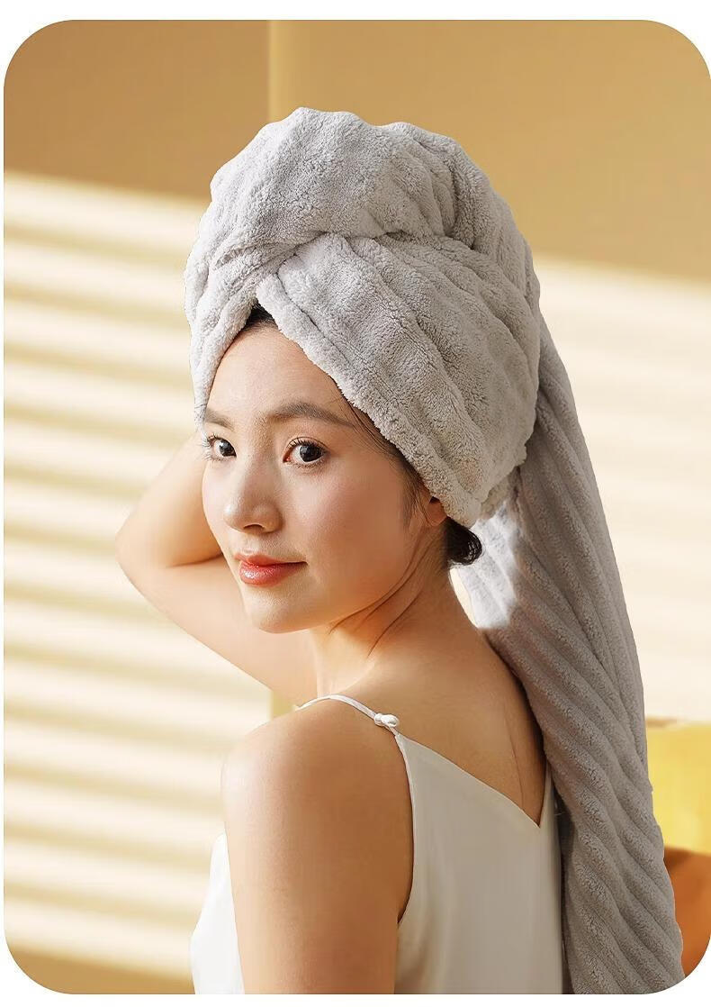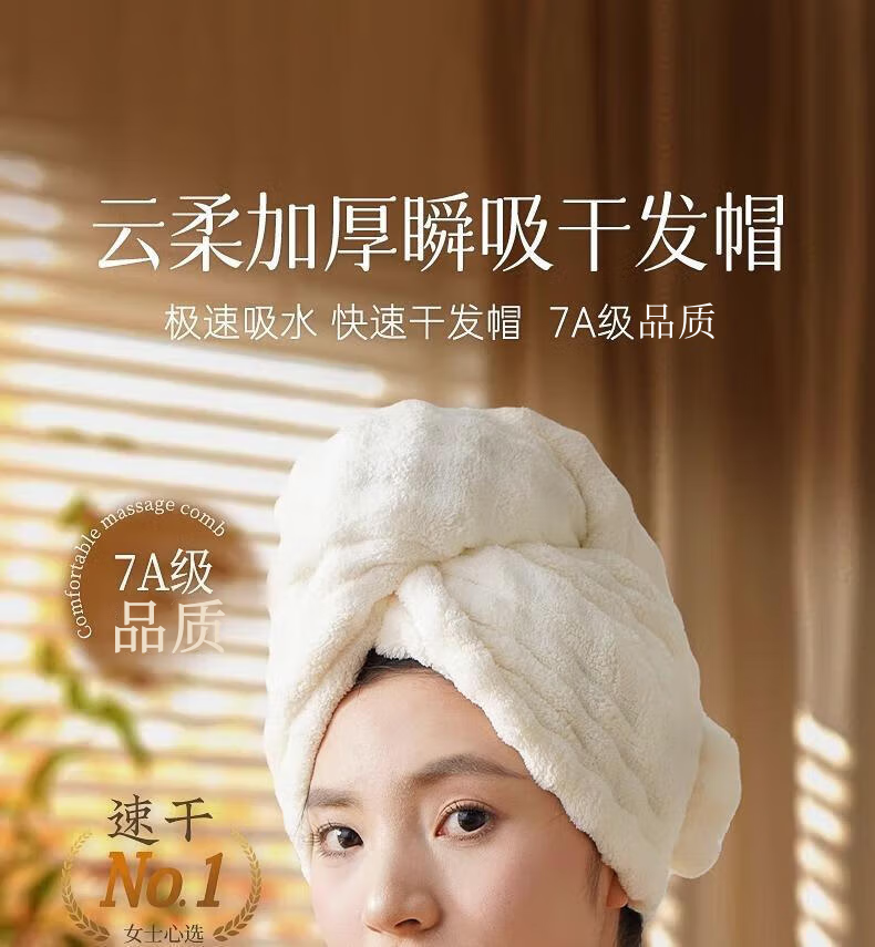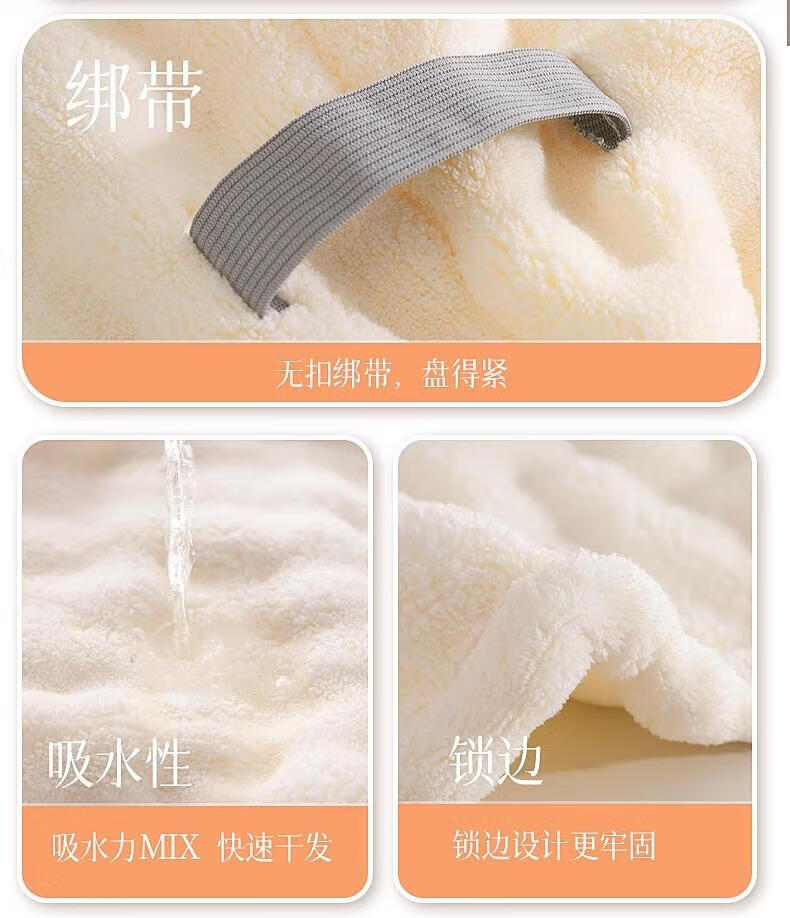 首力加厚干发帽子超强吸水速干女士干发毛巾洗头发包头巾冬季浴帽 【买三送一】【樱花粉+远山灰+奶油白】+送晴空蓝 7A品质&A类品质