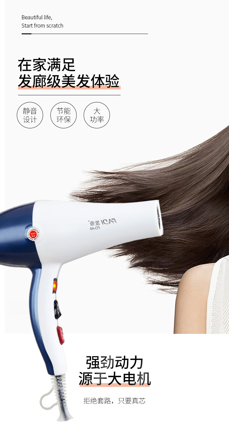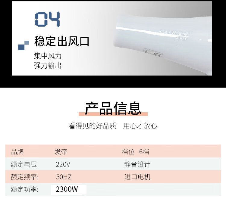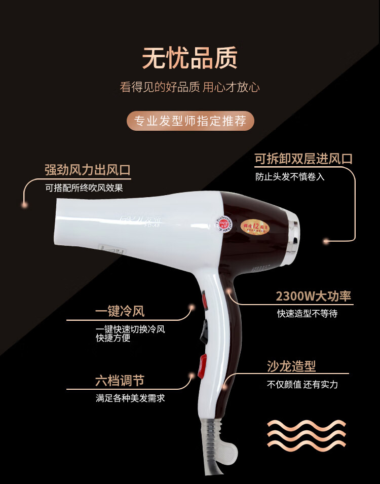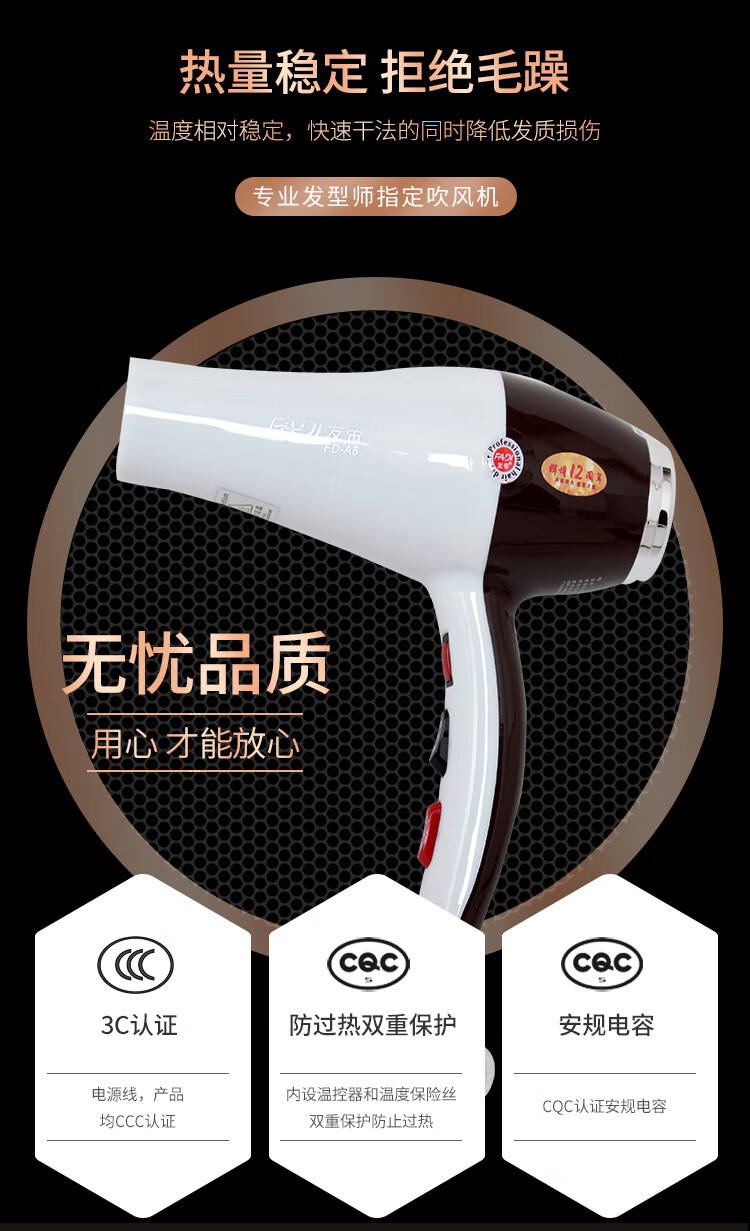 发帝A8吹风机大功率恒温变频不伤发理发店大风力美发发型师专用吹风筒 棕白色
