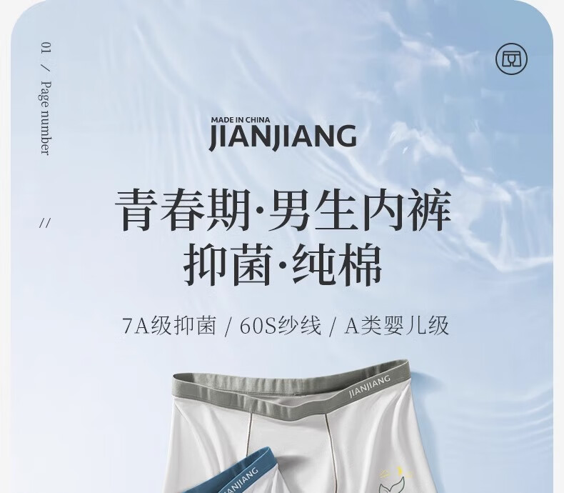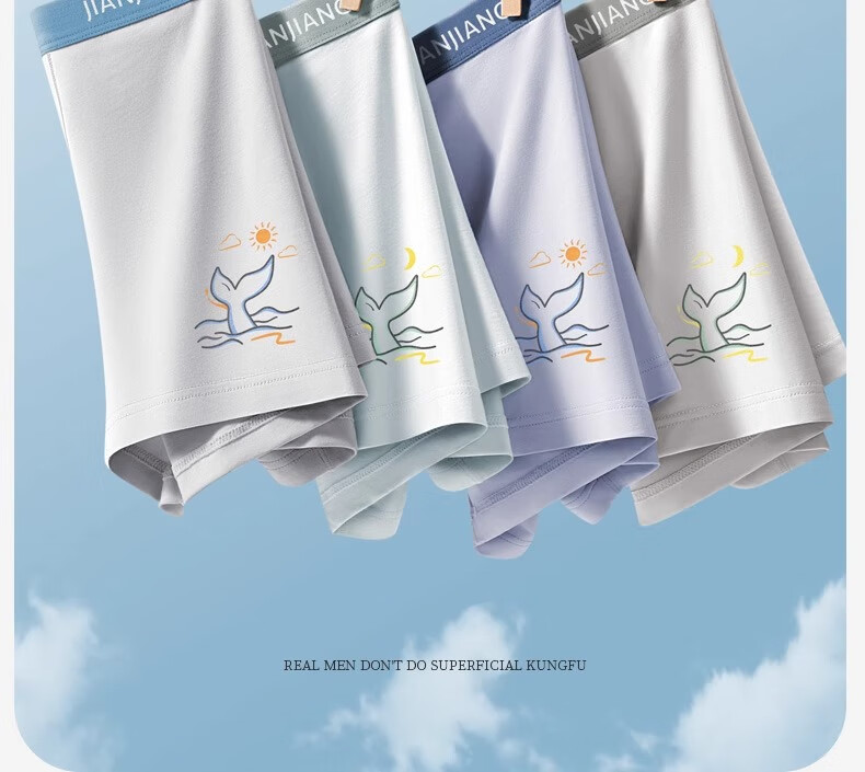 健将男士内裤男平脚裤7A抗菌纯棉青少年学生男孩发育期男生四角短裤衩 【住校生必备】小海豚款组合 4条 M 130cm/体重50-70斤