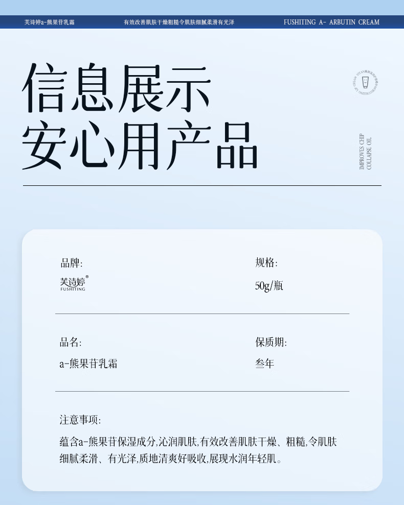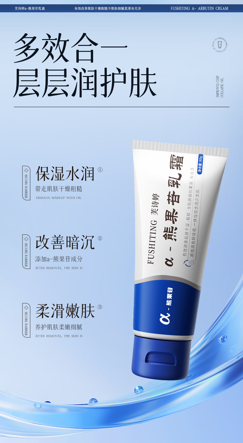 芙诗婷α-熊果苷乳霜膏医研用脸部提亮保湿国家药监批准字号皮肤研究所 1支【α熊果苷乳霜50g】拍2发3