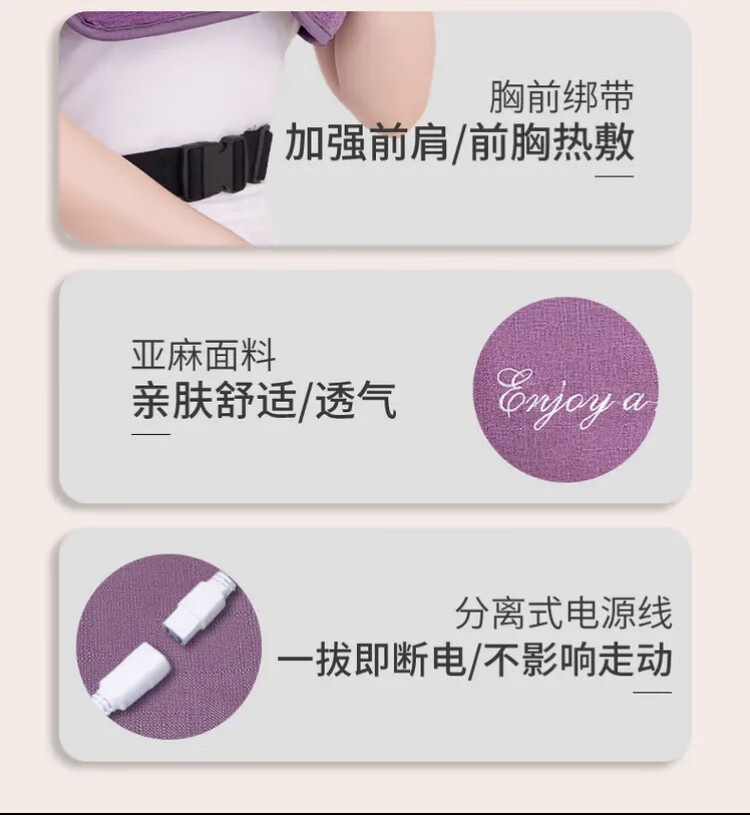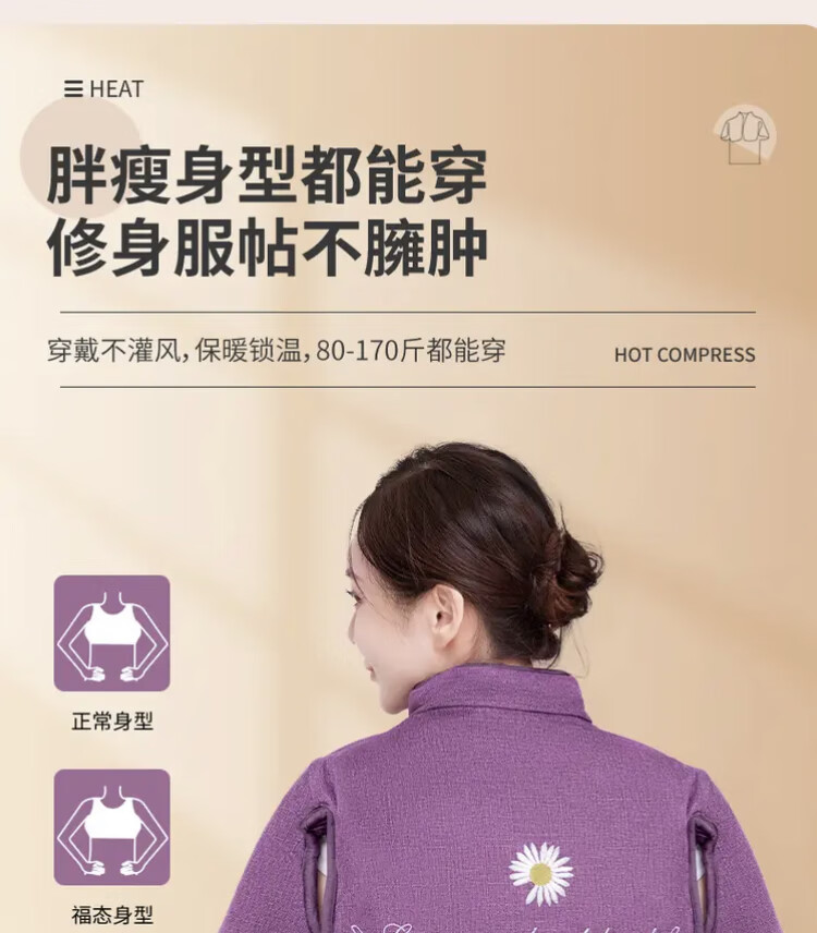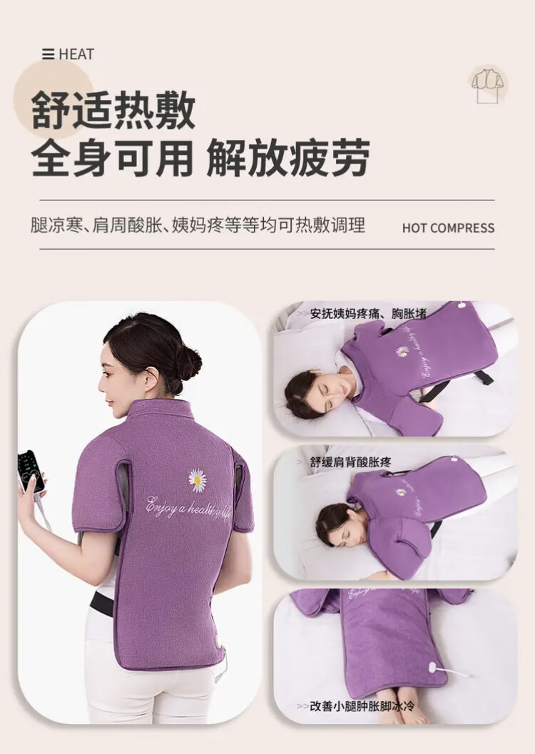 俞兆林(YUZHAOLIN)热敷盐袋粗盐热敷包海盐电加热披肩家用艾炙盐包热敷理疗袋子 紫色【带袖】智能12档定时