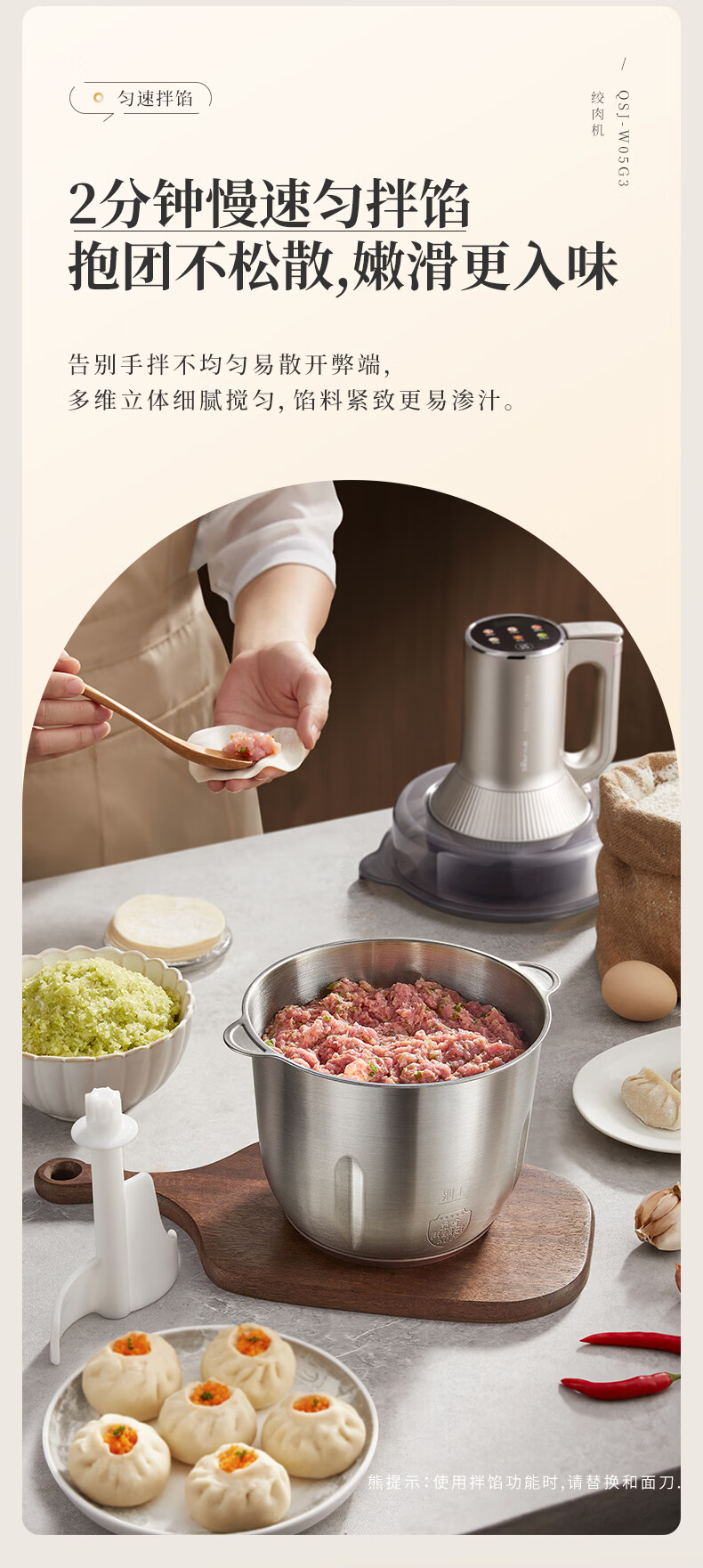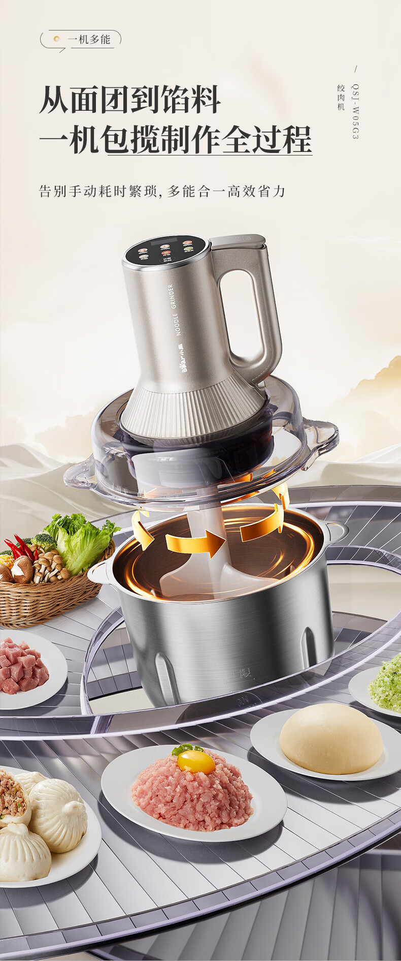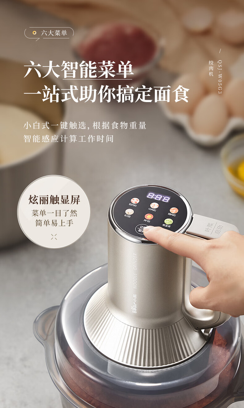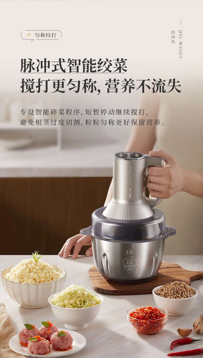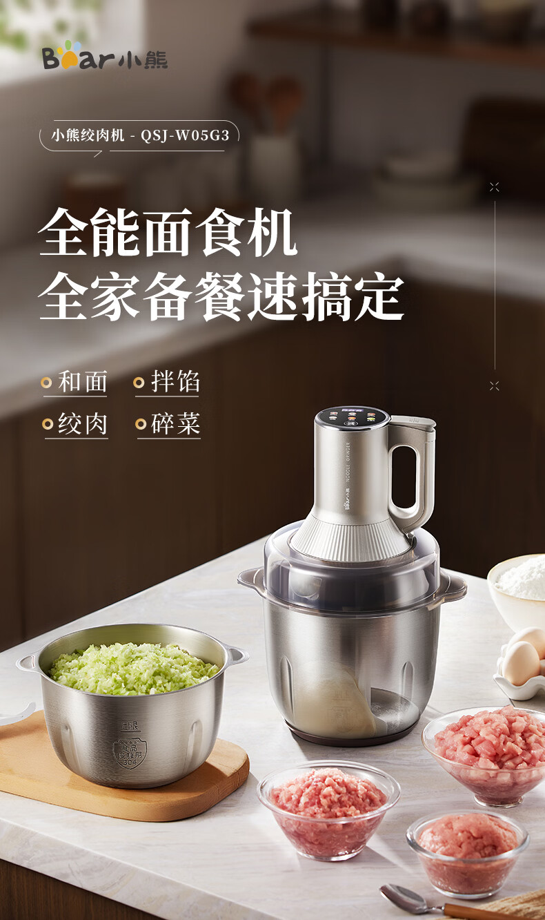 小熊(Bear)绞肉机家用 多功能料理机和面机打泥机碎肉机绞馅机搅拌机揉面绞肉绞菜多功能和面一体机QSJ-W05G3