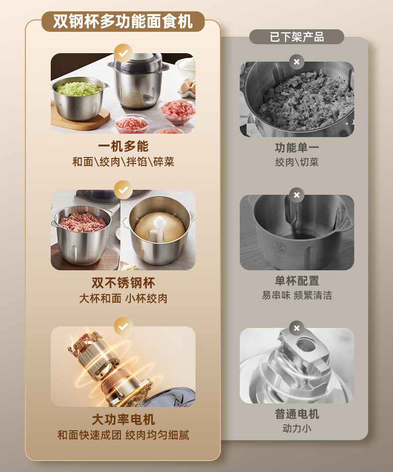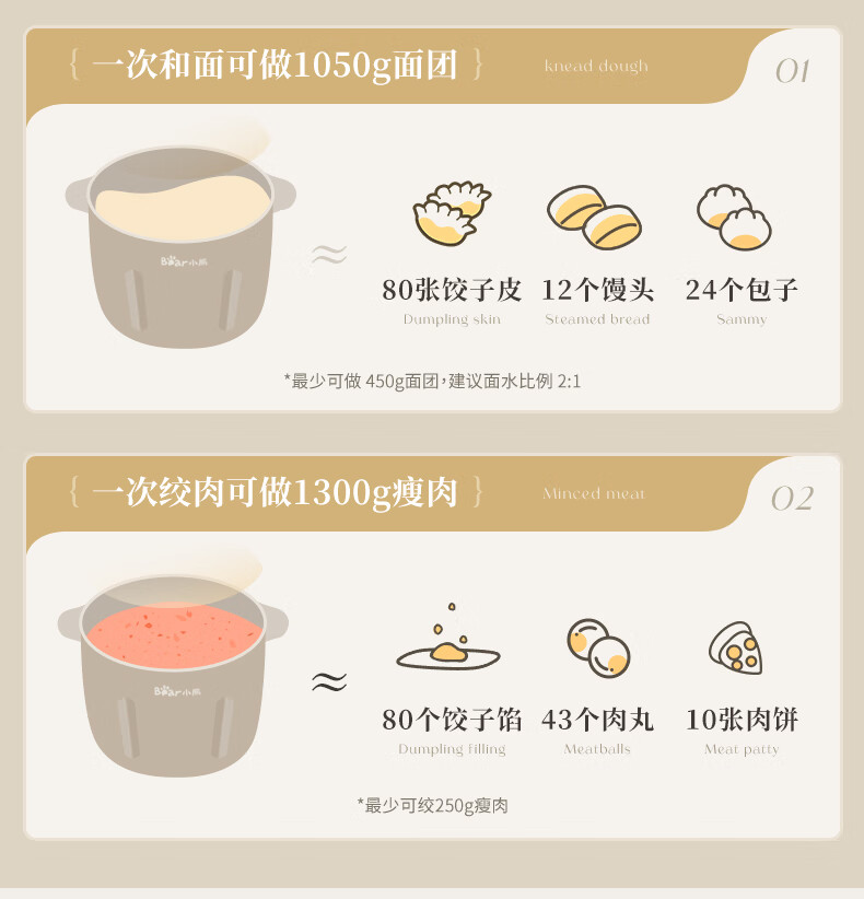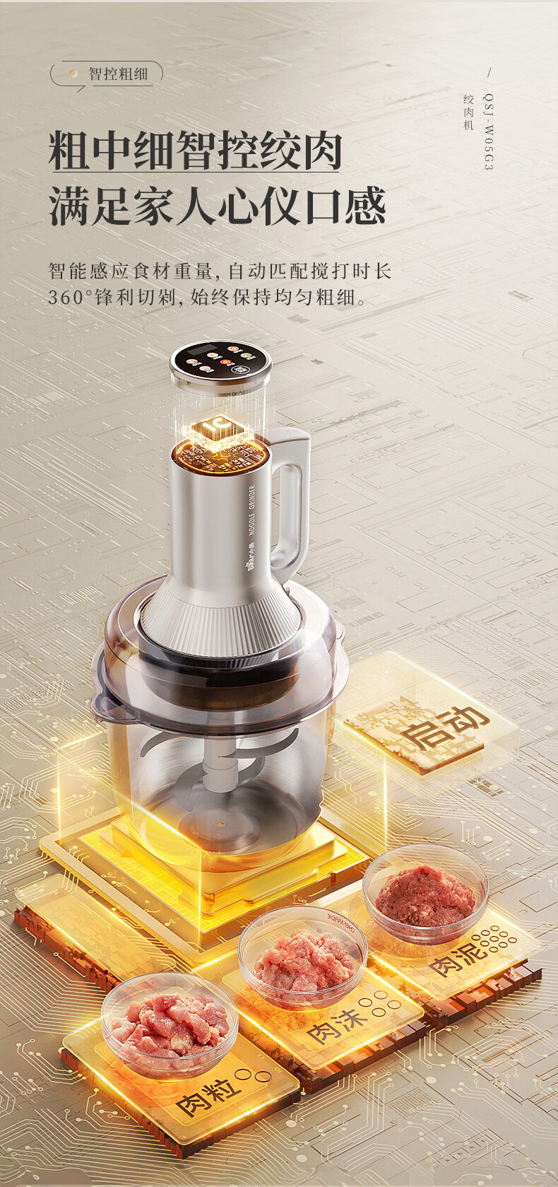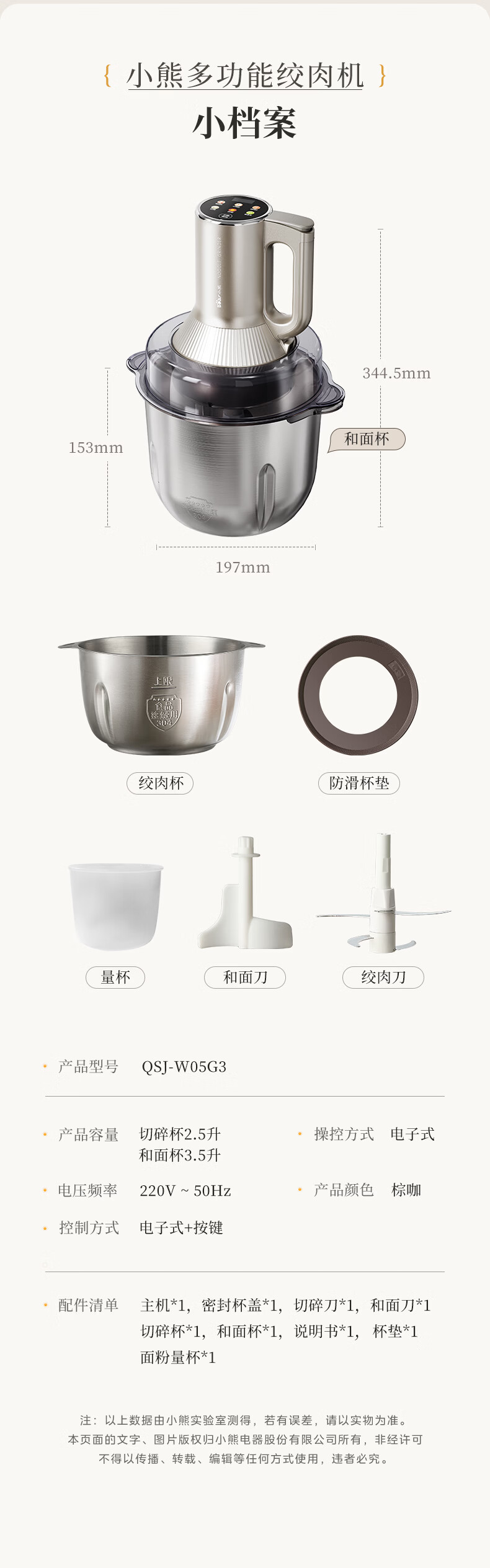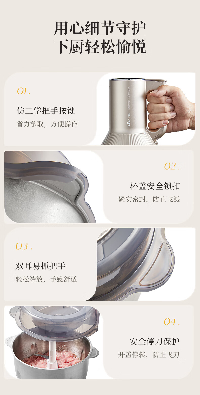 小熊(Bear)绞肉机家用 多功能料理机和面机打泥机碎肉机绞馅机搅拌机揉面绞肉绞菜多功能和面一体机QSJ-W05G3