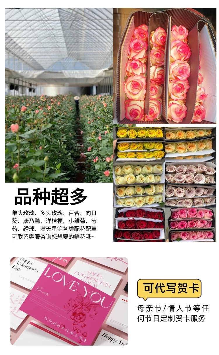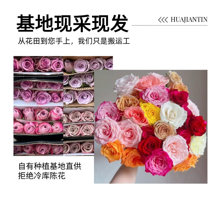 花间町随机玫瑰鲜花30枝基地花束云南昆明直发水养批发混搭花束源头直发