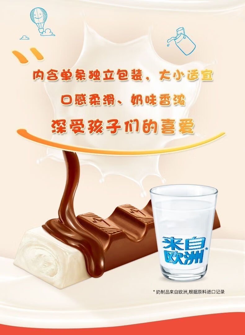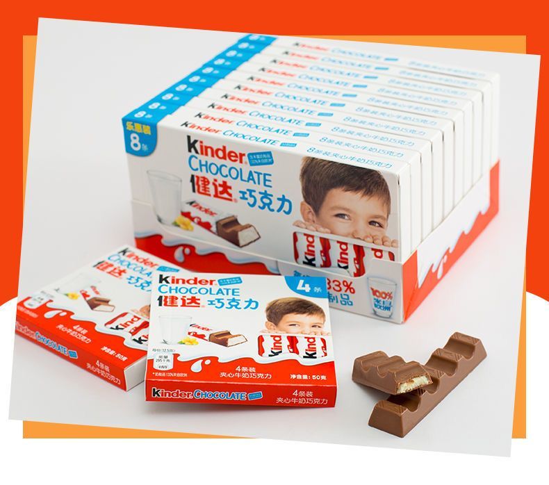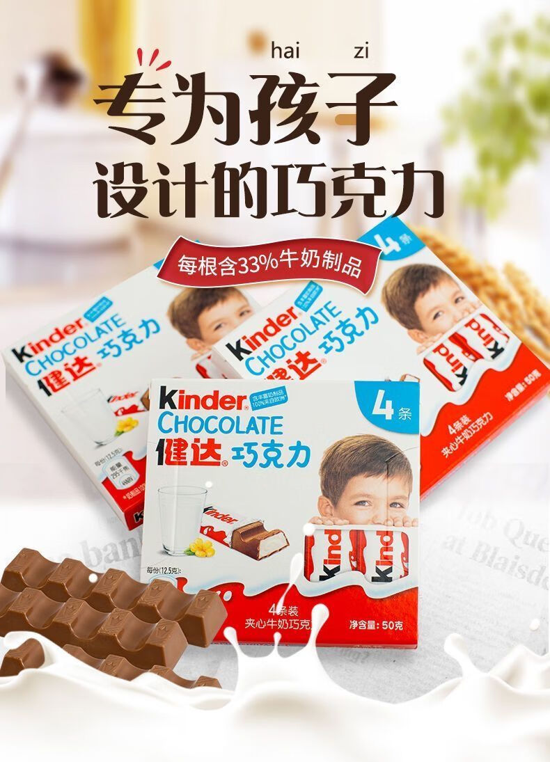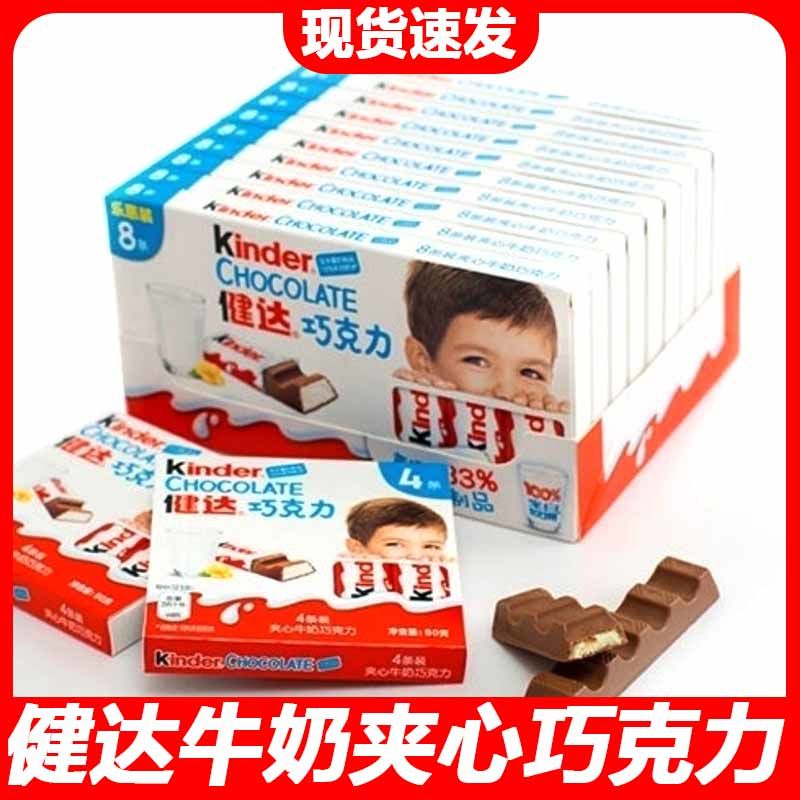 健达进口Kinder健达牛奶巧克力T4/T8网红儿童零食夹心糖果年货礼物 健达T4巧克力50g1盒【内4条】