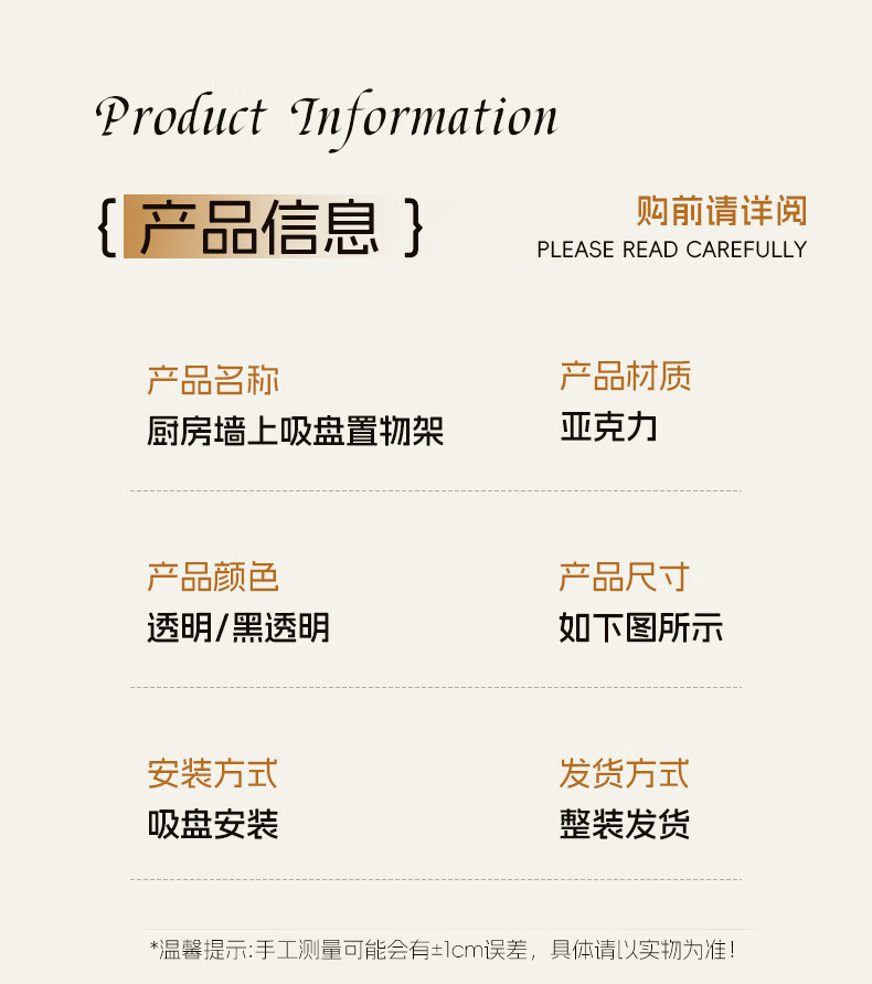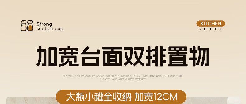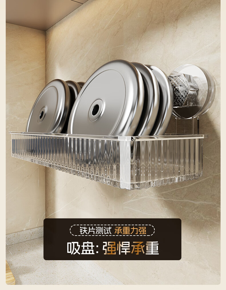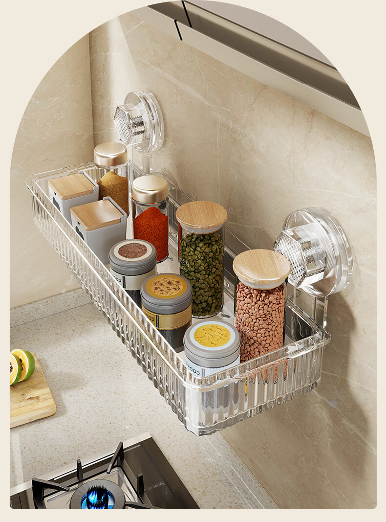 尔思家调料置物架吸盘壁挂式墙上免打孔佐料收纳调料架厨房调料瓶收纳架 吸盘条纹四方(透明-单层)