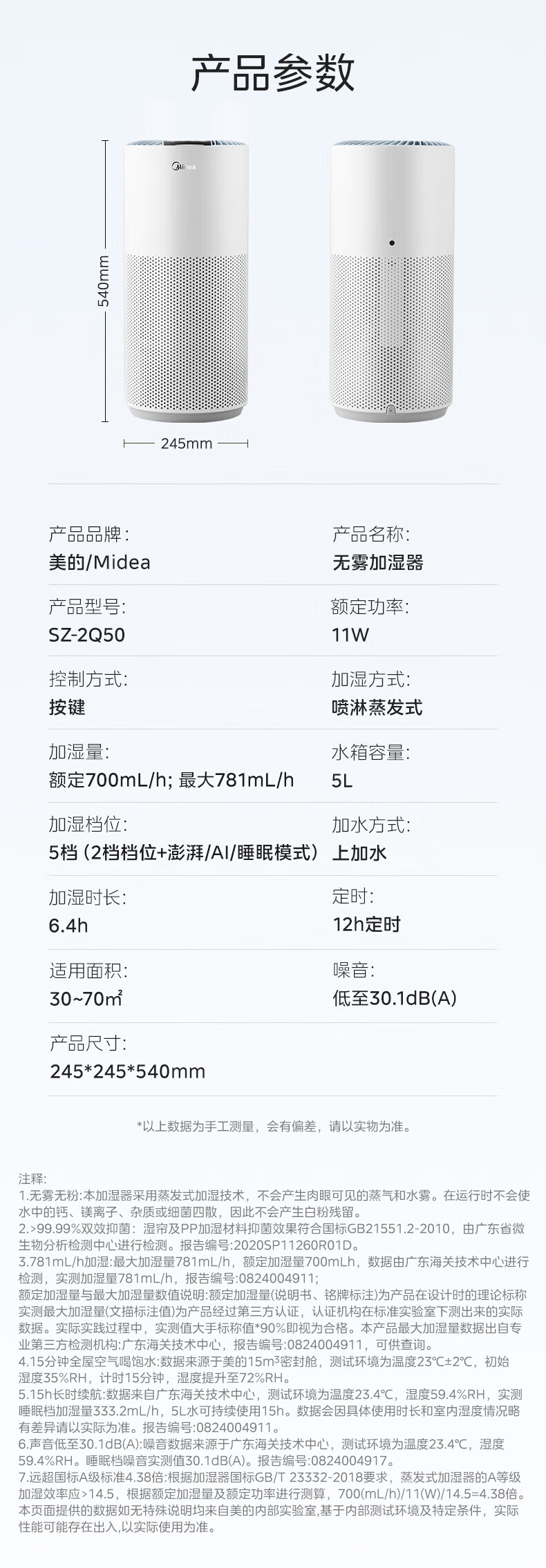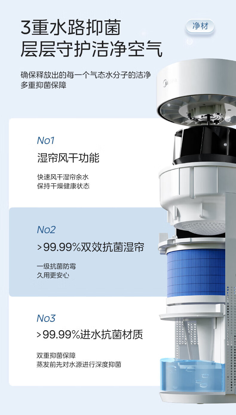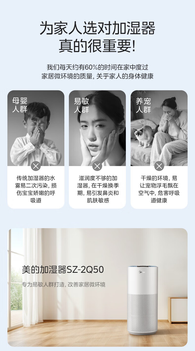 美的(Midea)蒸发式无雾加湿器快速加湿 5L大容量 卧室轻音空调伴侣家用办公室婴儿孕妇空气纯净式 SZ-2Q50 【喷淋式加湿】