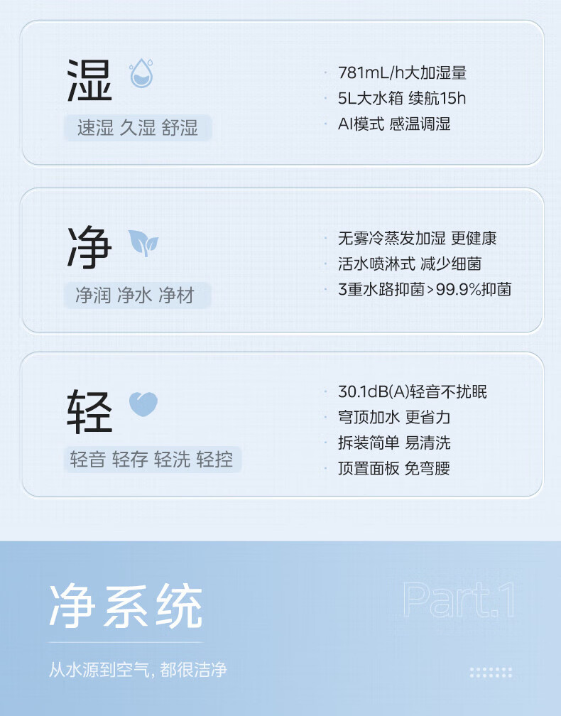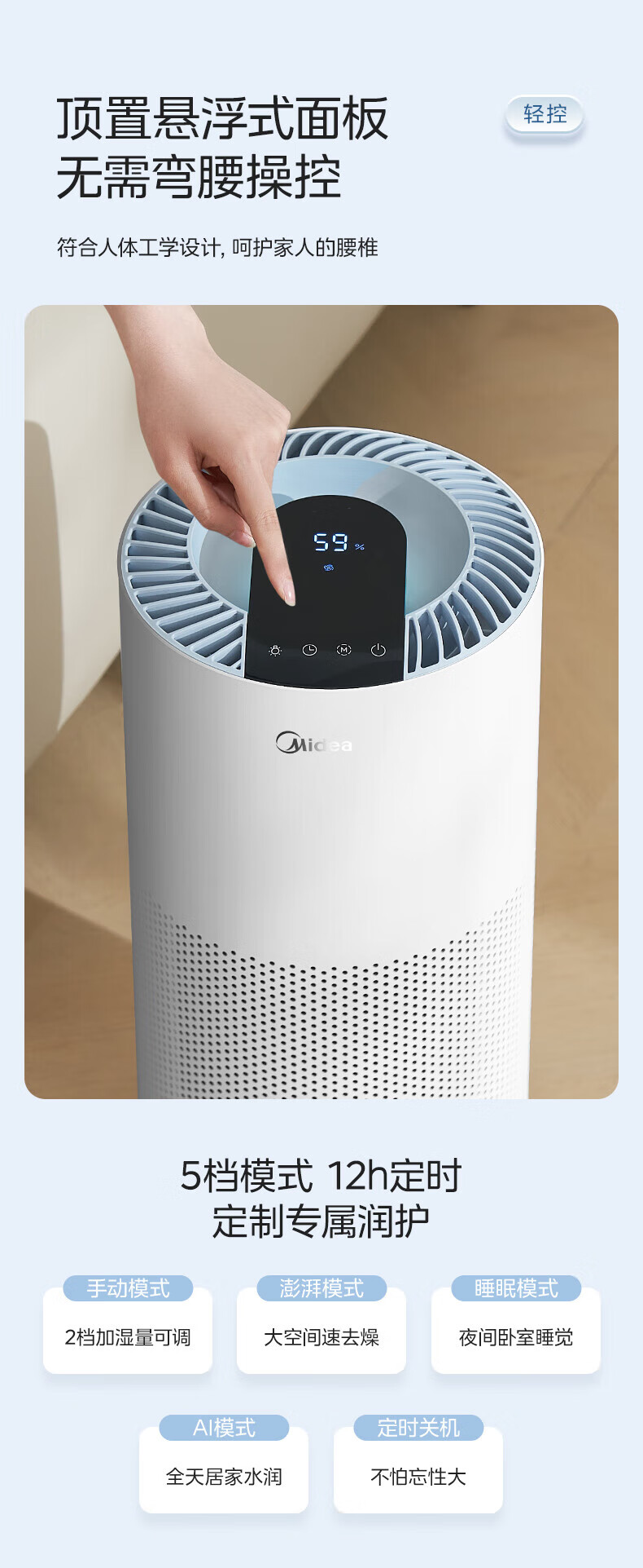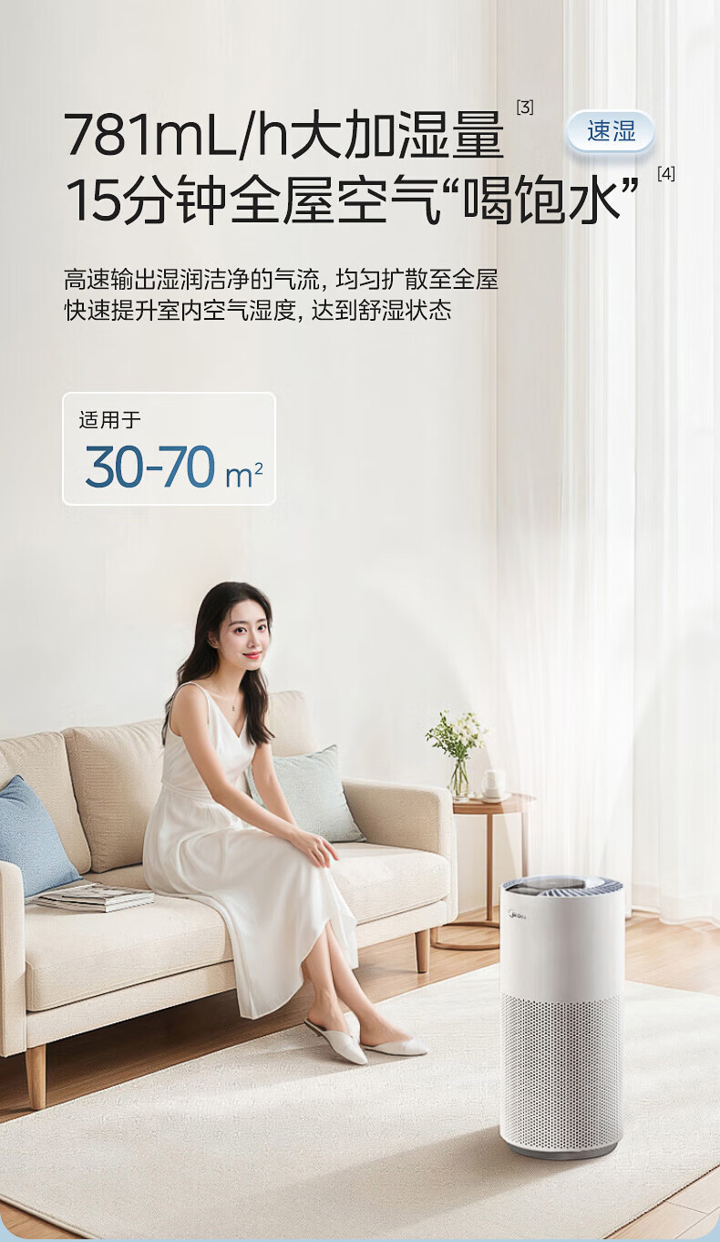美的(Midea)蒸发式无雾加湿器快速加湿 5L大容量 卧室轻音空调伴侣家用办公室婴儿孕妇空气纯净式 SZ-2Q50 【喷淋式加湿】