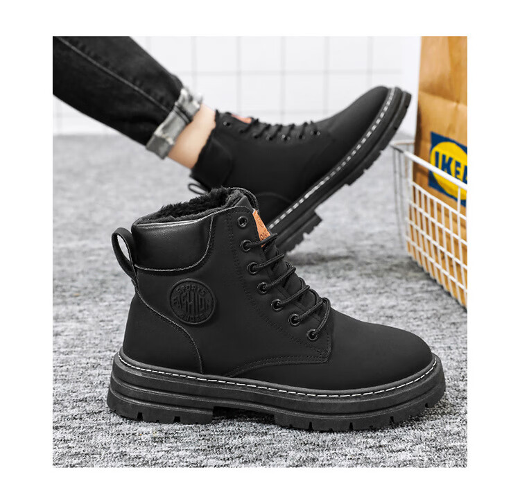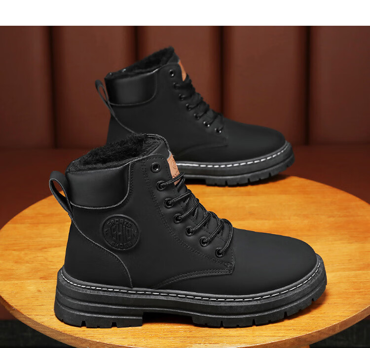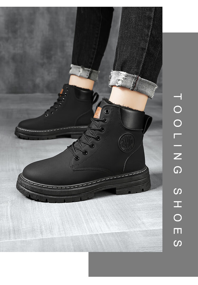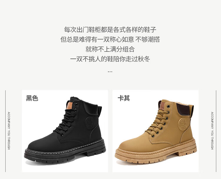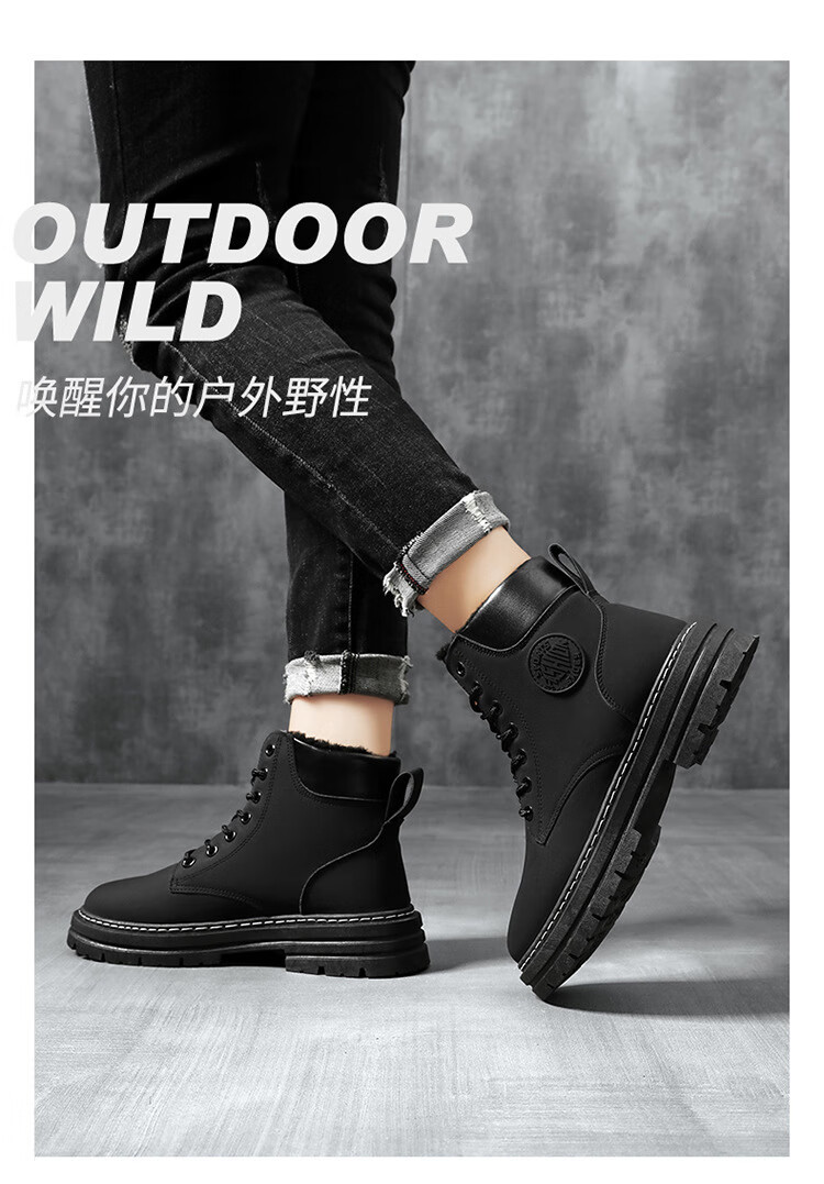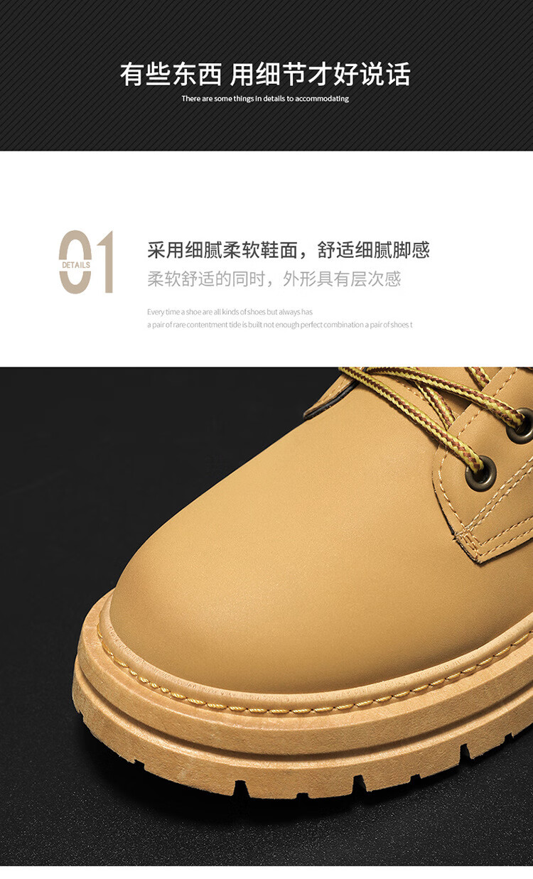 稻草人(MEXICAN)真皮牛皮冬季加绒马丁靴男士高帮工装鞋潮流百搭厚底加厚保暖棉鞋 黄色加绒【真牛皮 送运费险】 41