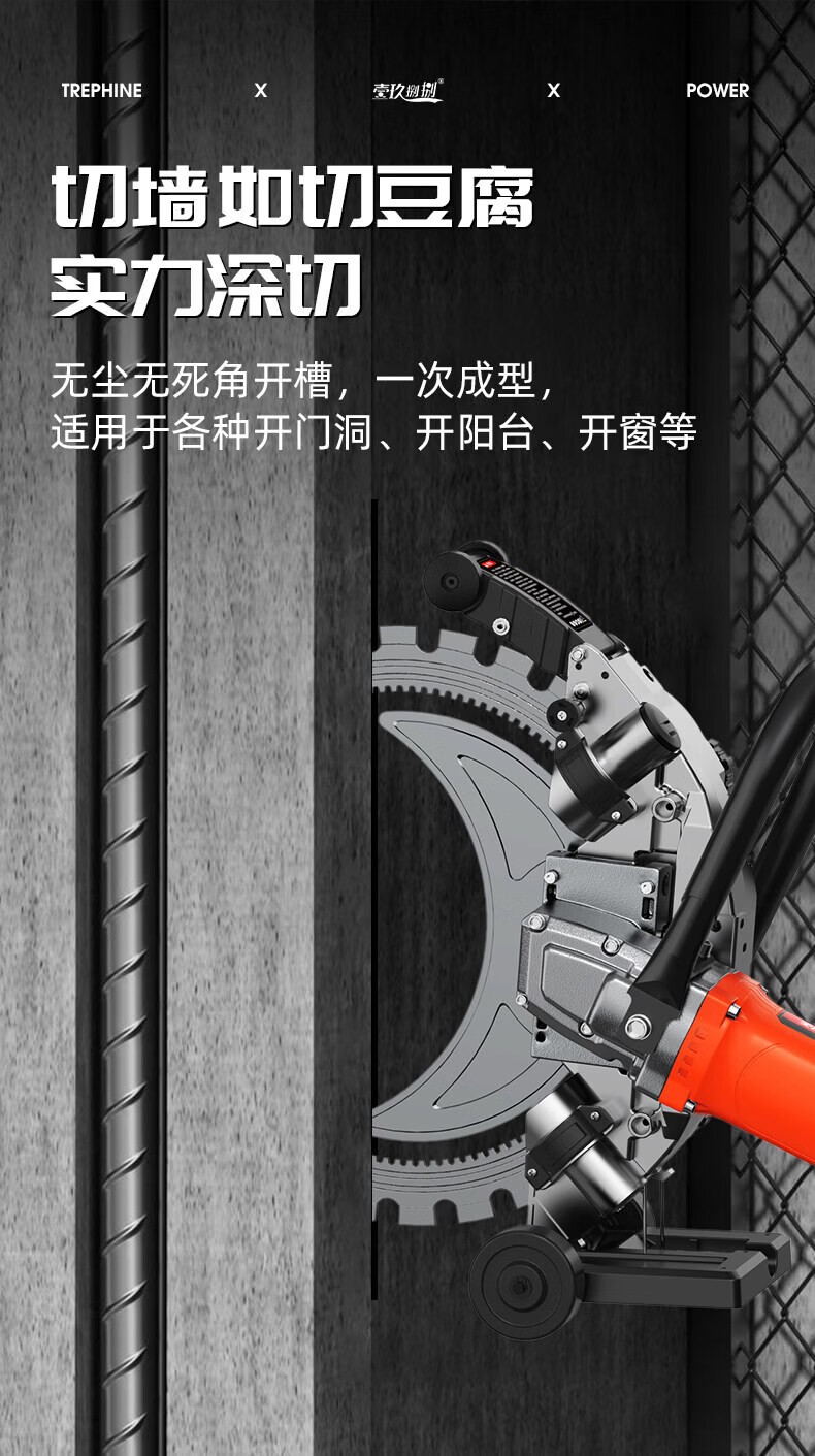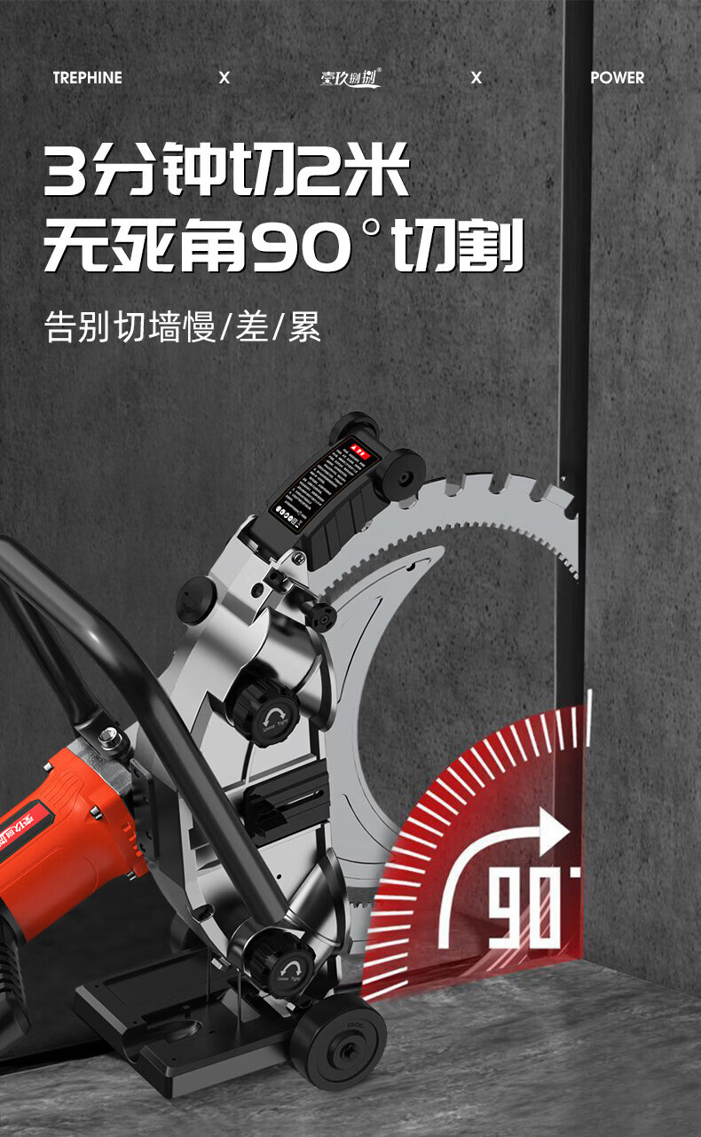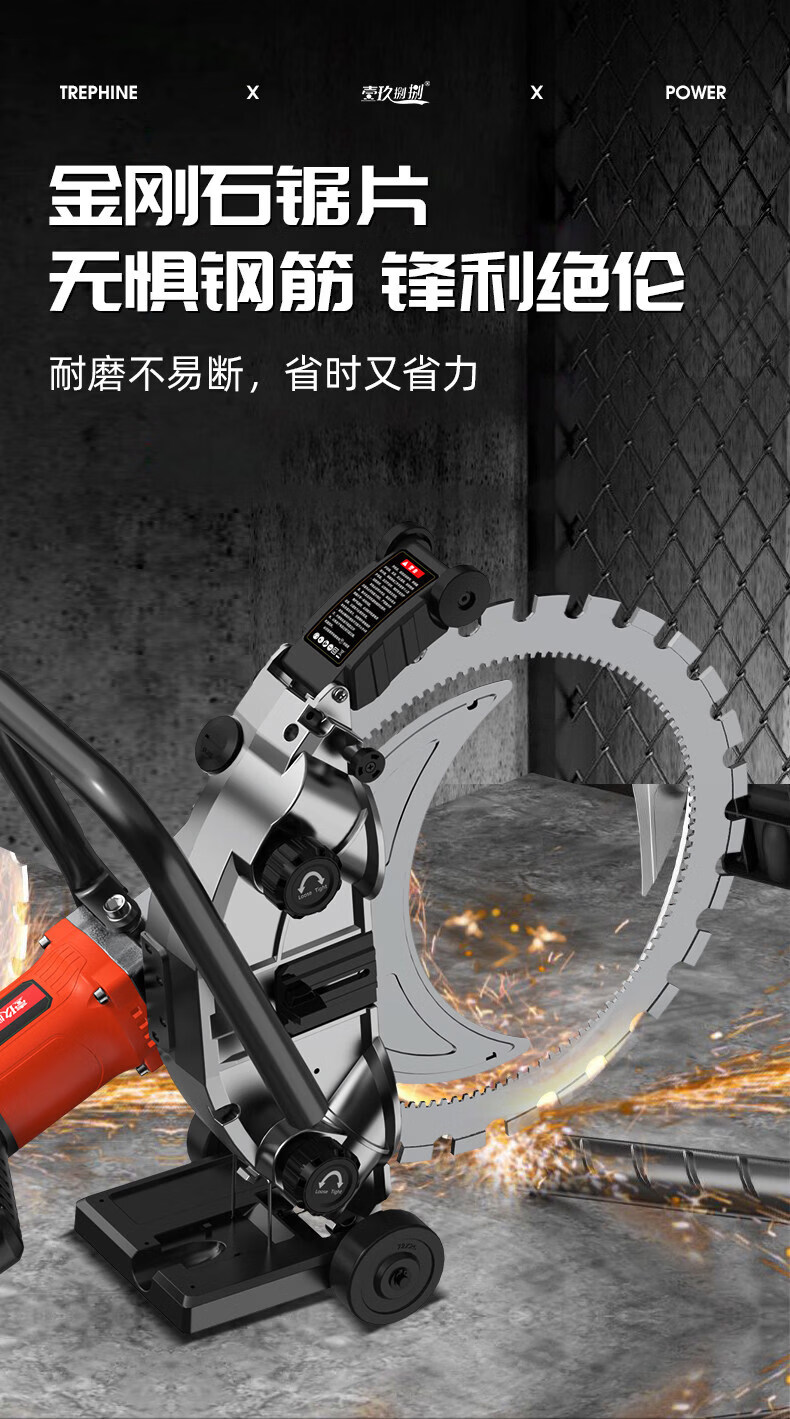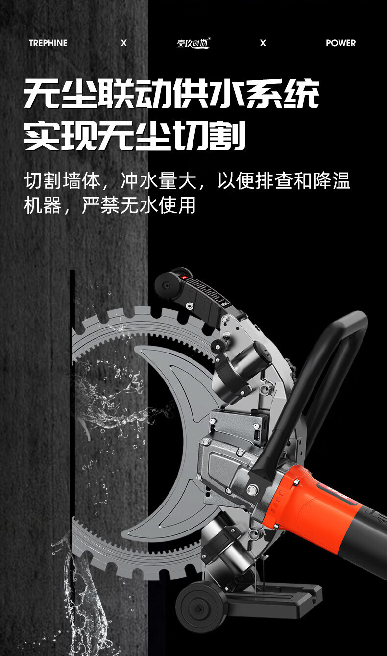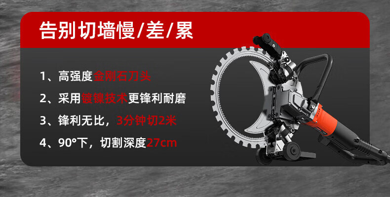 壹玖捌捌高频无刷环锯新款切墙机混凝土切割机大功率手提式割墙机无尘锯墙 9580W【免调300型】高频环锯(切割深度30cm)无锯片