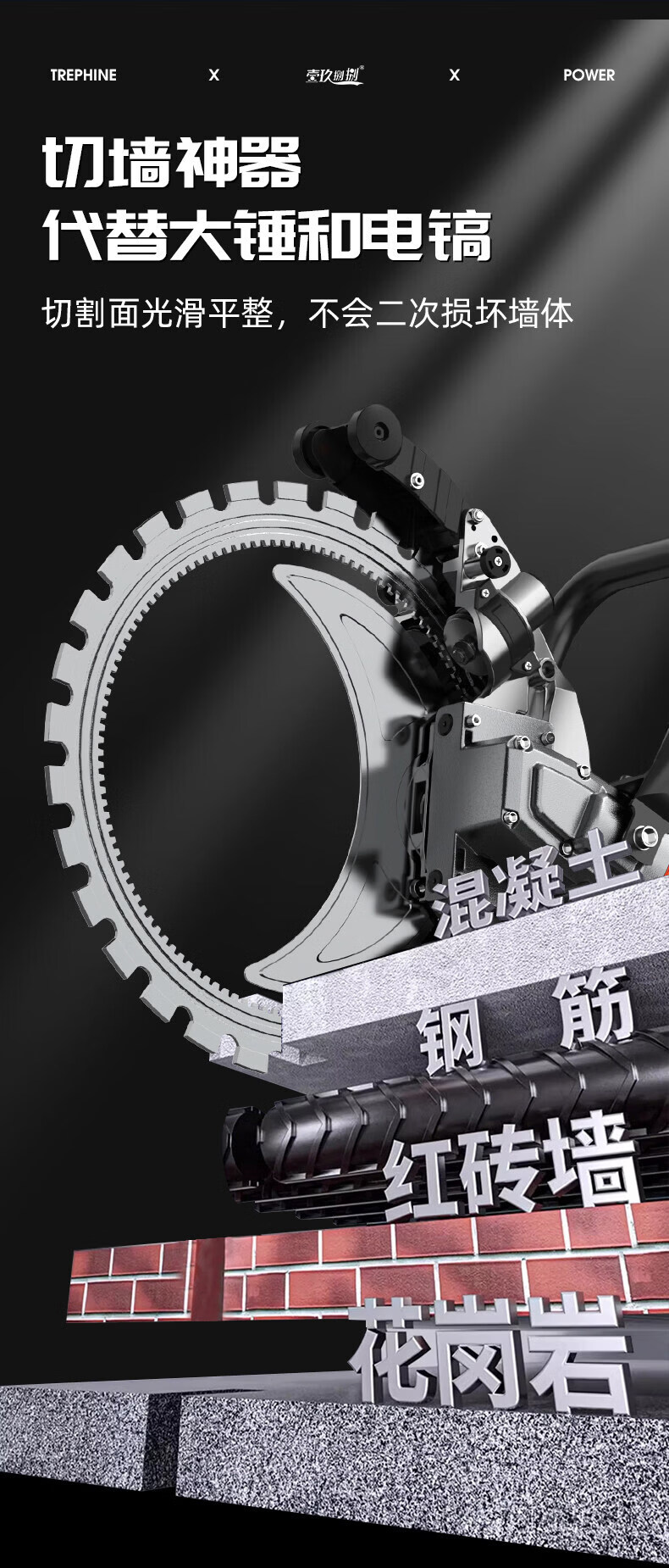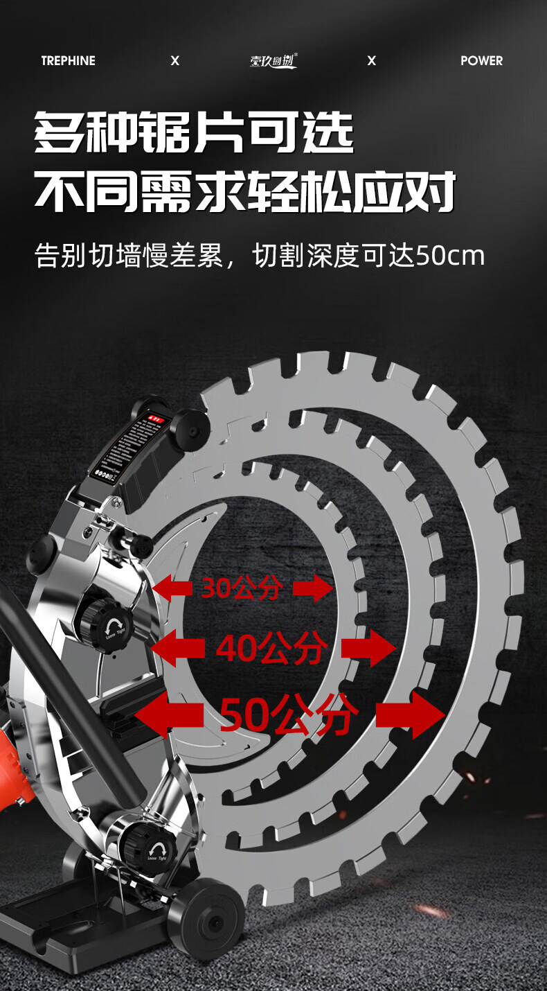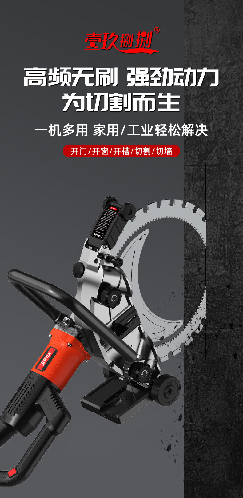 壹玖捌捌高频无刷环锯新款切墙机混凝土切割机大功率手提式割墙机无尘锯墙 9580W【免调300型】高频环锯(切割深度30cm)无锯片