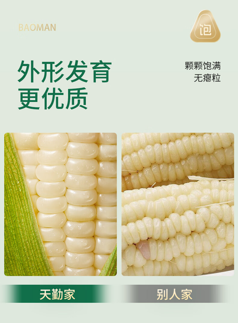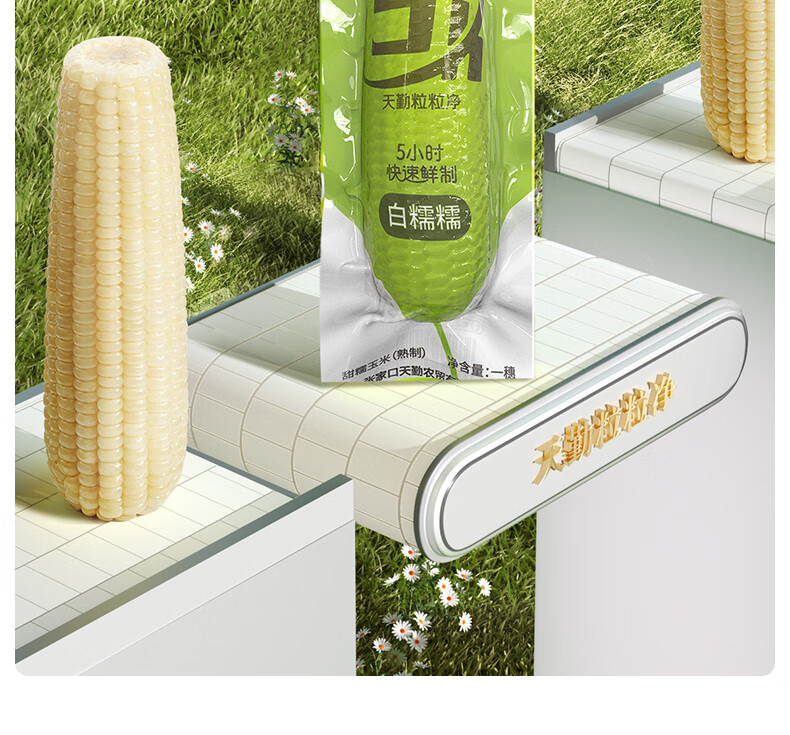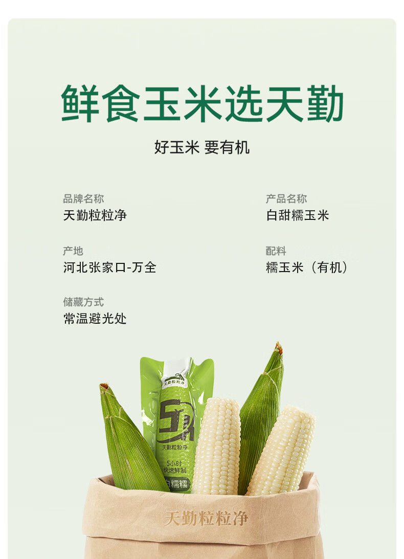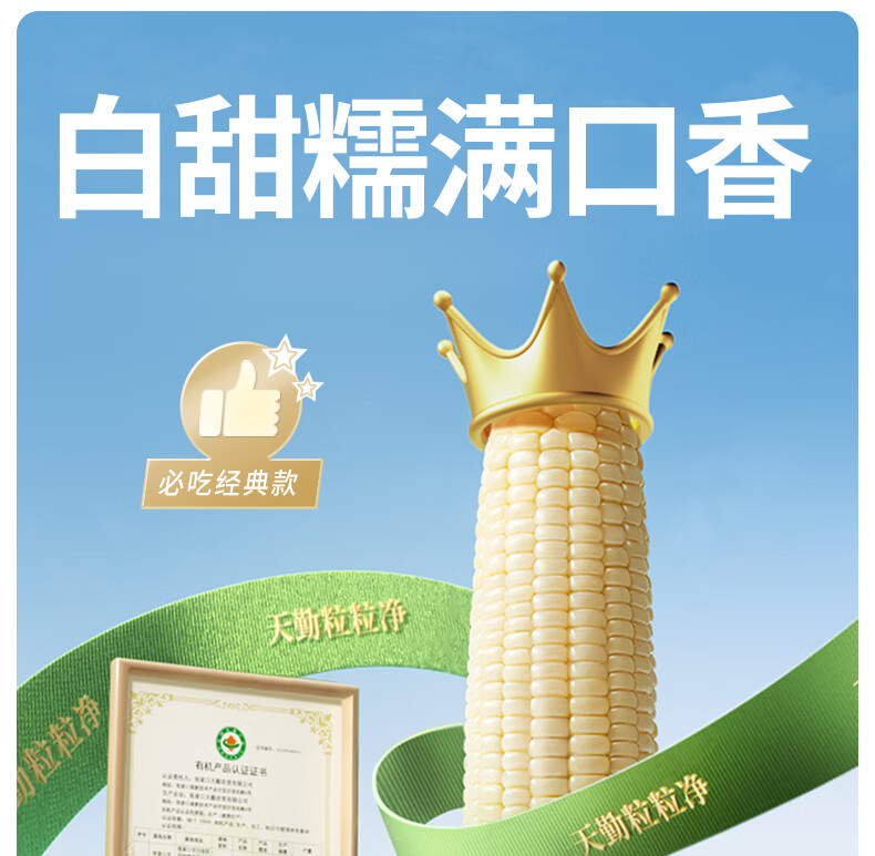 天勤粒粒净白糯玉米 新鲜甜粘 糯玉米棒 有机认证 真空包装 加热即食 小白糯230g*3条
