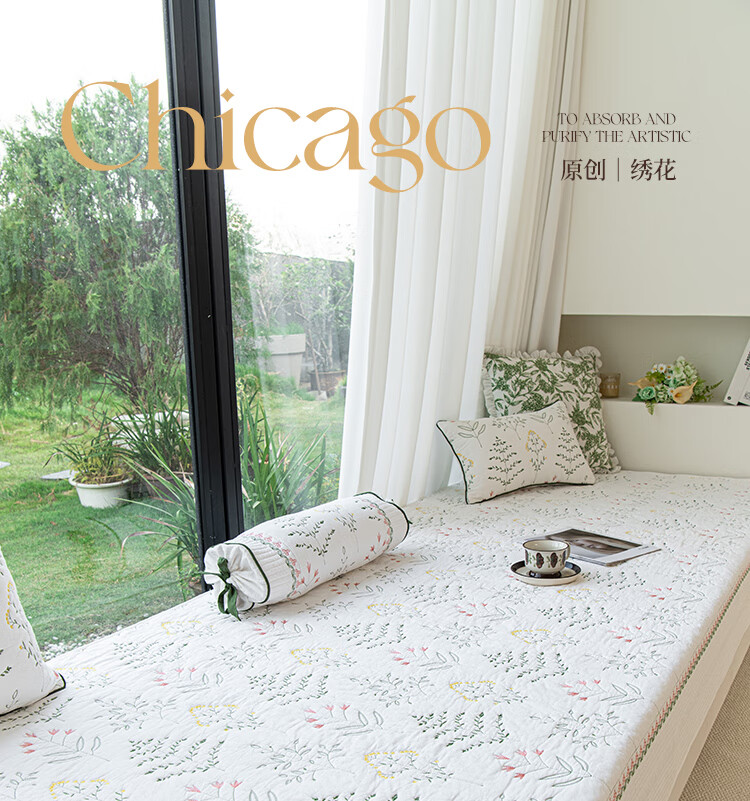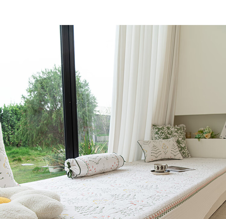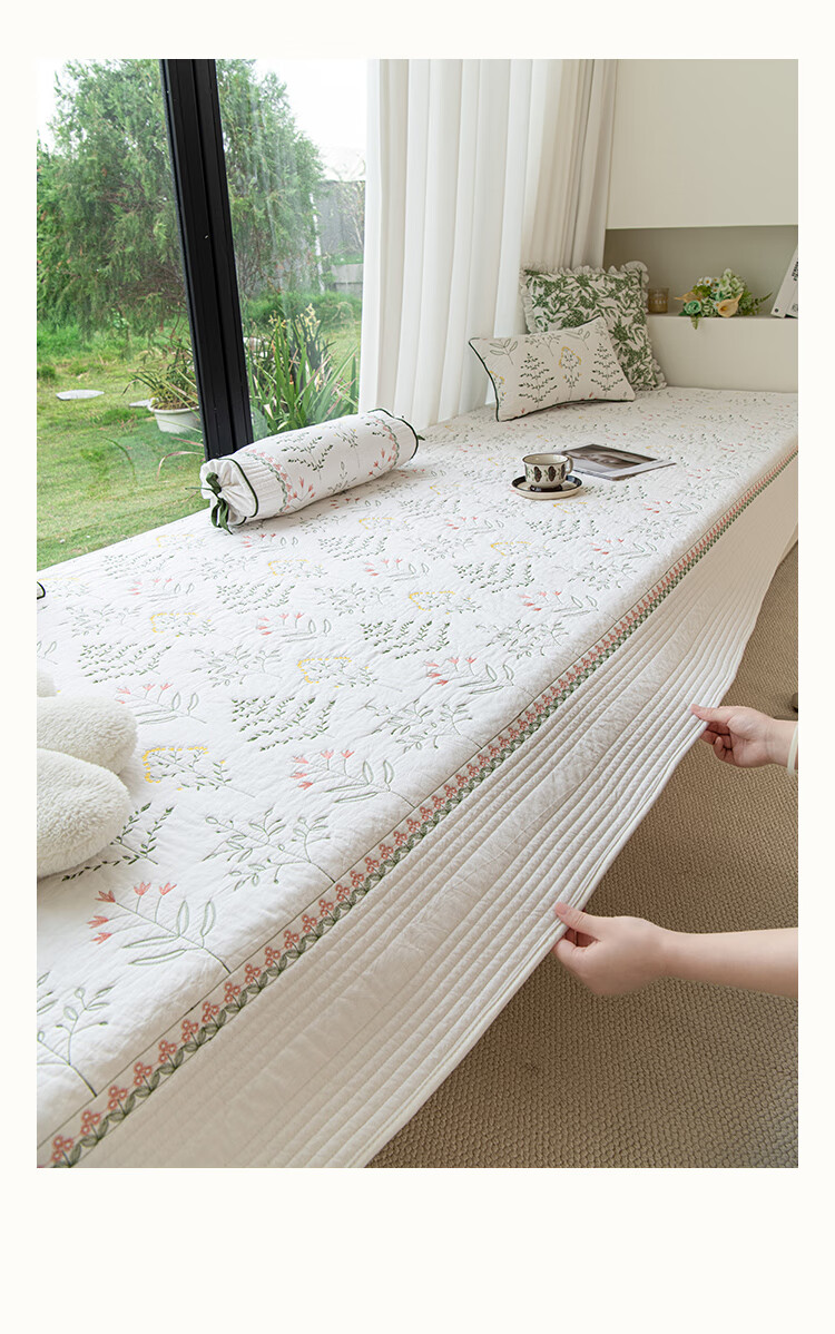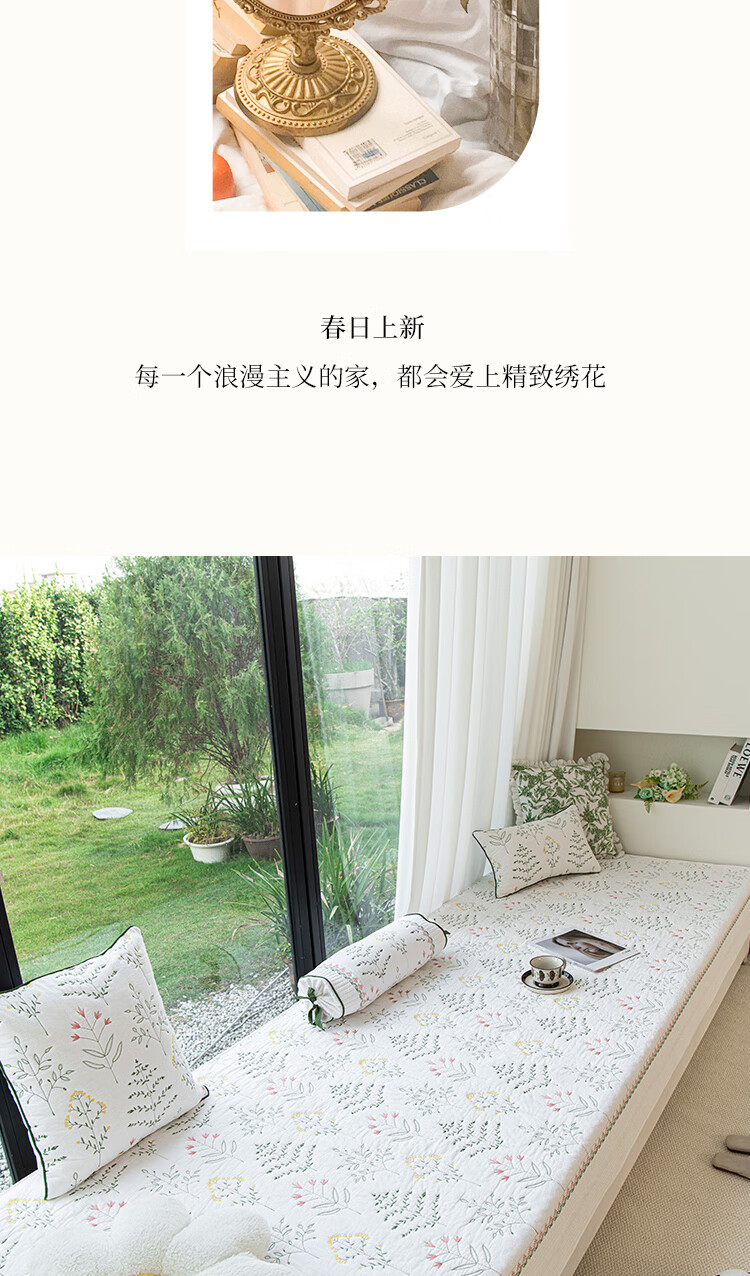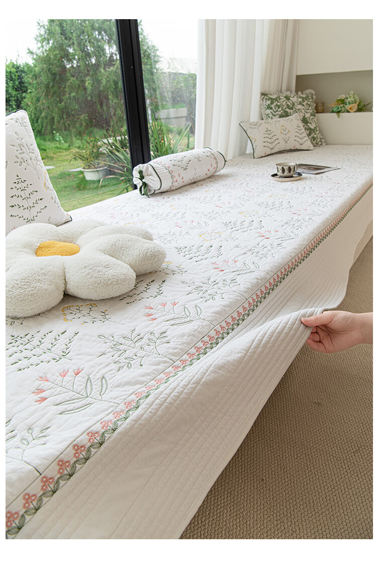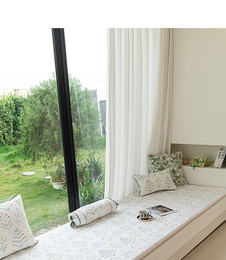 缔卓怡奶油风纯棉飘窗垫四季通用卧室防滑窗台垫阳台榻榻米全棉坐垫 草间弥生-米黄(质朴真棉麻,软到心坎儿) 90cm*270cm