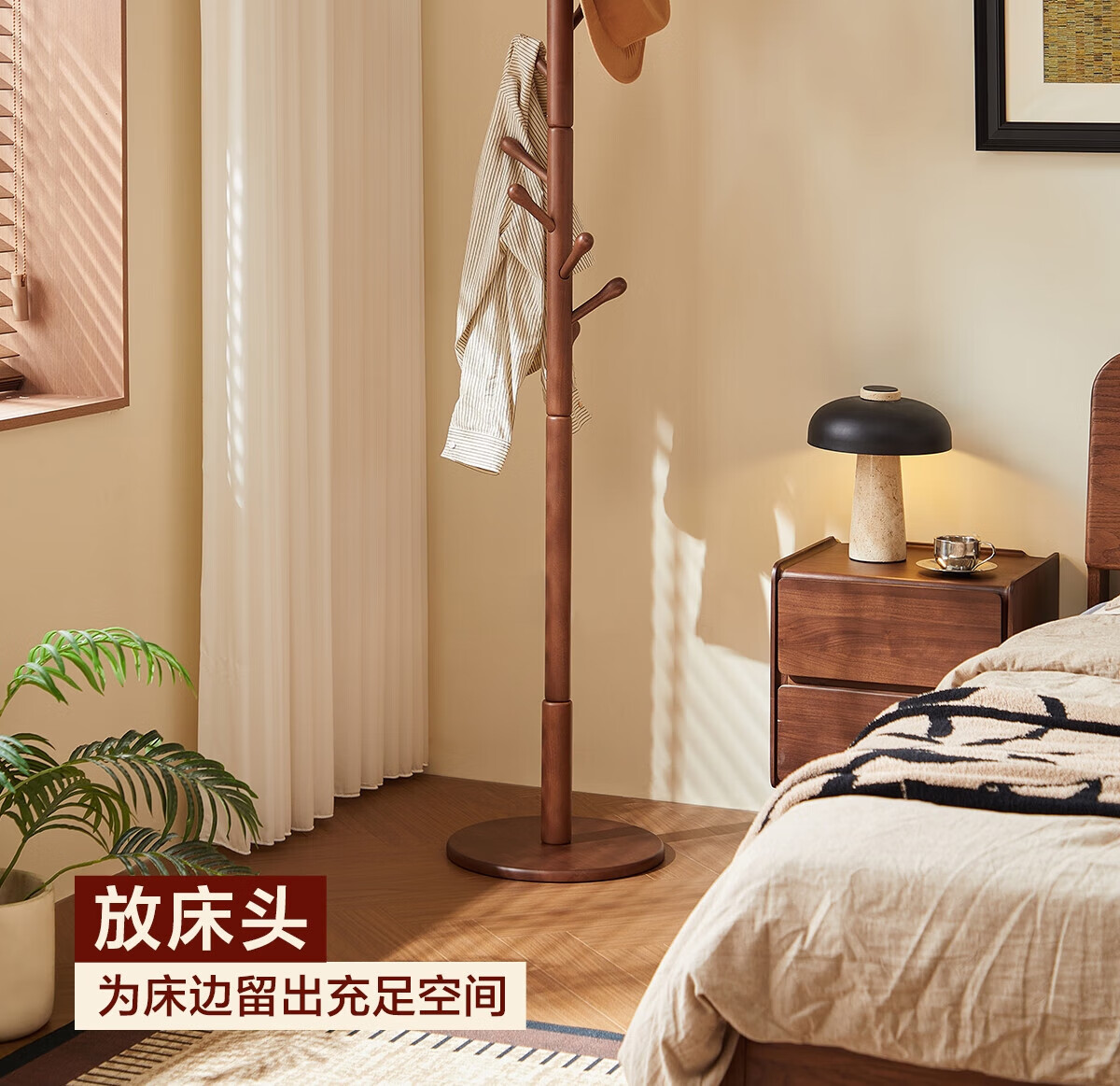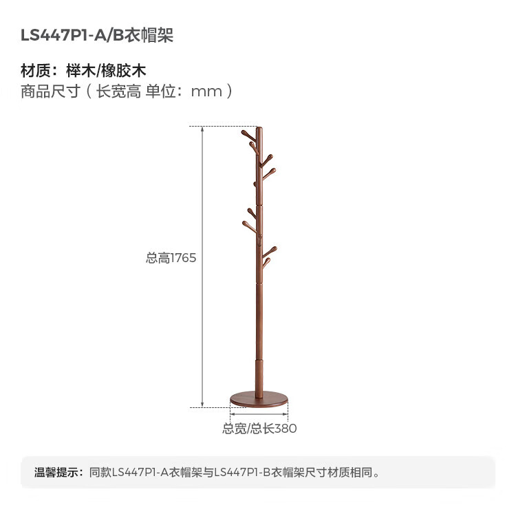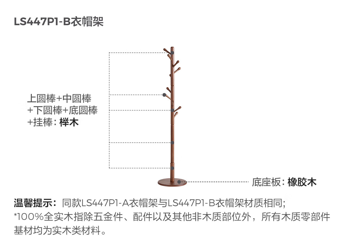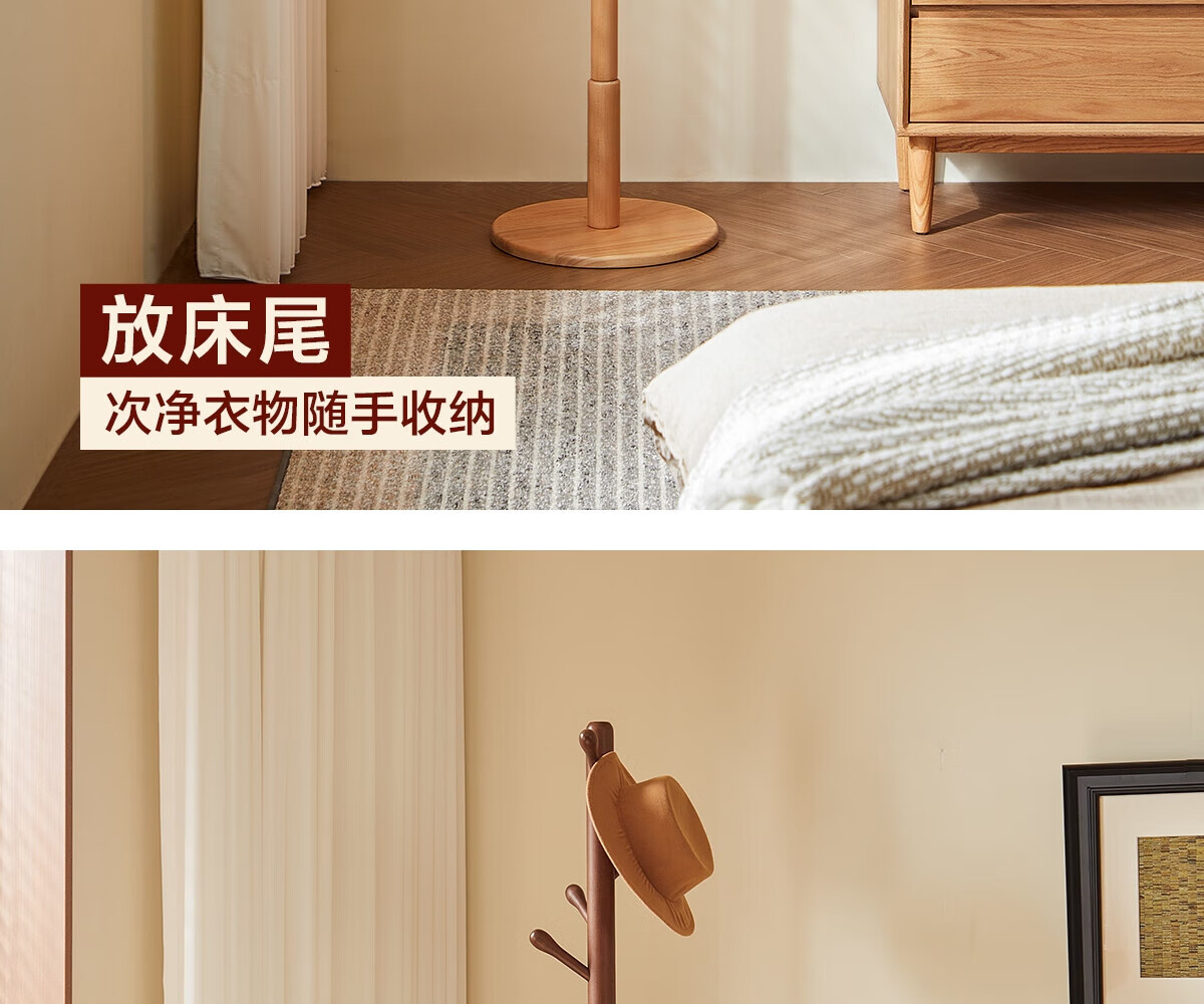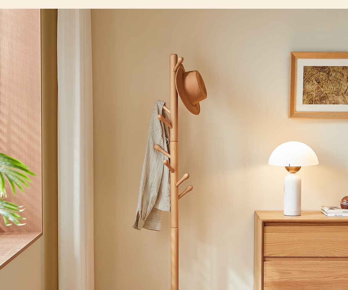 林氏家居榉木衣帽架卧室落地挂衣架实木2025新款床边晚上放衣神器LS447P1 【全实木-54mm加粗】柔木色