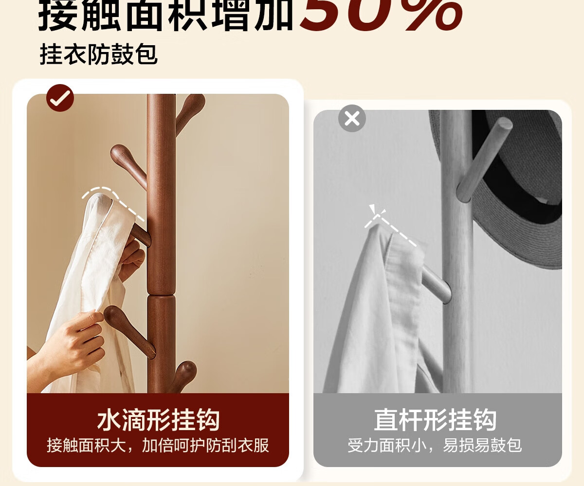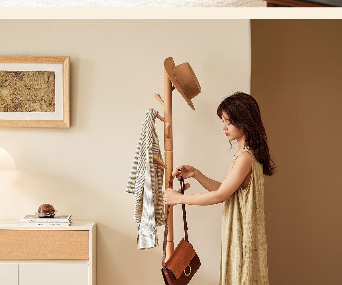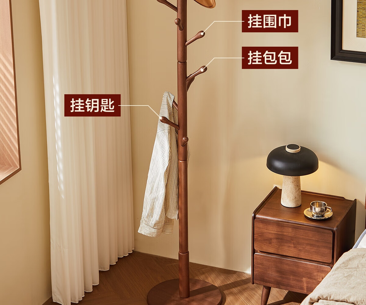 栖音阁实木衣架落地卧室衣帽架客厅挂衣服架子落地衣架家用立式挂包架