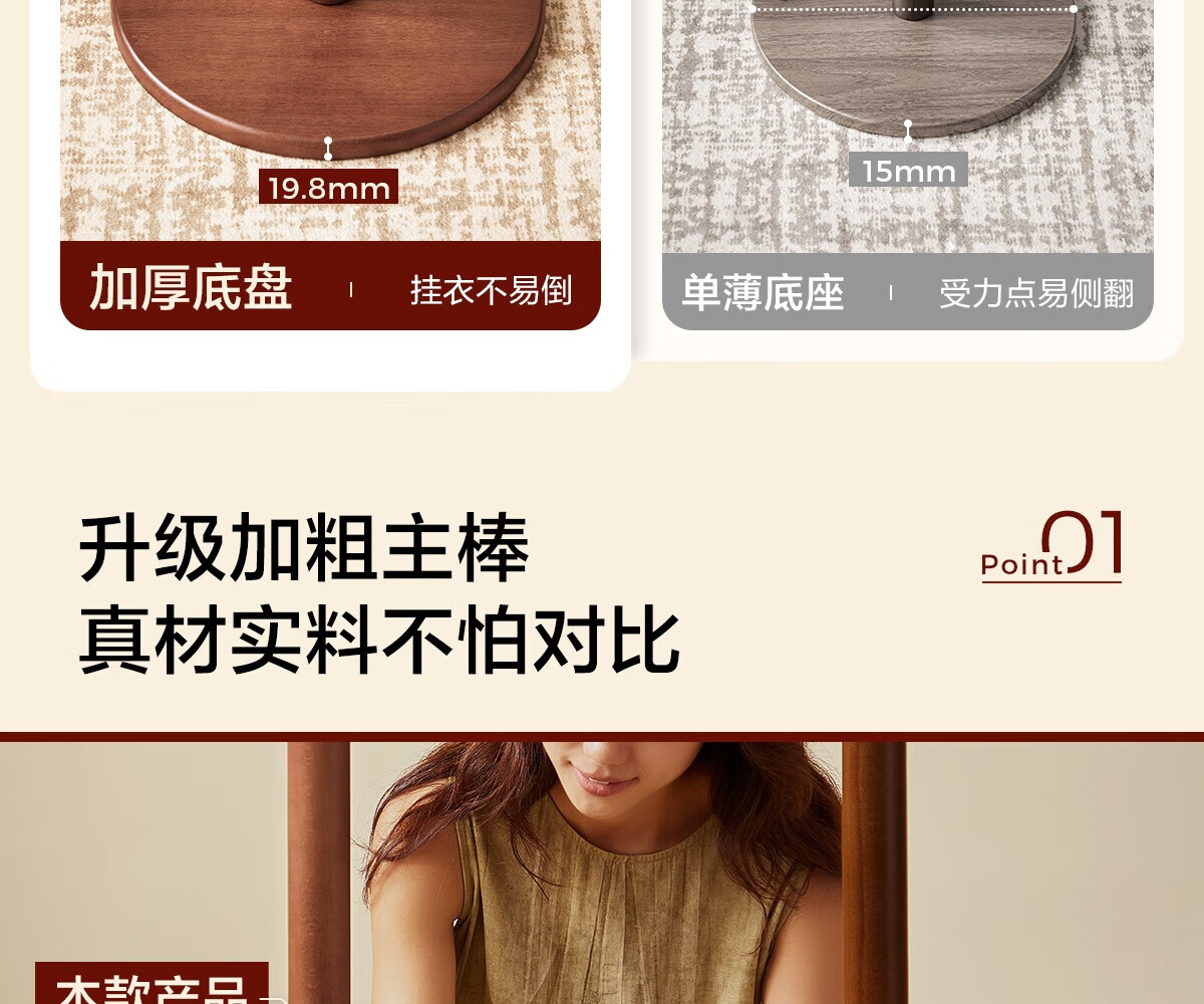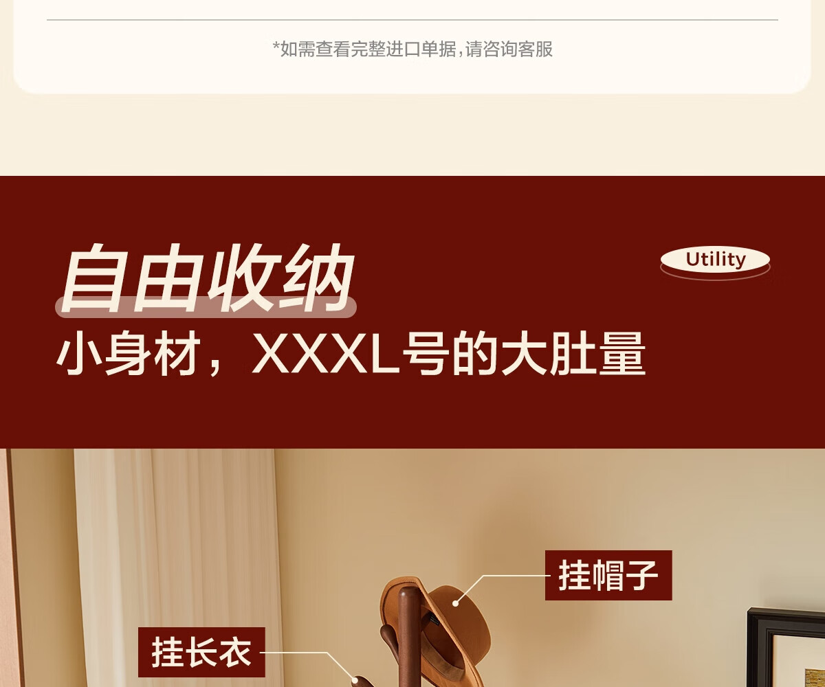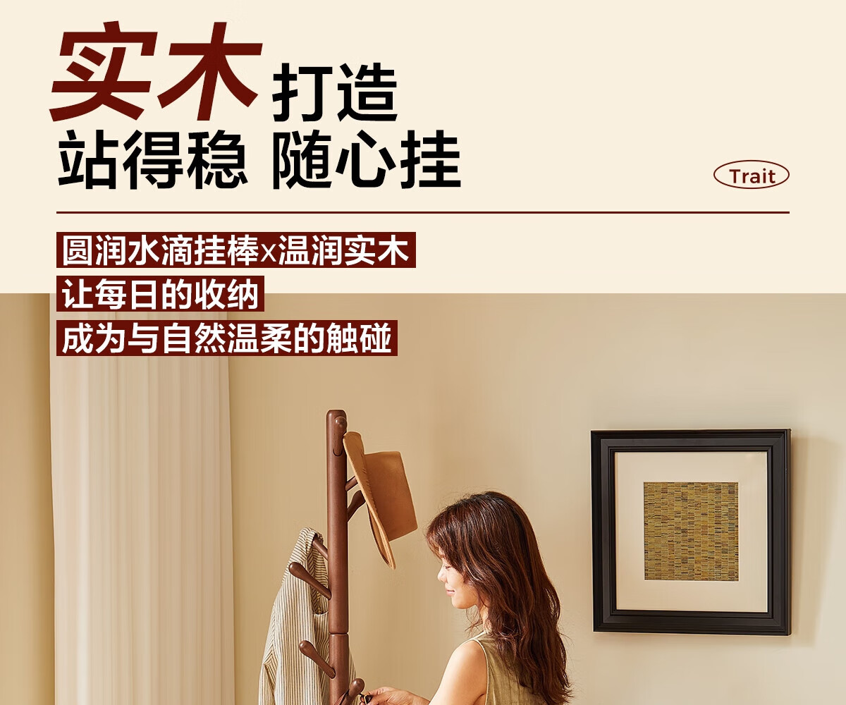 栖音阁实木衣架落地卧室衣帽架客厅挂衣服架子落地衣架家用立式挂包架