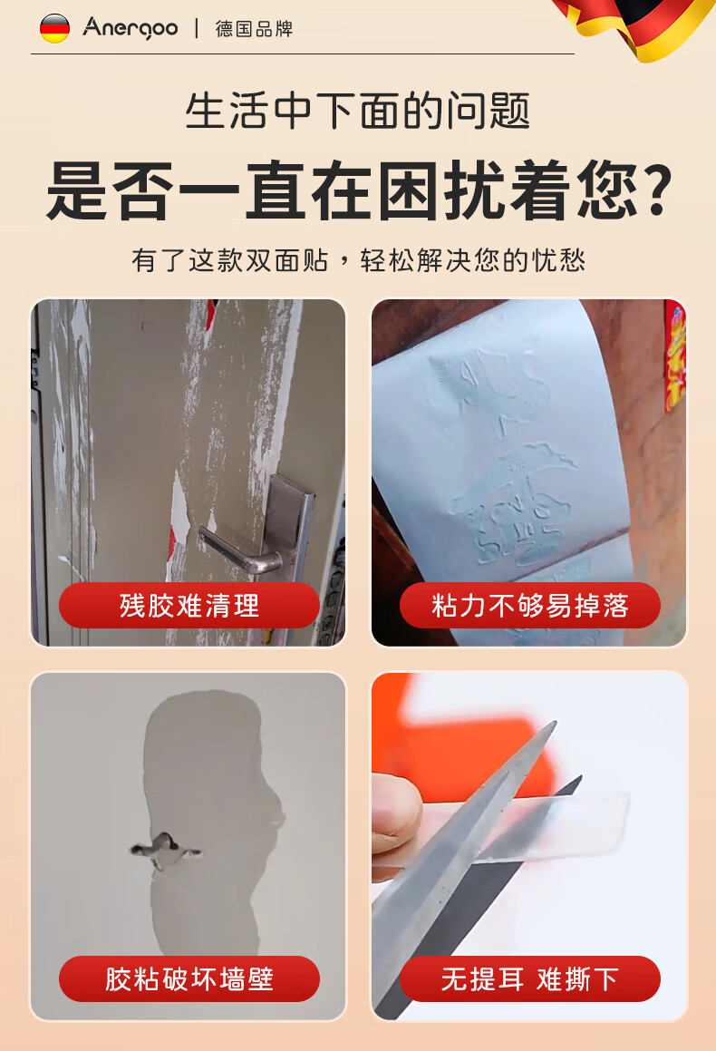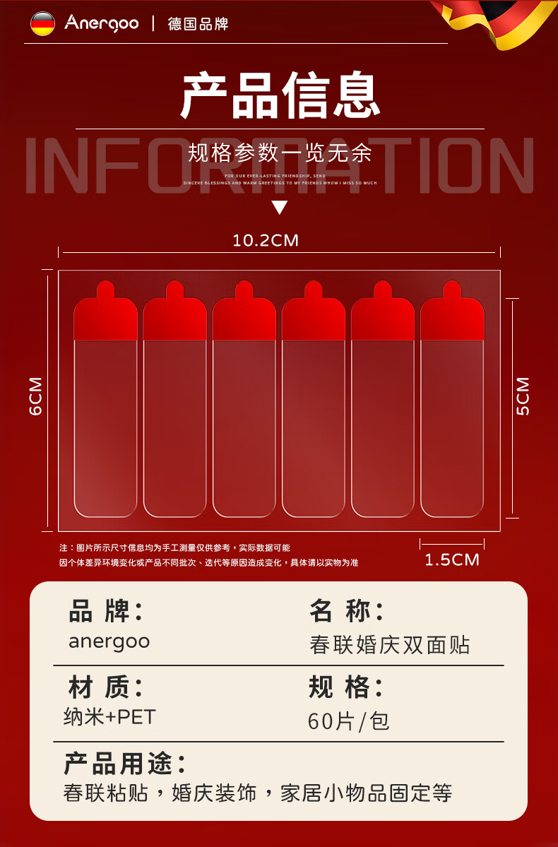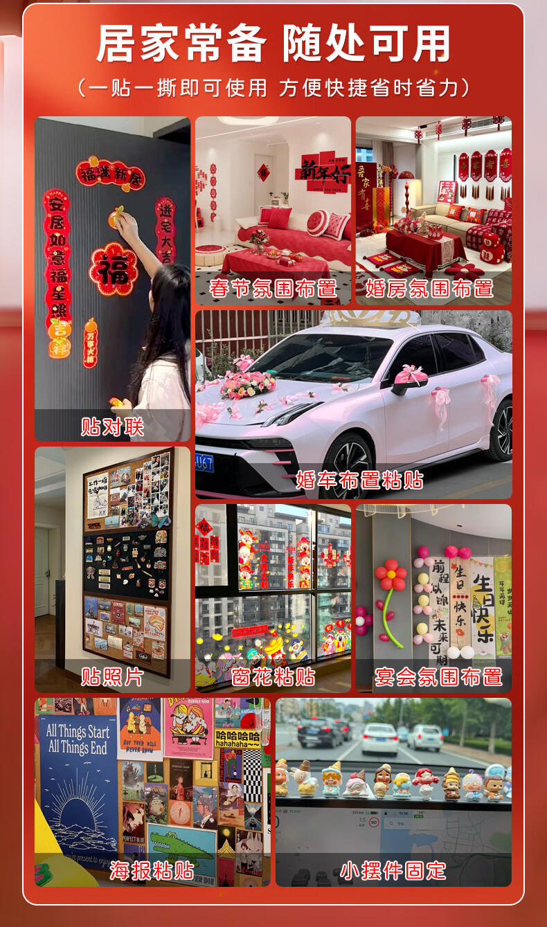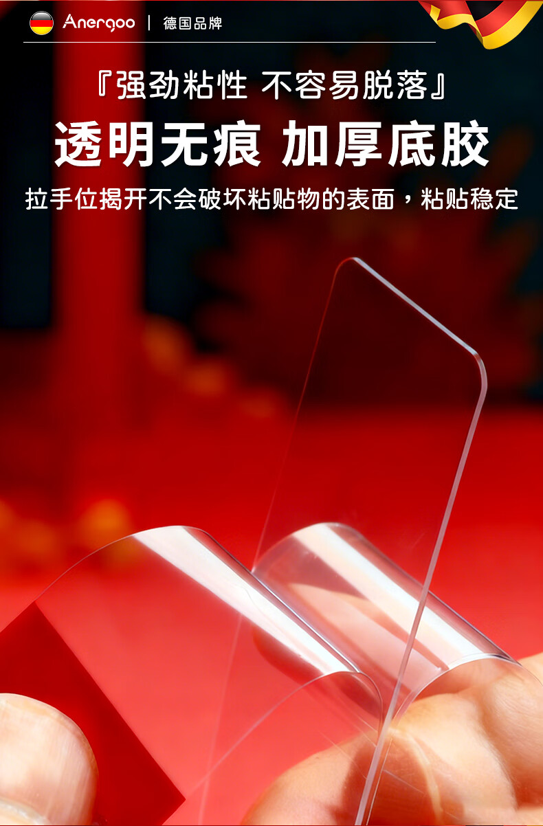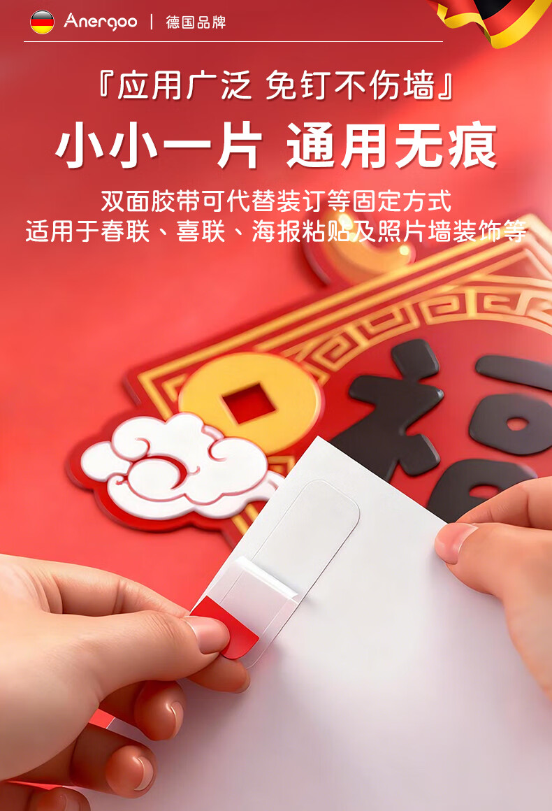 ANERGOO 安尔固马年春联专用胶带 贴对联不留痕双面胶京东自营 纳米无痕透明不伤墙可撕胶年画婚车婚房胶带照片