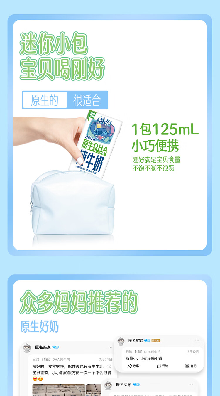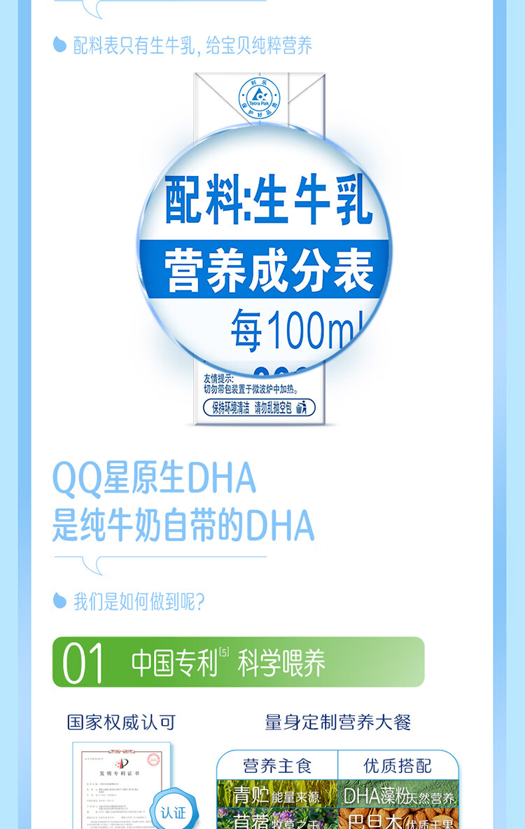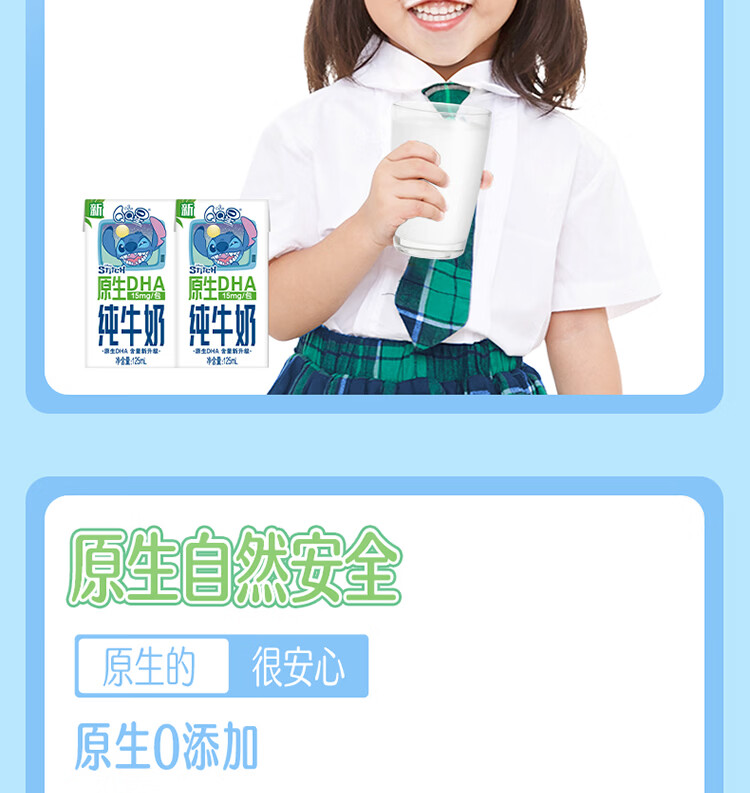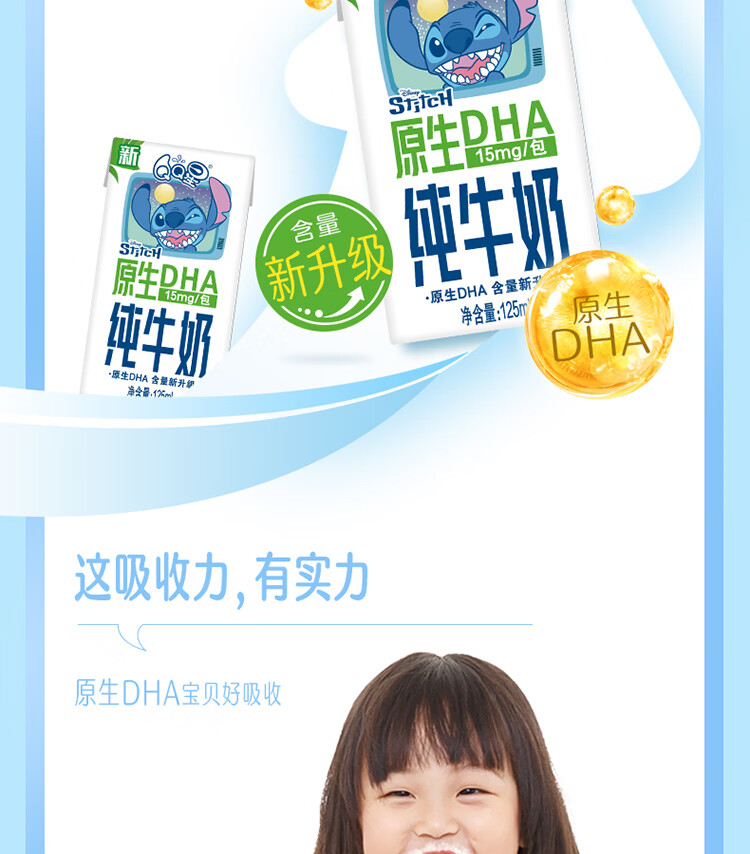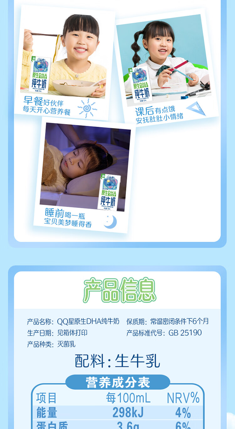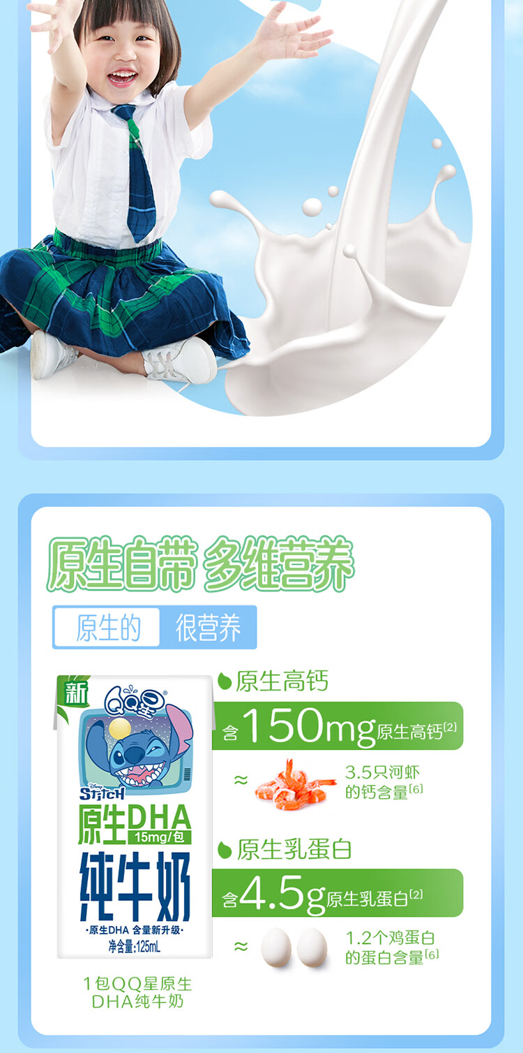 伊利QQ星原生DHA纯牛奶125mL*16盒/箱 原生儿童牛奶 年货礼盒1月产 周深推荐QQ星