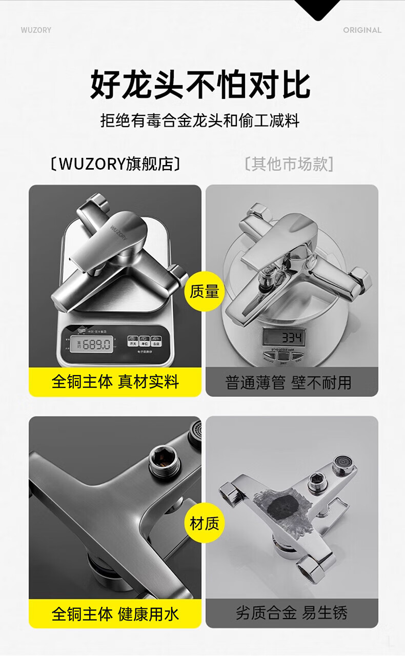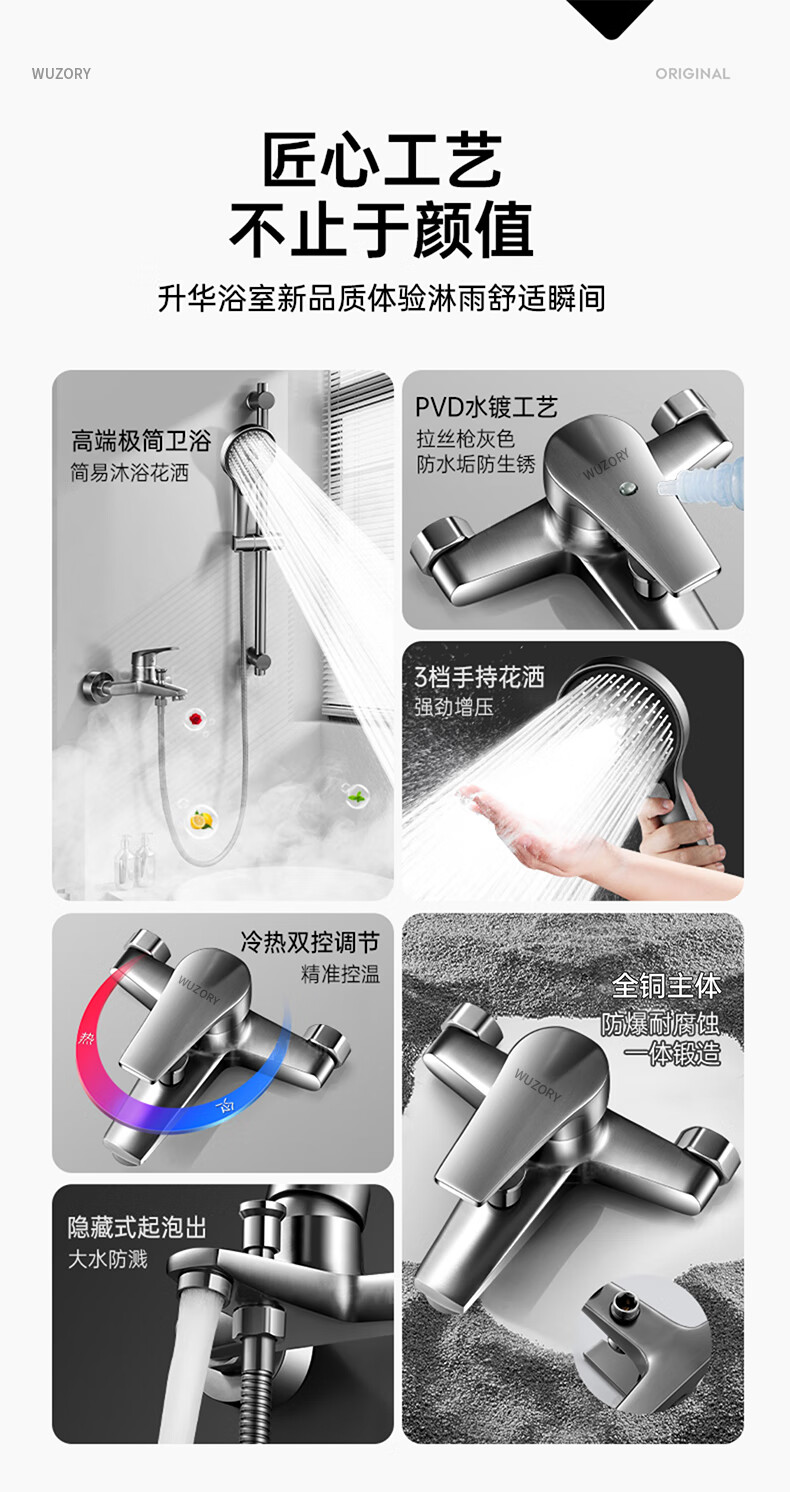 WUZORY【德国】全铜主体花洒淋浴套装增压沐浴花洒浴室卫生间升降套装 【全铜主体】升降增压花洒套装 三档调节丨分体式不占空间