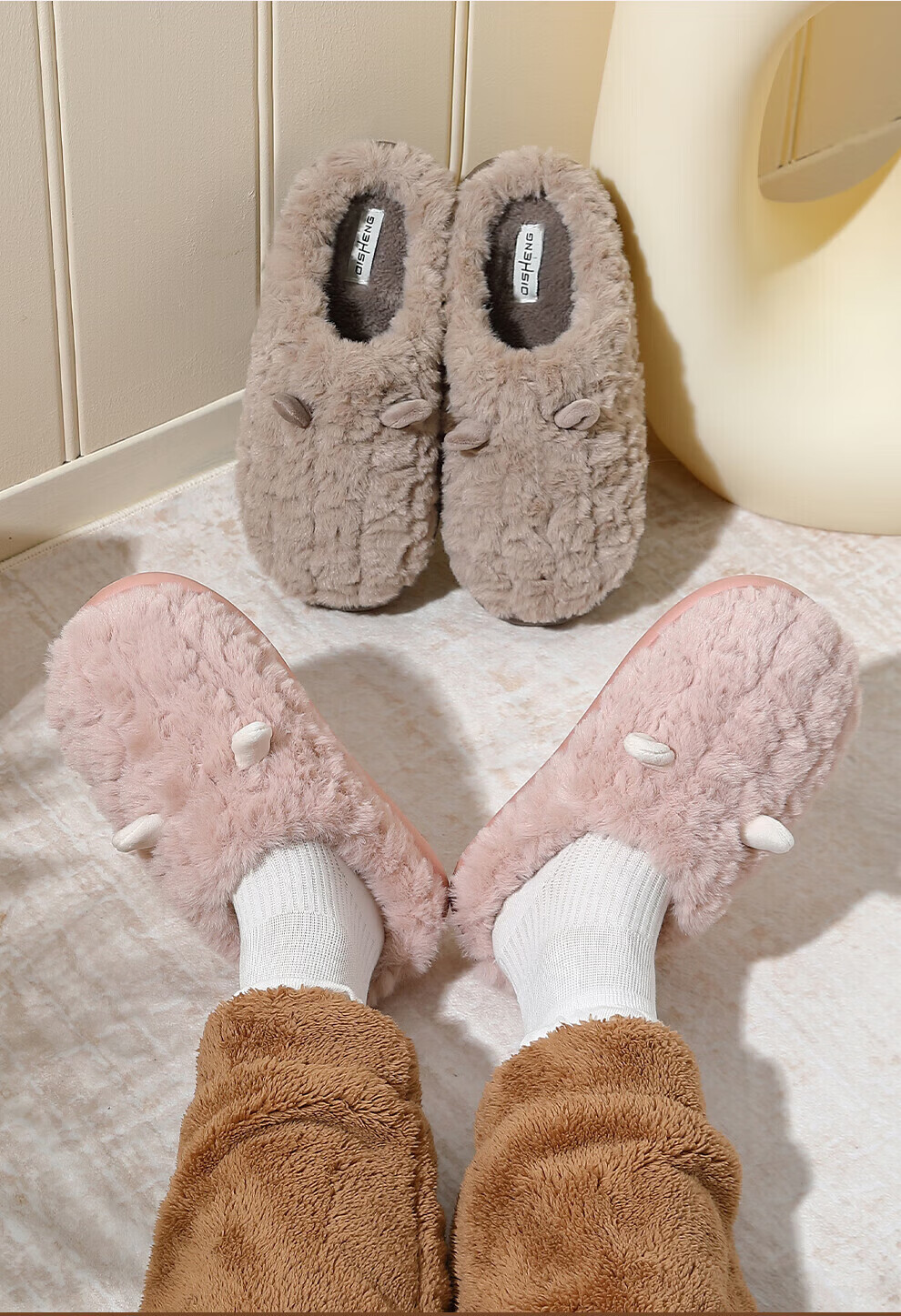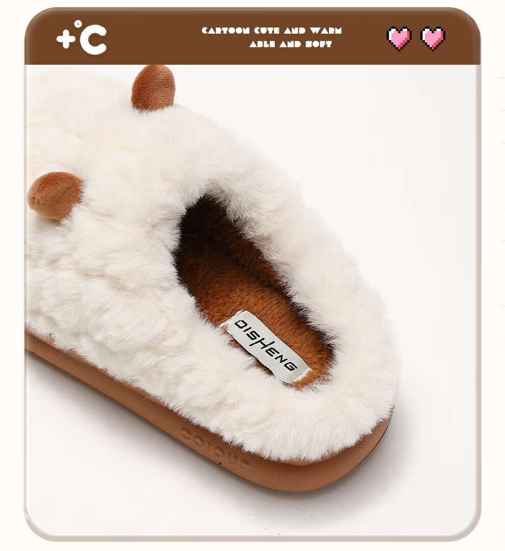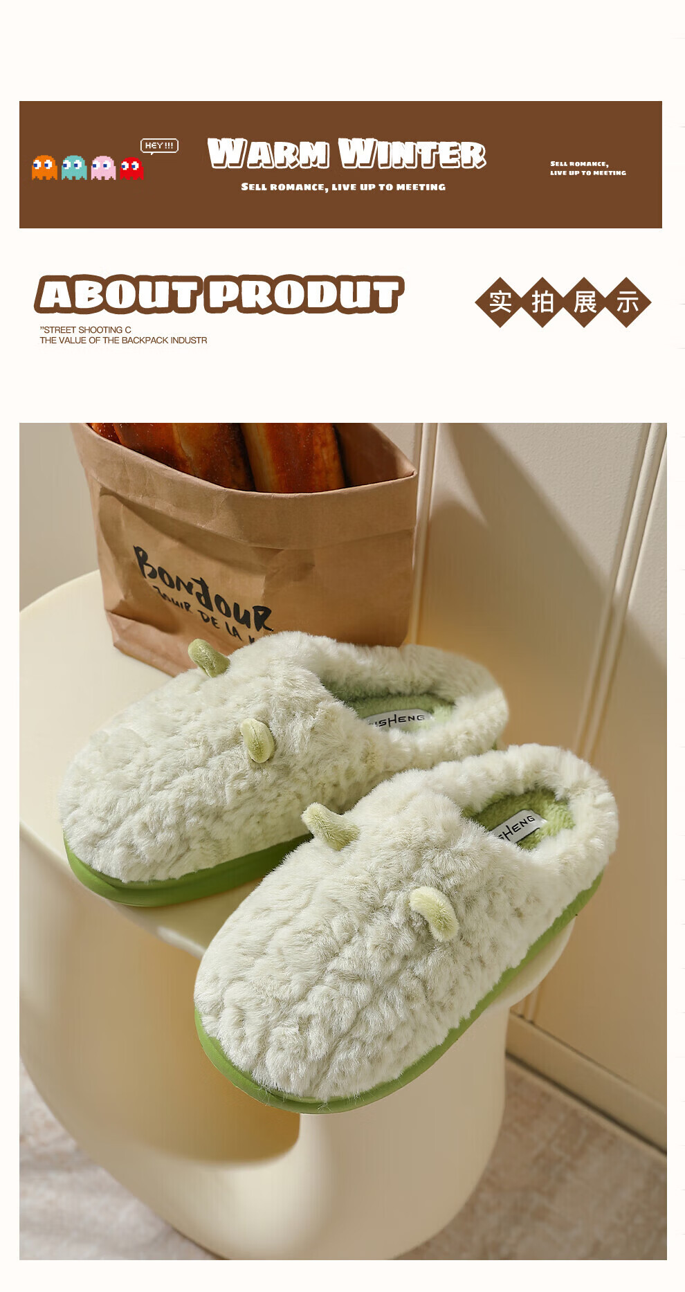 FZT棉拖鞋女春季2026新款煤球室内家居厚底防滑保暖家用可爱棉拖鞋女 绿色【黑白煤球】 36-37 标准码