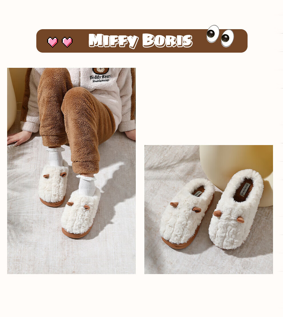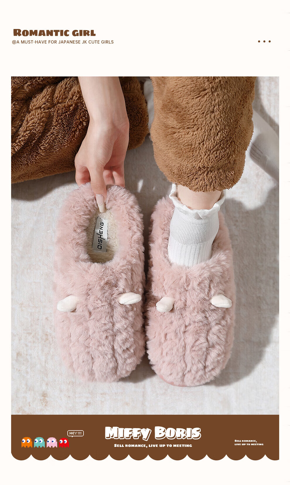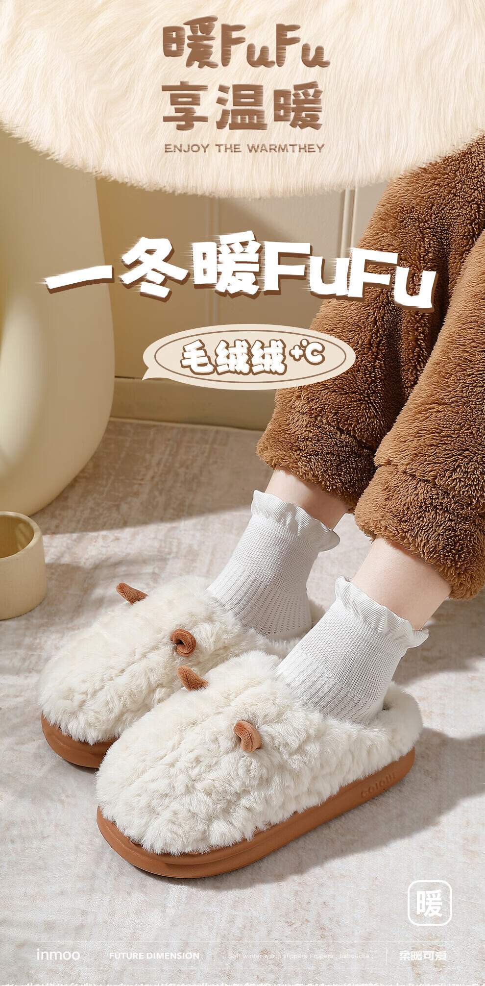FZT棉拖鞋女春季2026新款煤球室内家居厚底防滑保暖家用可爱棉拖鞋女 绿色【黑白煤球】 36-37 标准码