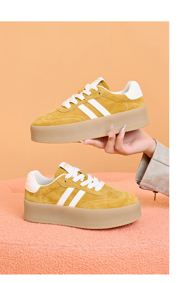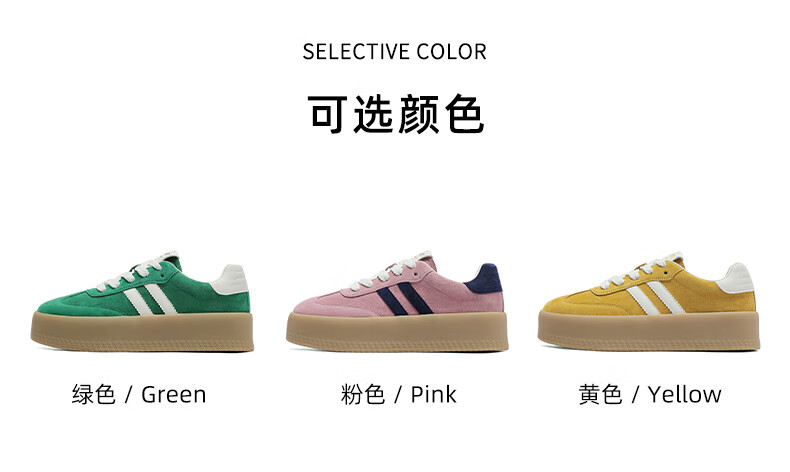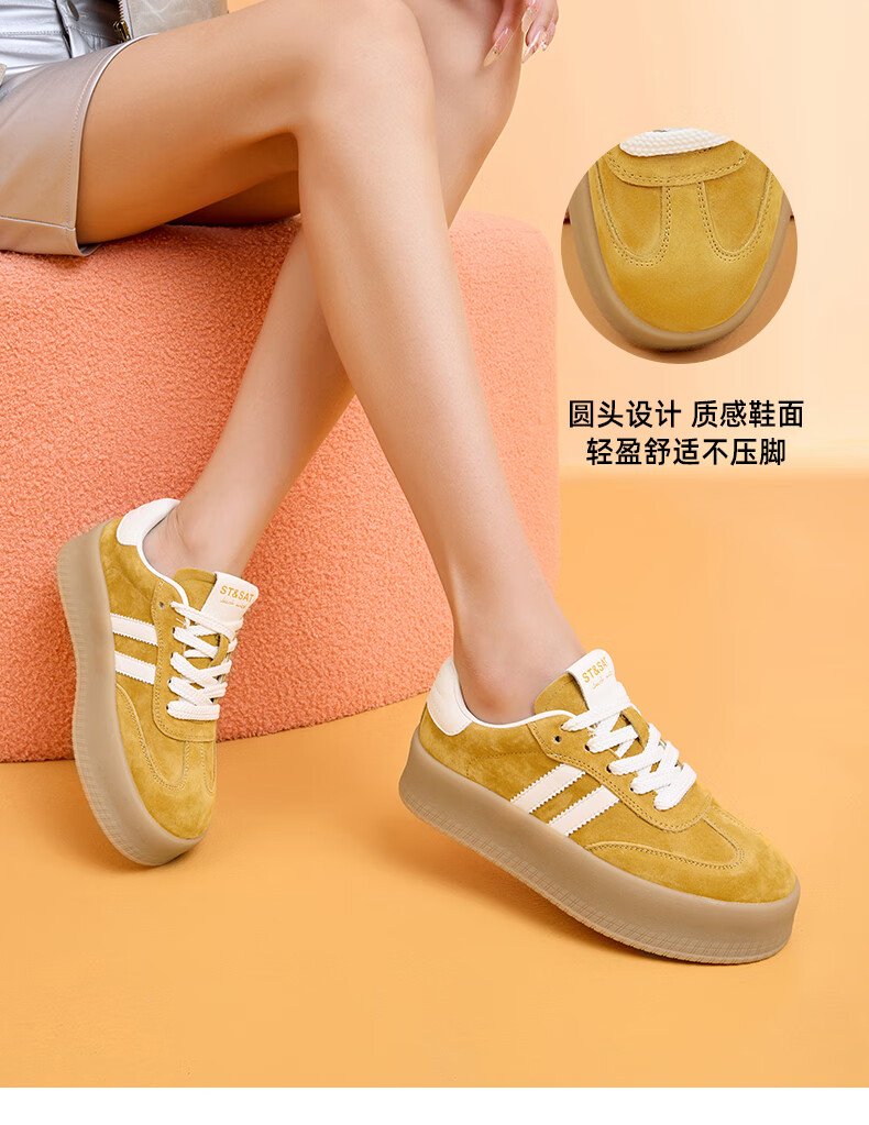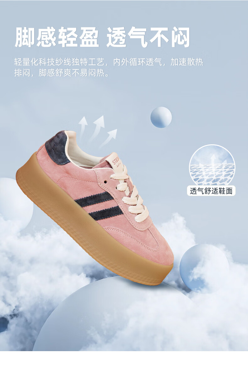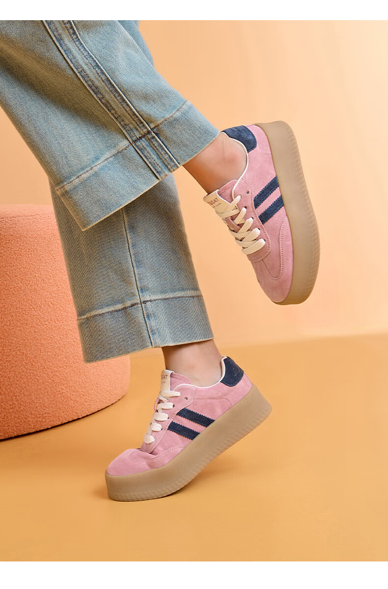 星期六春秋季女鞋厚底德训鞋女款2025新款增高经典复古运动休闲板鞋 粉色 35