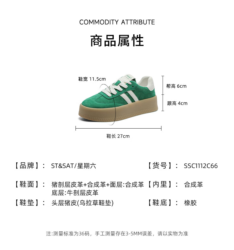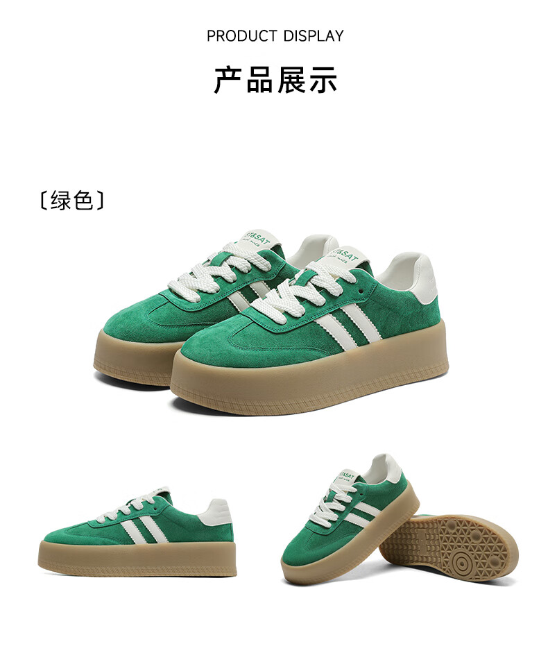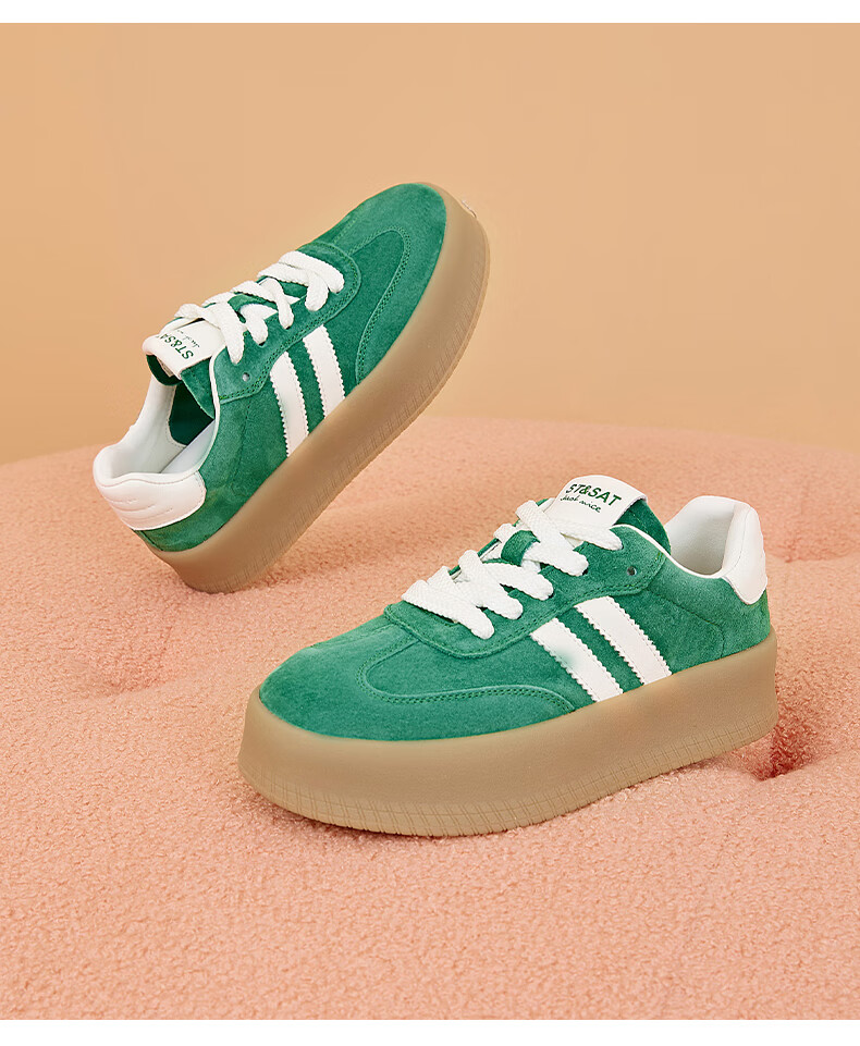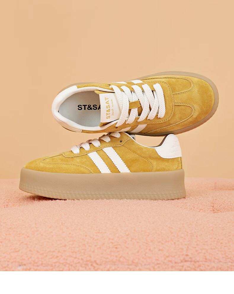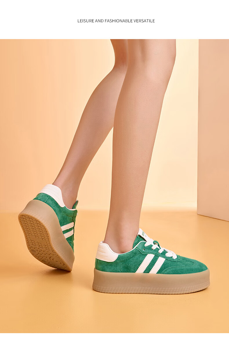星期六春秋季女鞋厚底德训鞋女款2025新款增高经典复古运动休闲板鞋 粉色 35
