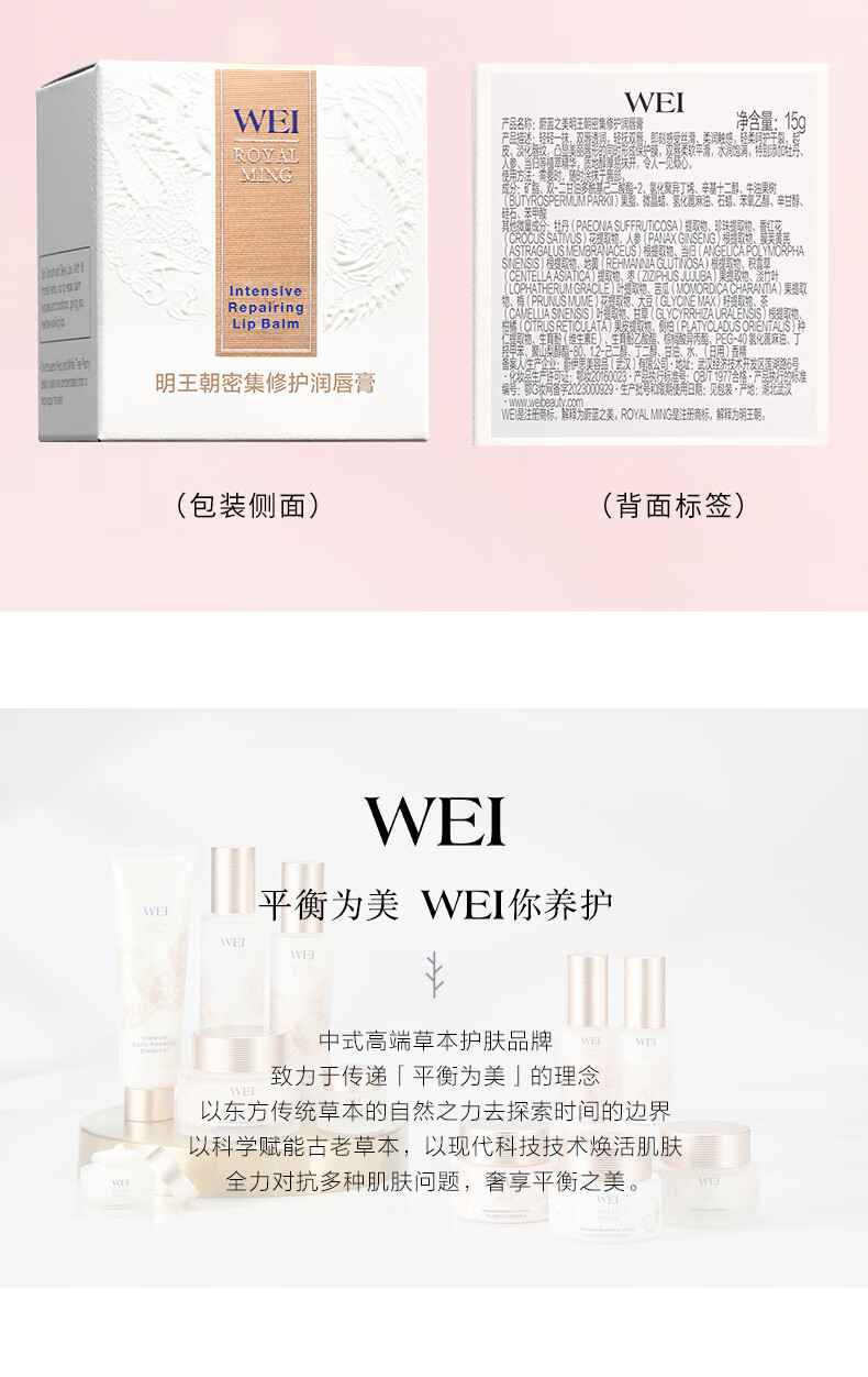 蔚蓝之美WEI明王朝密集修护润唇膏15g 滋润保湿补水防干裂唇部护唇膏男女
