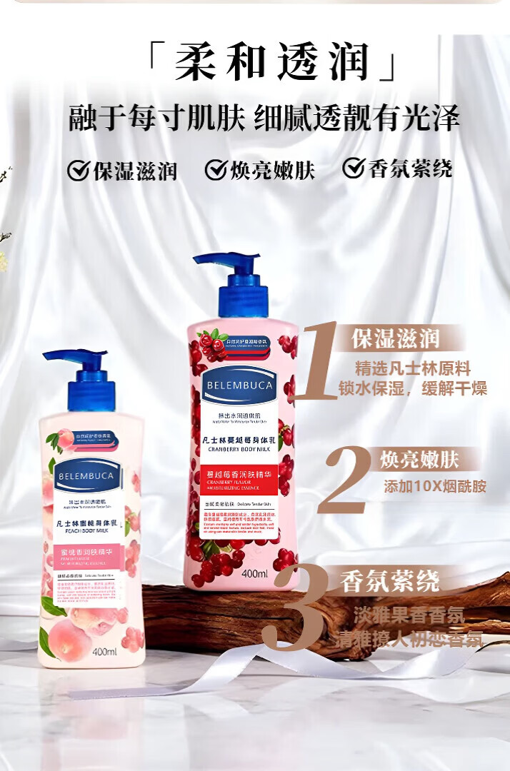 身体乳润肤露保湿润肤霜持久留香烟酰胺秋冬季男女护肤身体 蔓越莓身体乳【400ml】 1瓶装