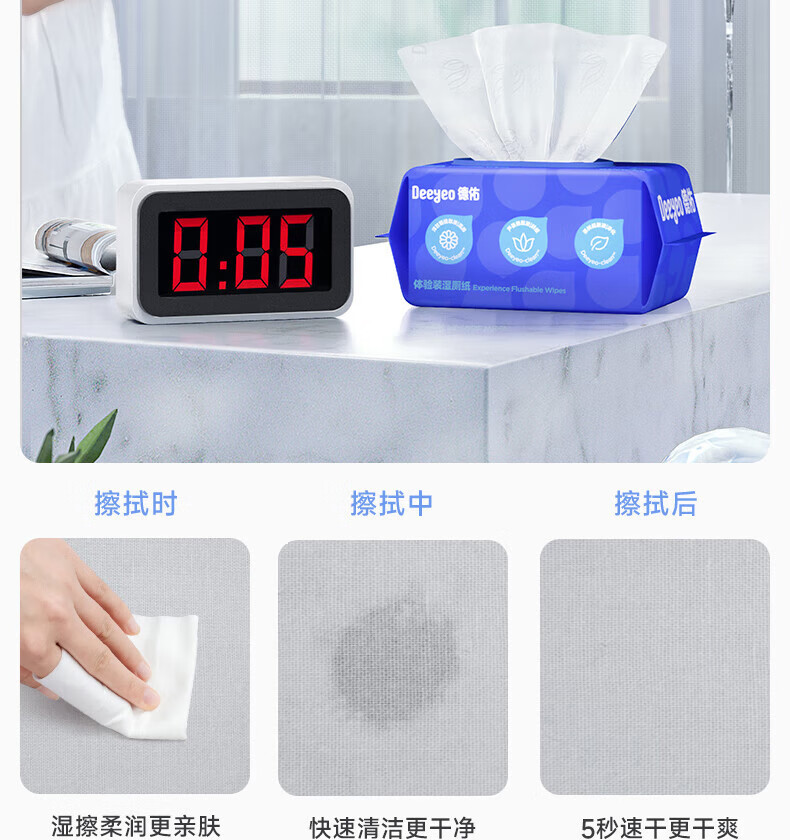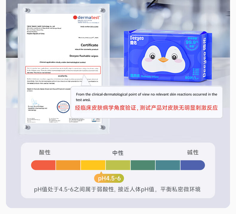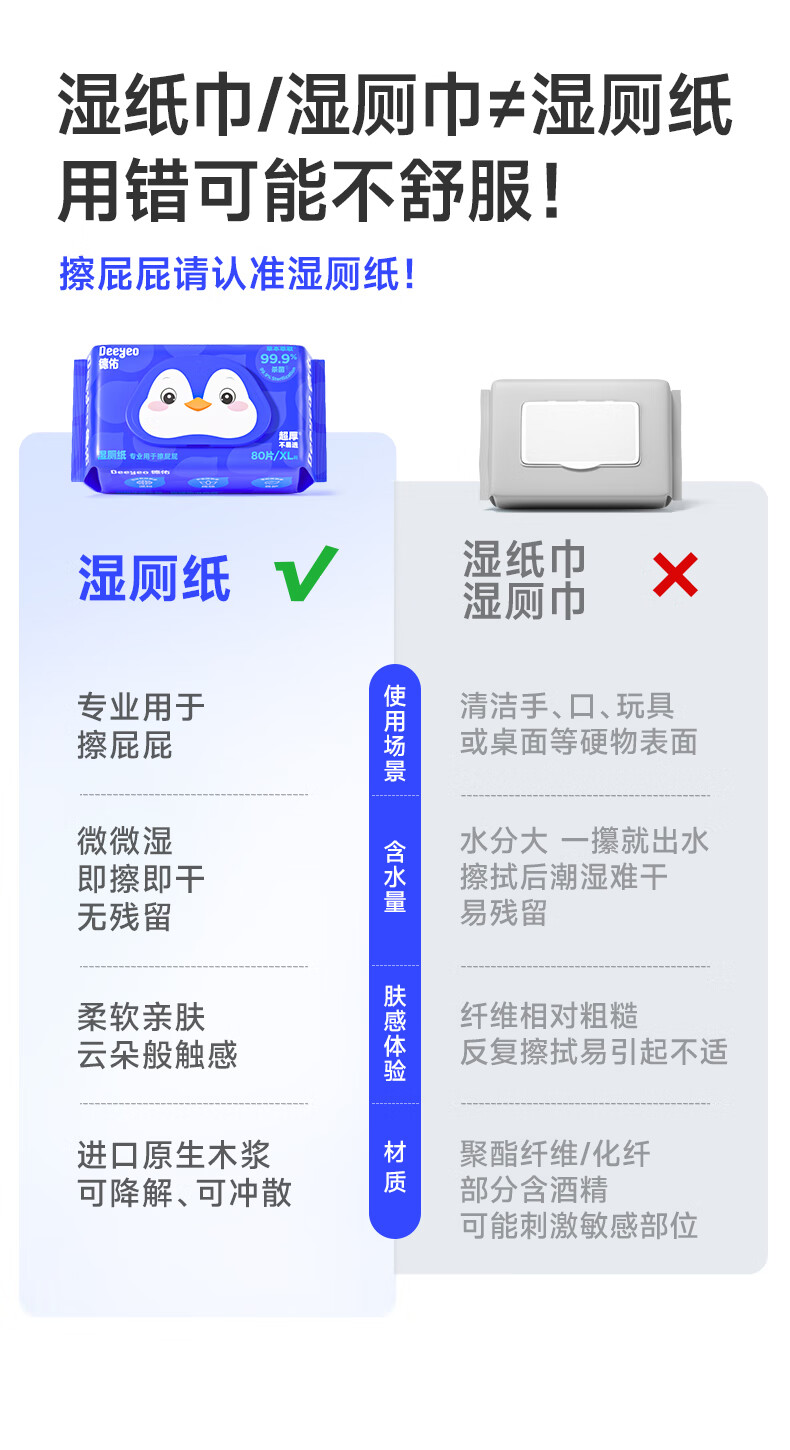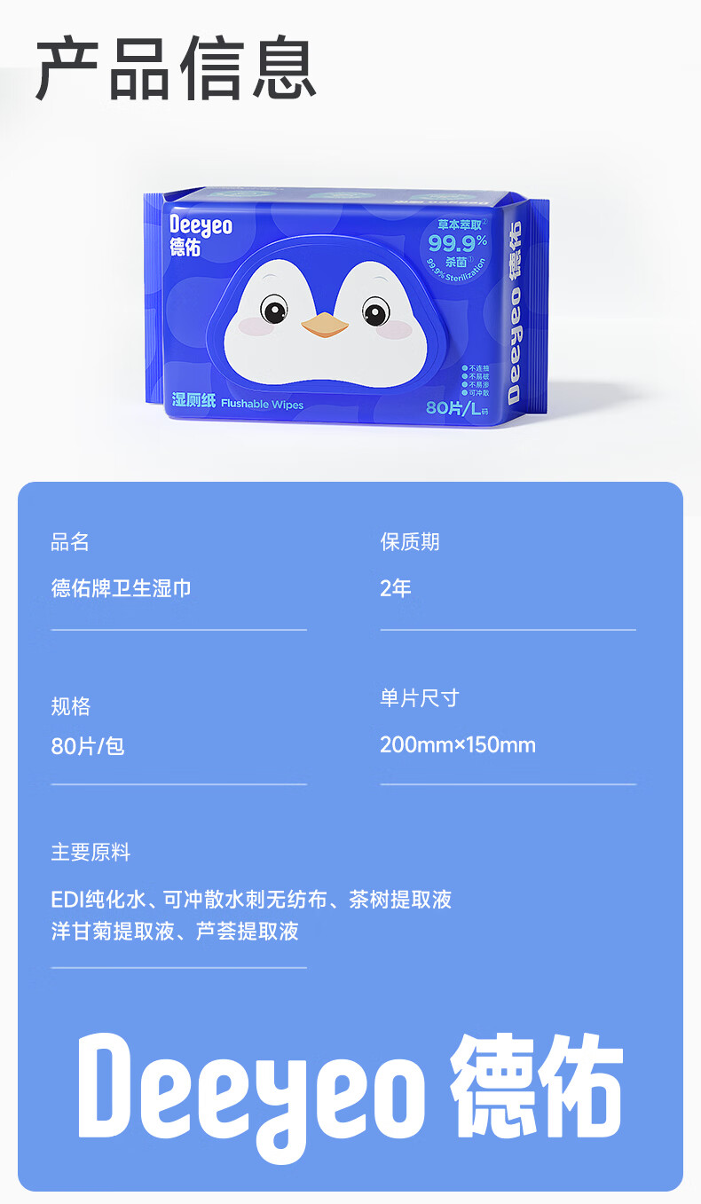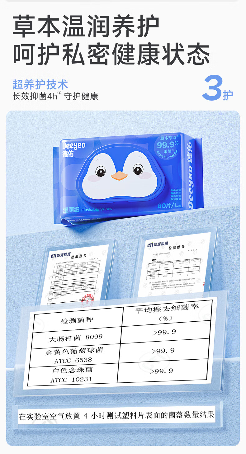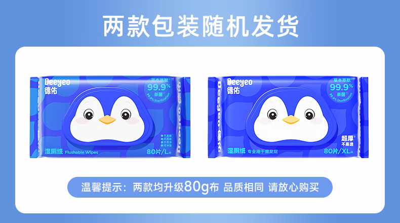 德佑企鹅湿厕纸加大加厚80抽*6包XL码 杀菌厕纸如厕湿纸巾 可冲散