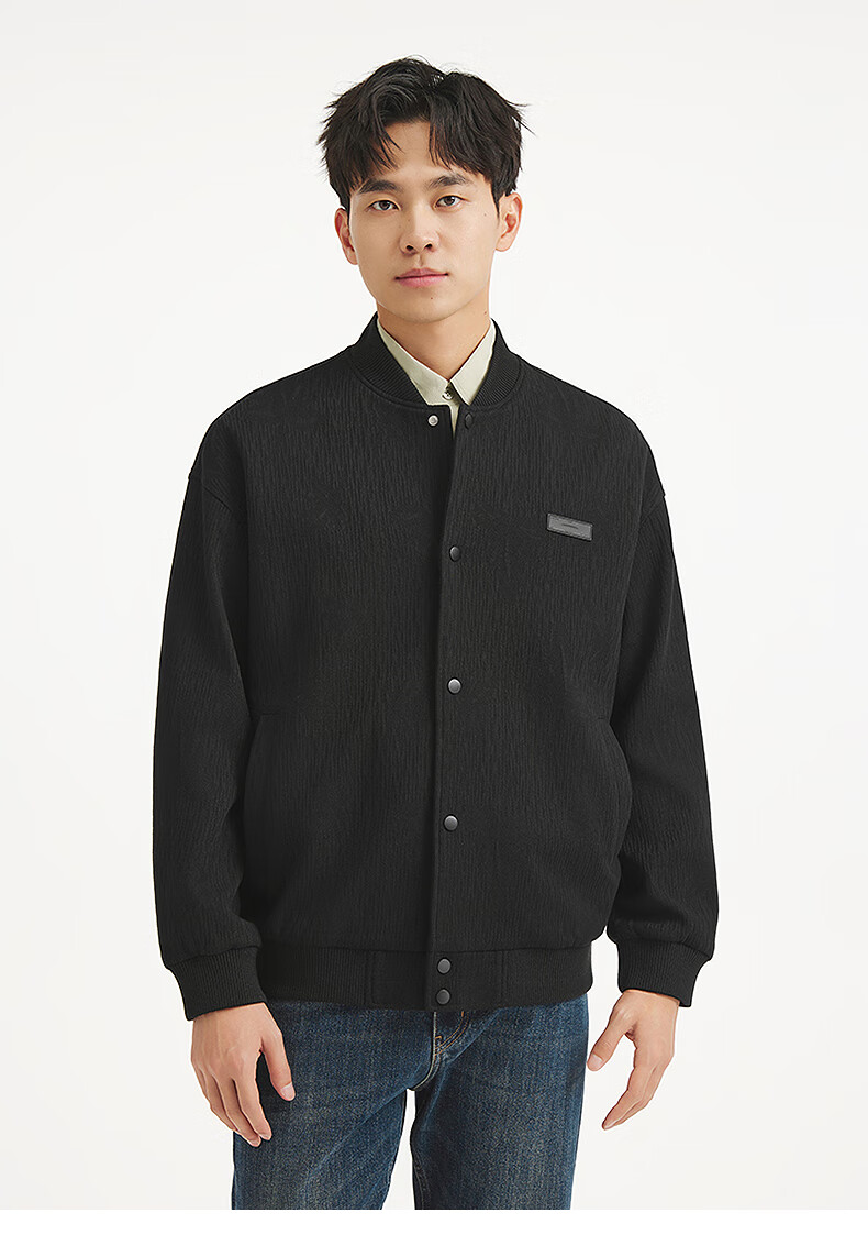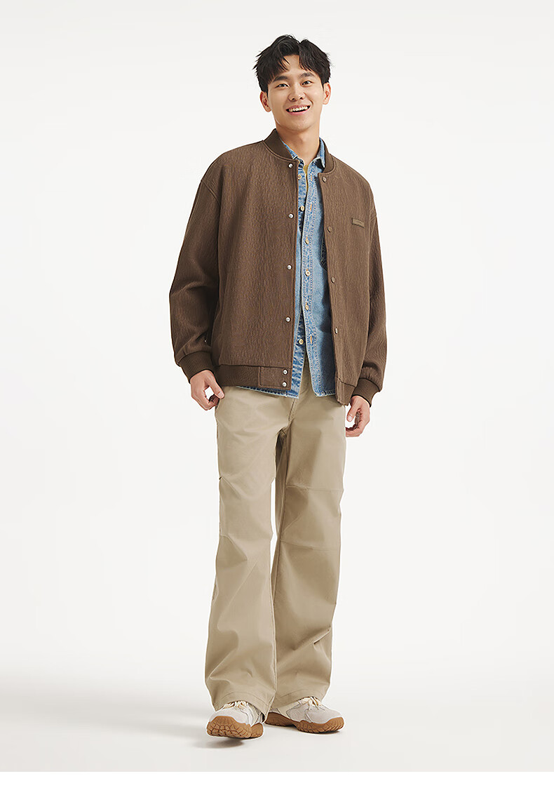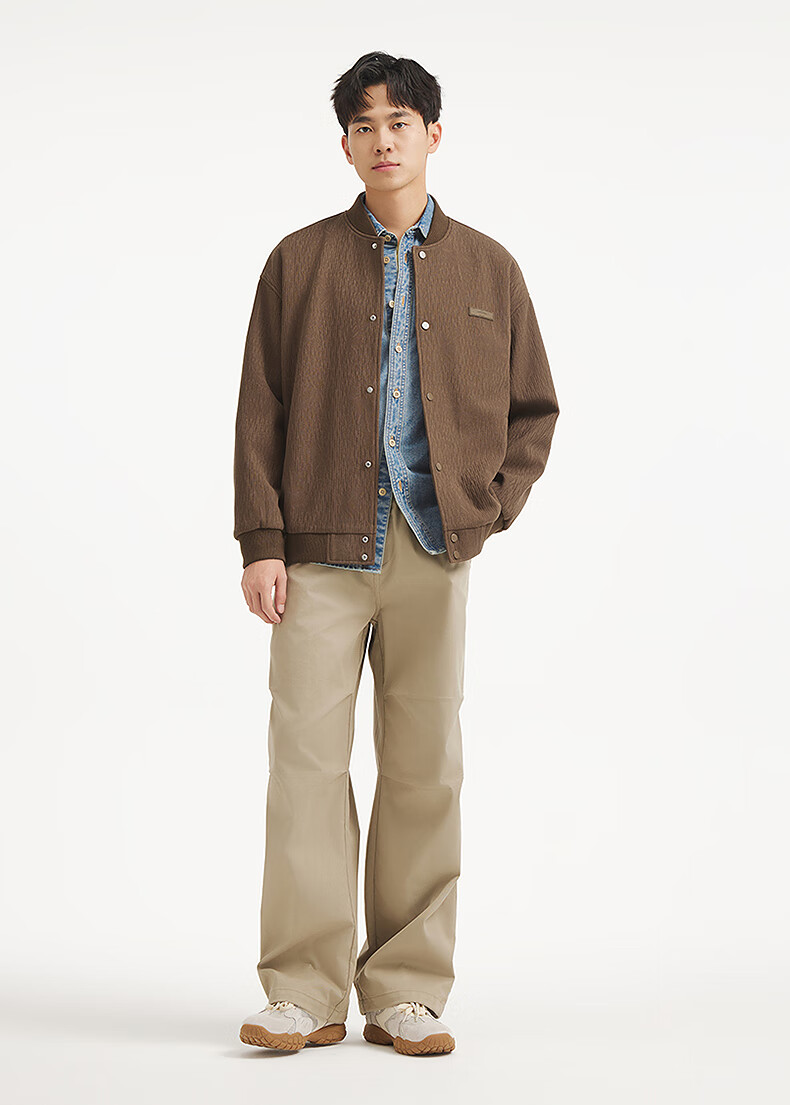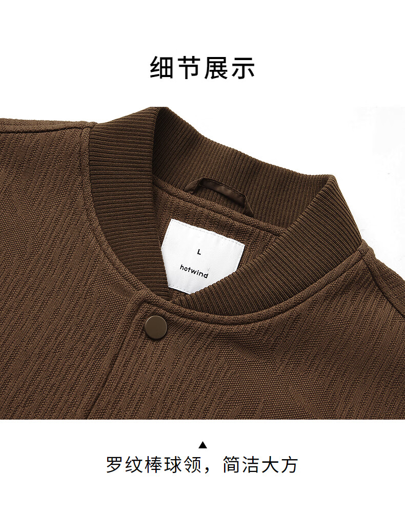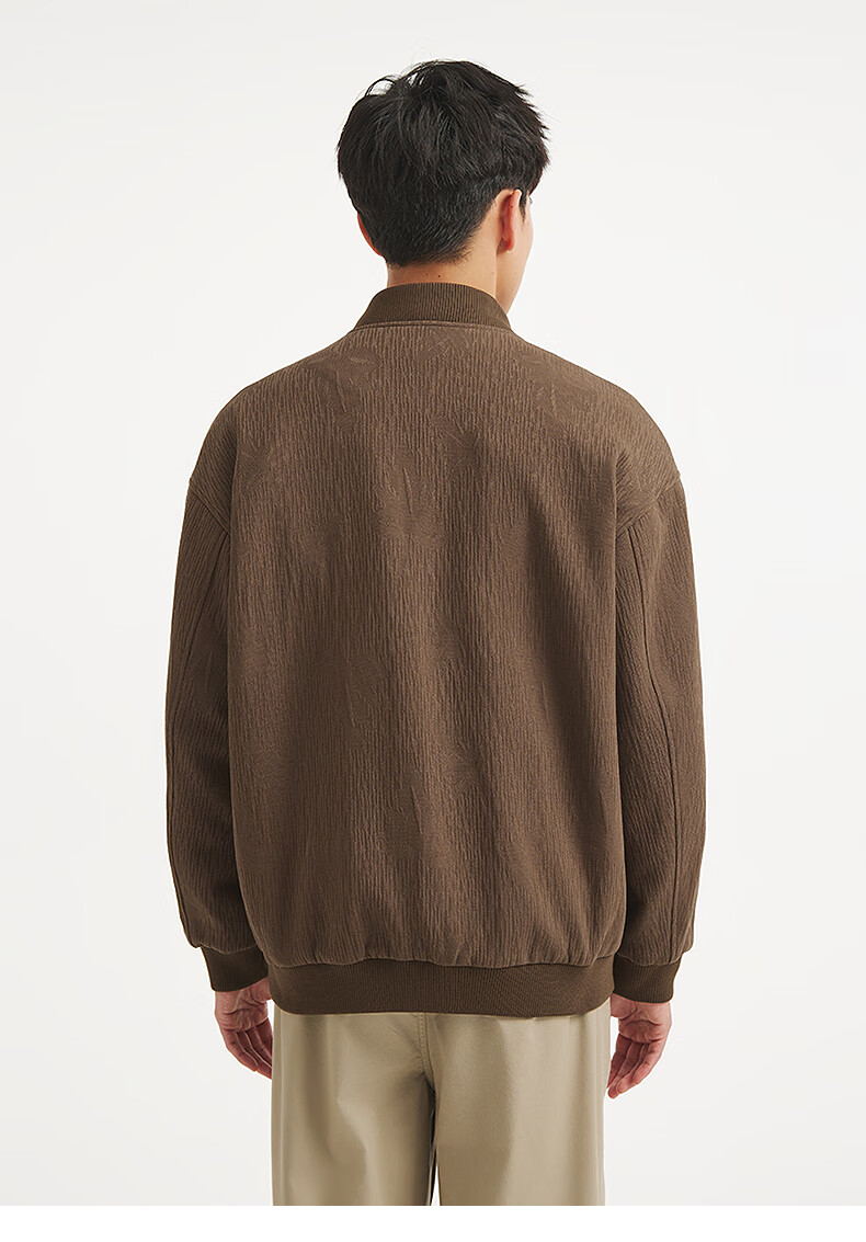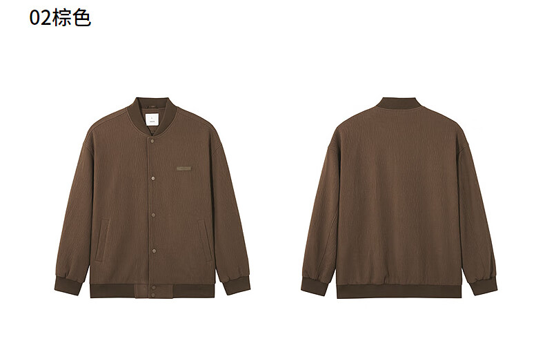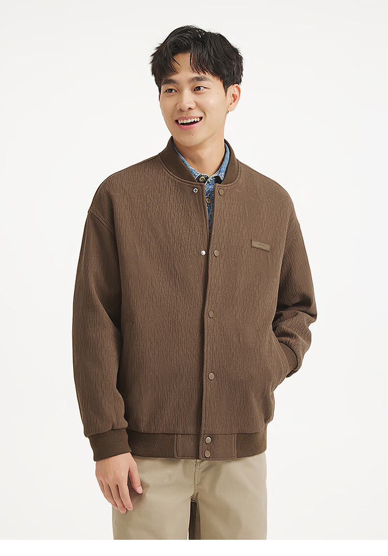 热风【商场同款】男士夹克外套上衣2025年秋新款肌理设计感棒球服外套 02棕色 M