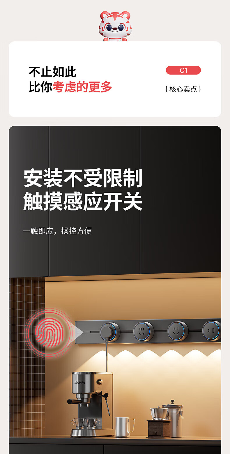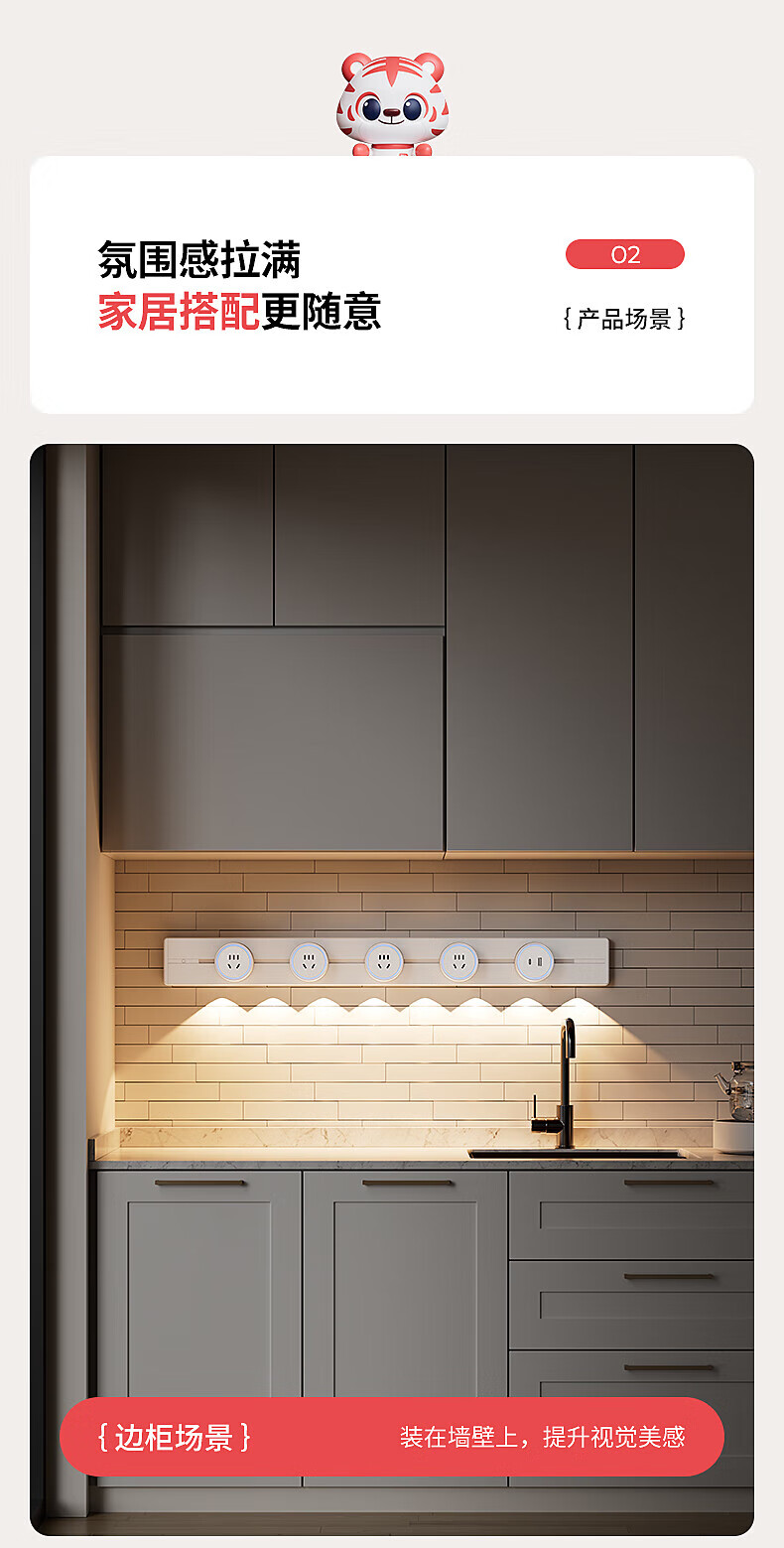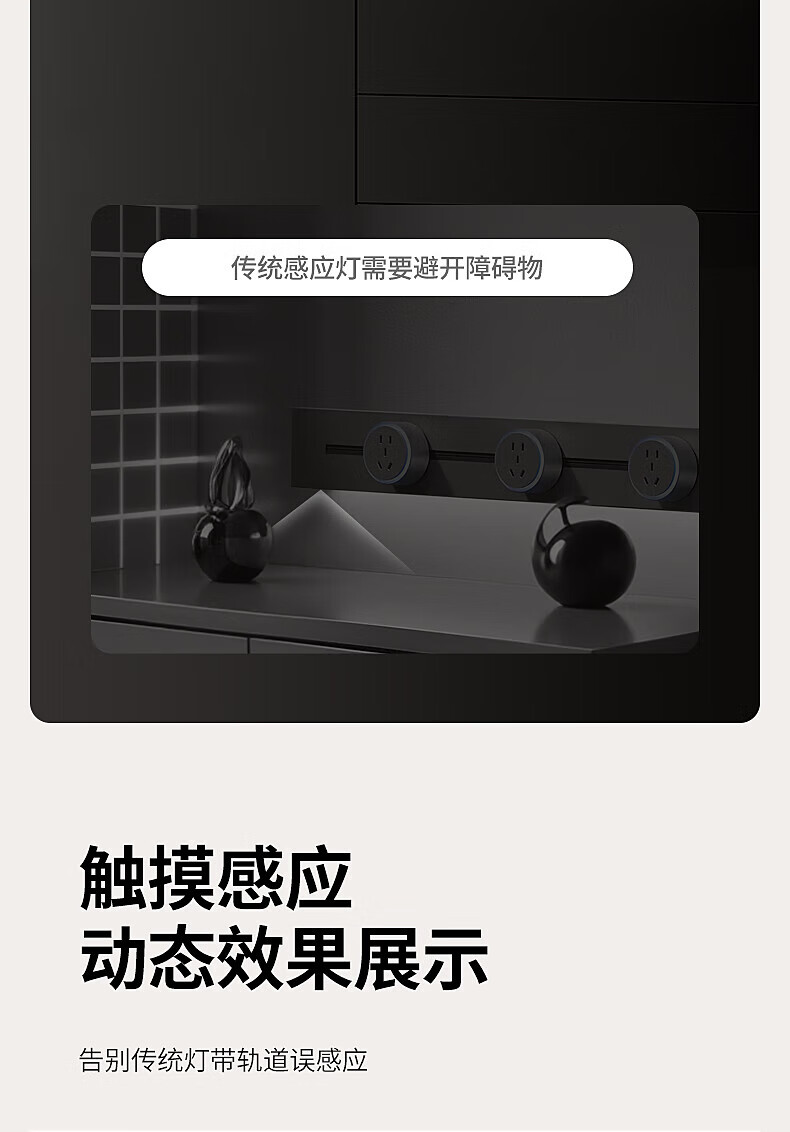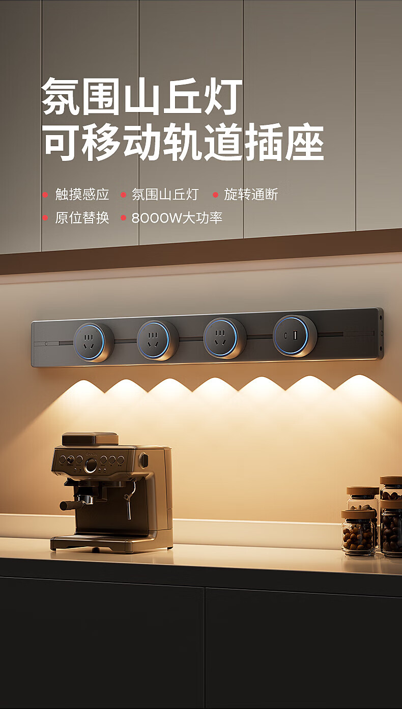 国际电工明装山丘感应灯轨道插座可移动壁挂式电力导轨玄关餐边柜滑动电源 黑色(感应+山丘灯)50cm+3个五孔