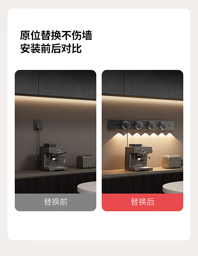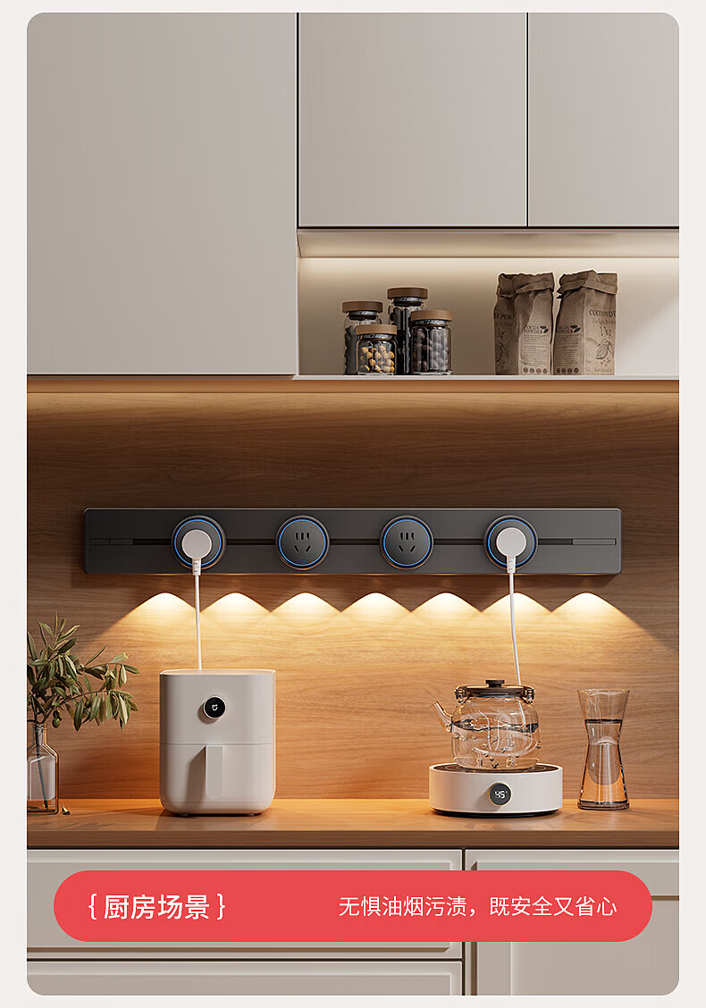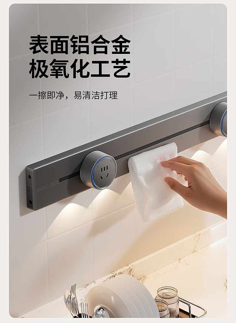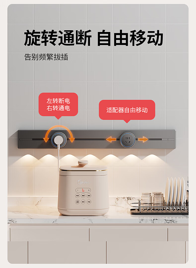 小米有品轨道插座德国品质免打孔厨房餐边柜客厅可移动电力滑盖插排插线板 黑色40公分轨道+4个五孔