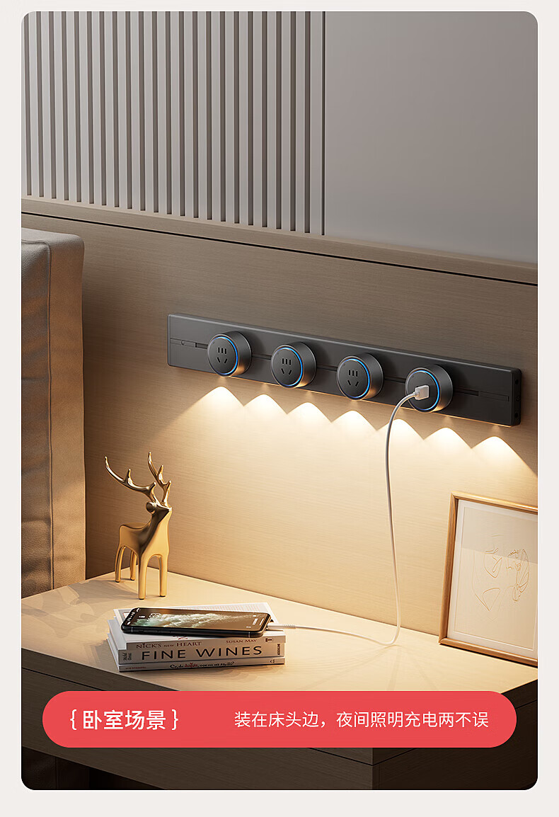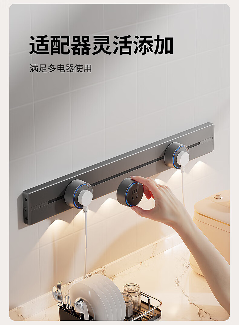 小米部依轨道插座德国品质电工可移动轨道插座明装式电力滑动导轨电源客厅 灰色60cm轨道(五孔-带灯*4)