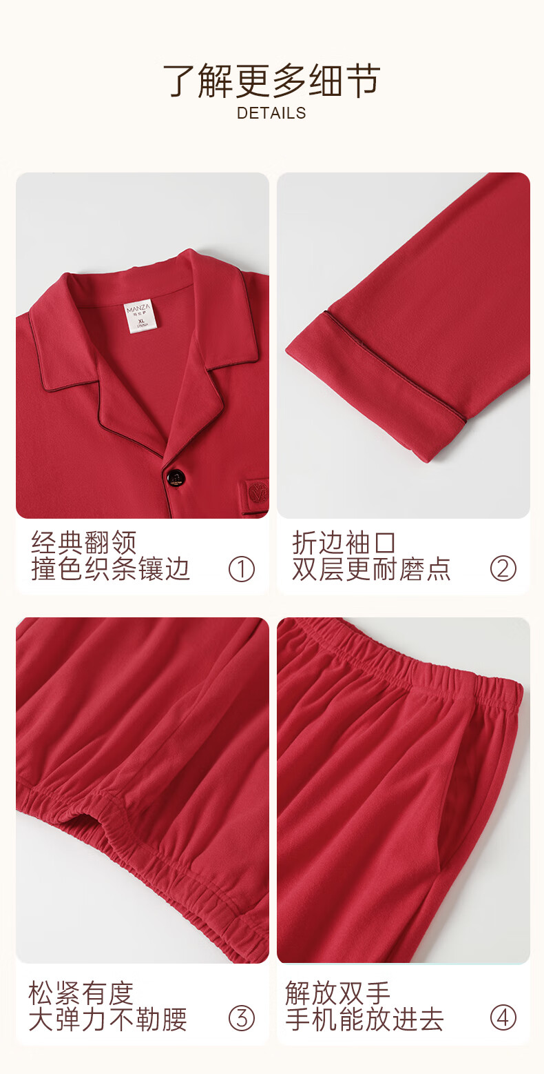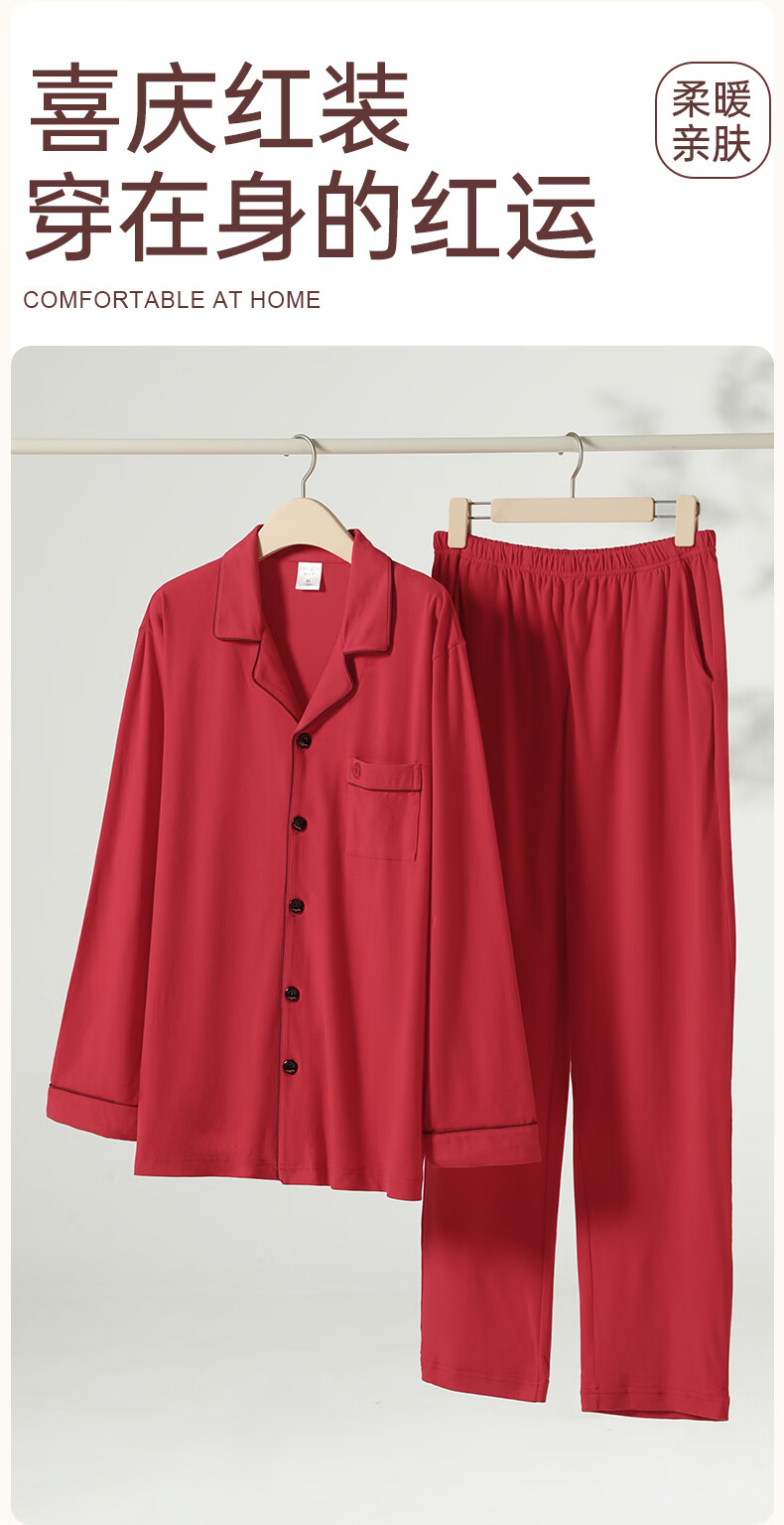 玛伦萨睡衣男春秋款长袖2025新款可外穿结婚本命年男士家居服套装 大红 L