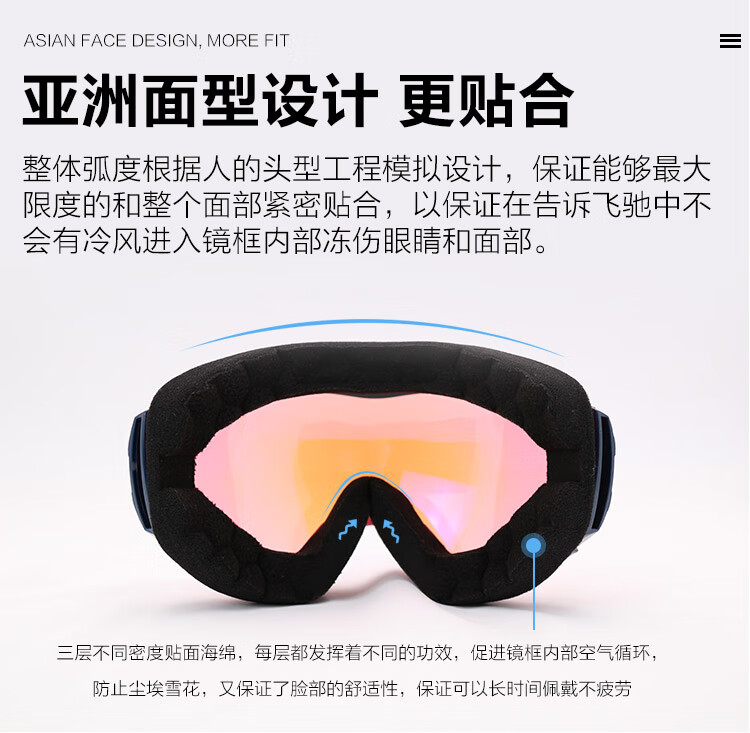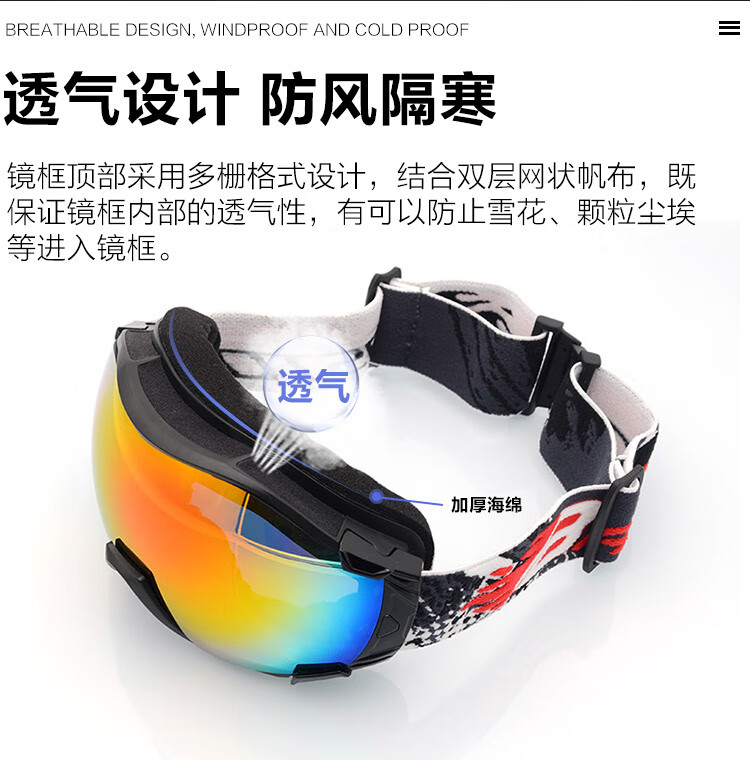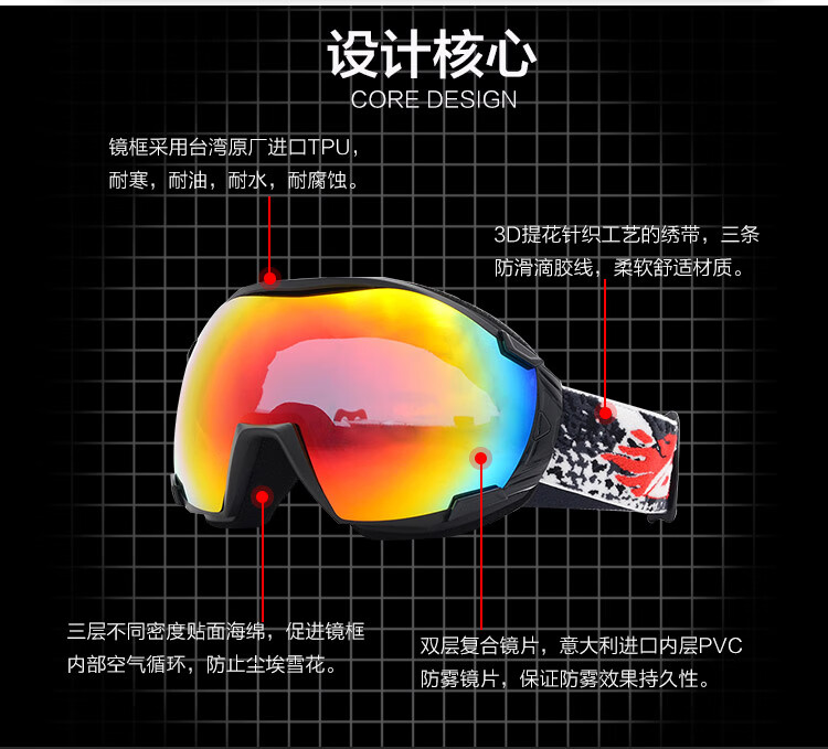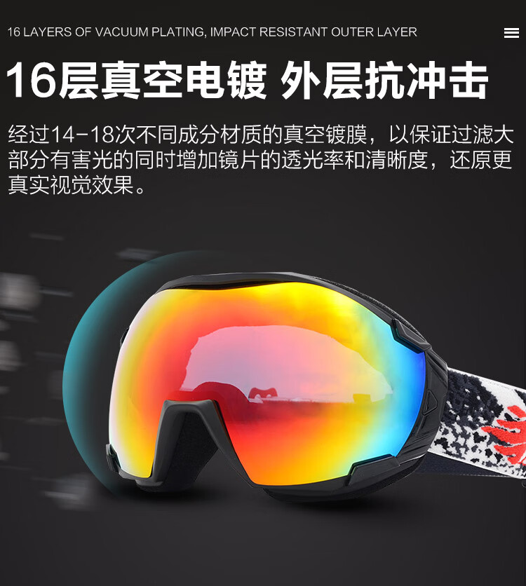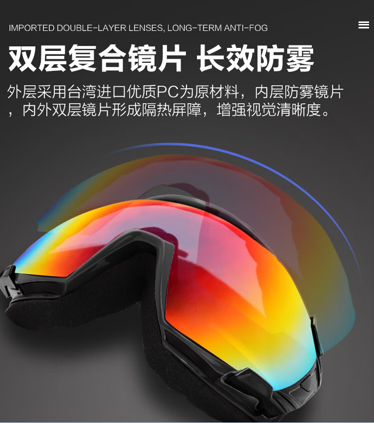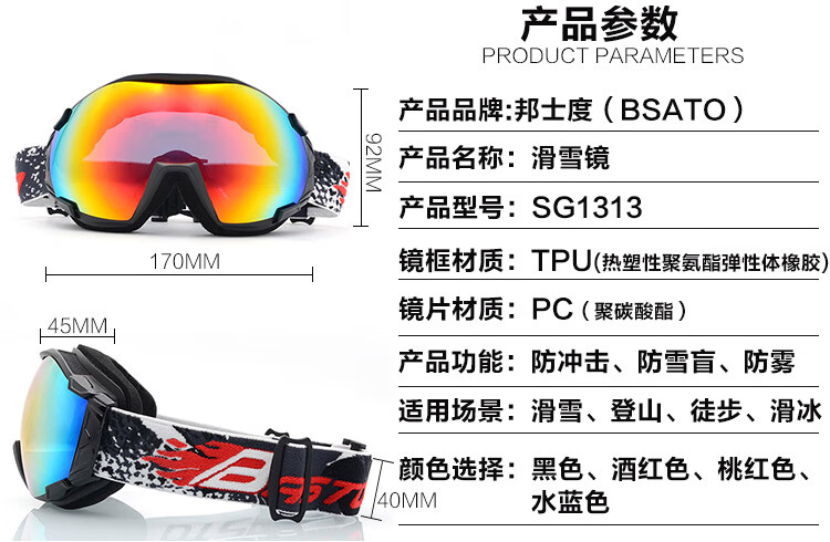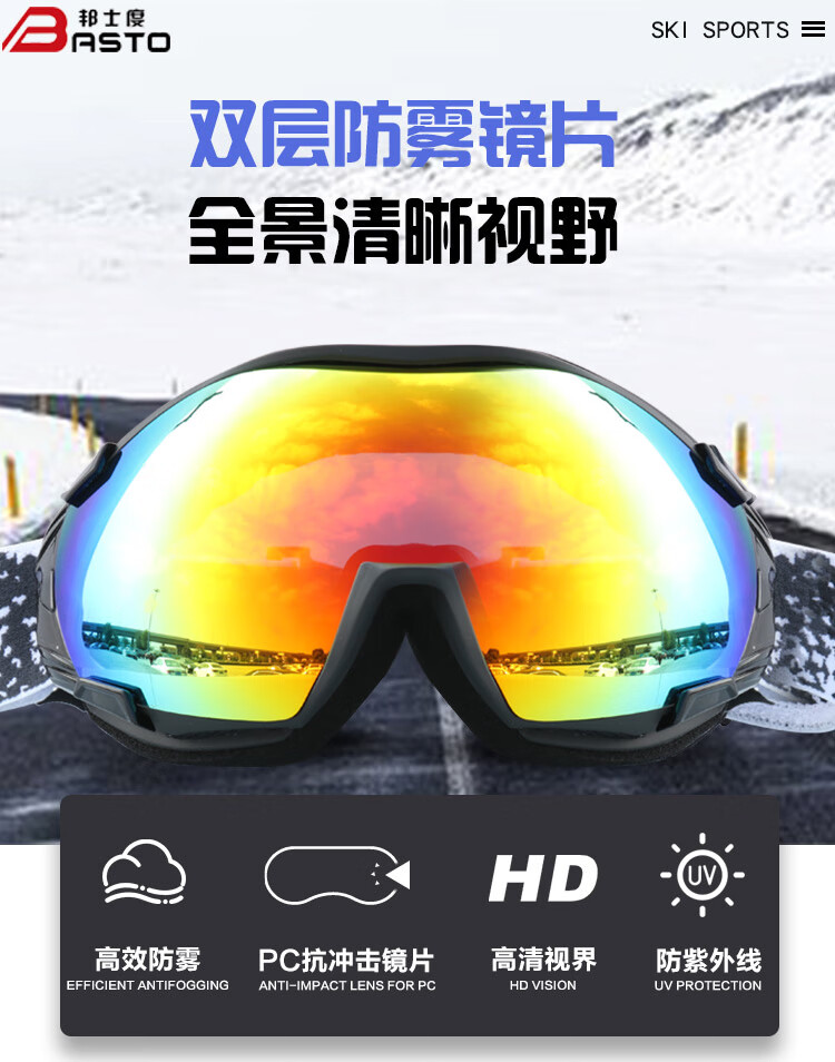 邦士度滑雪镜双层防雾镜片 台湾原产球面大视野防紫外线强光SG1313开学