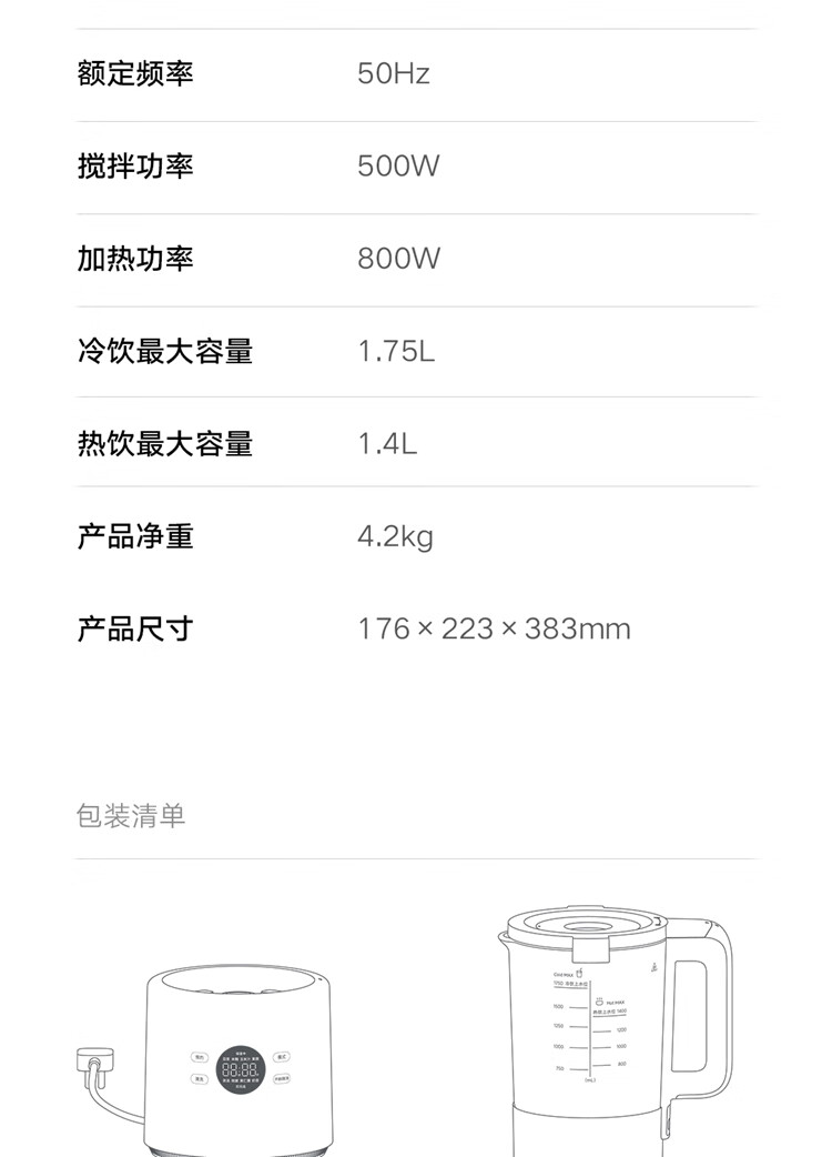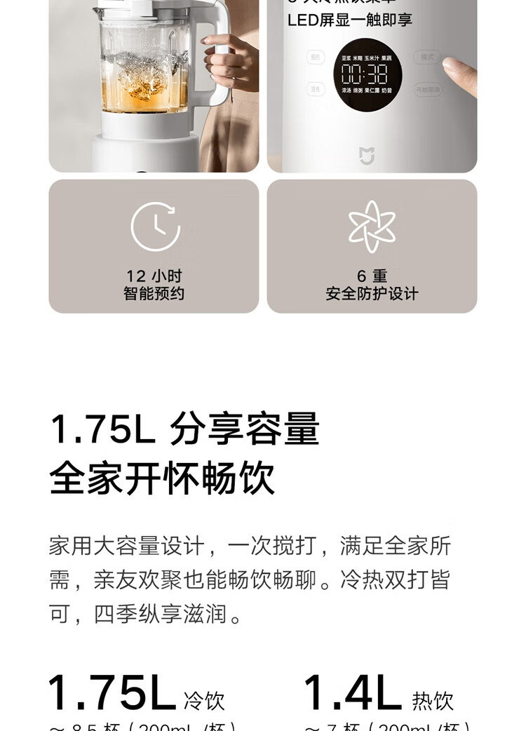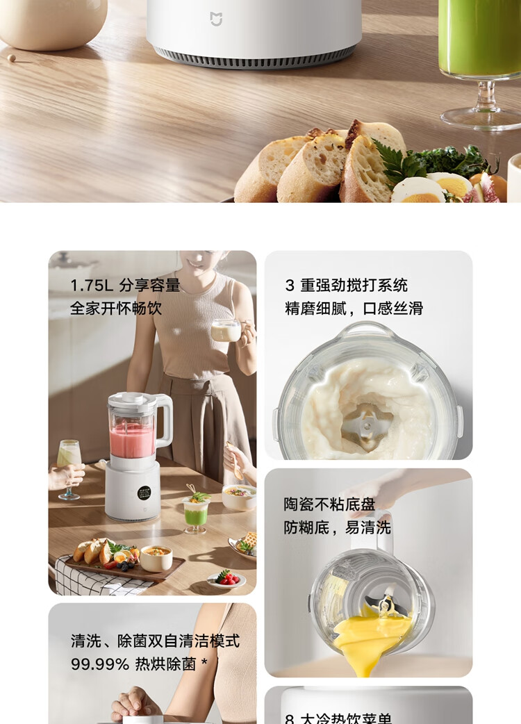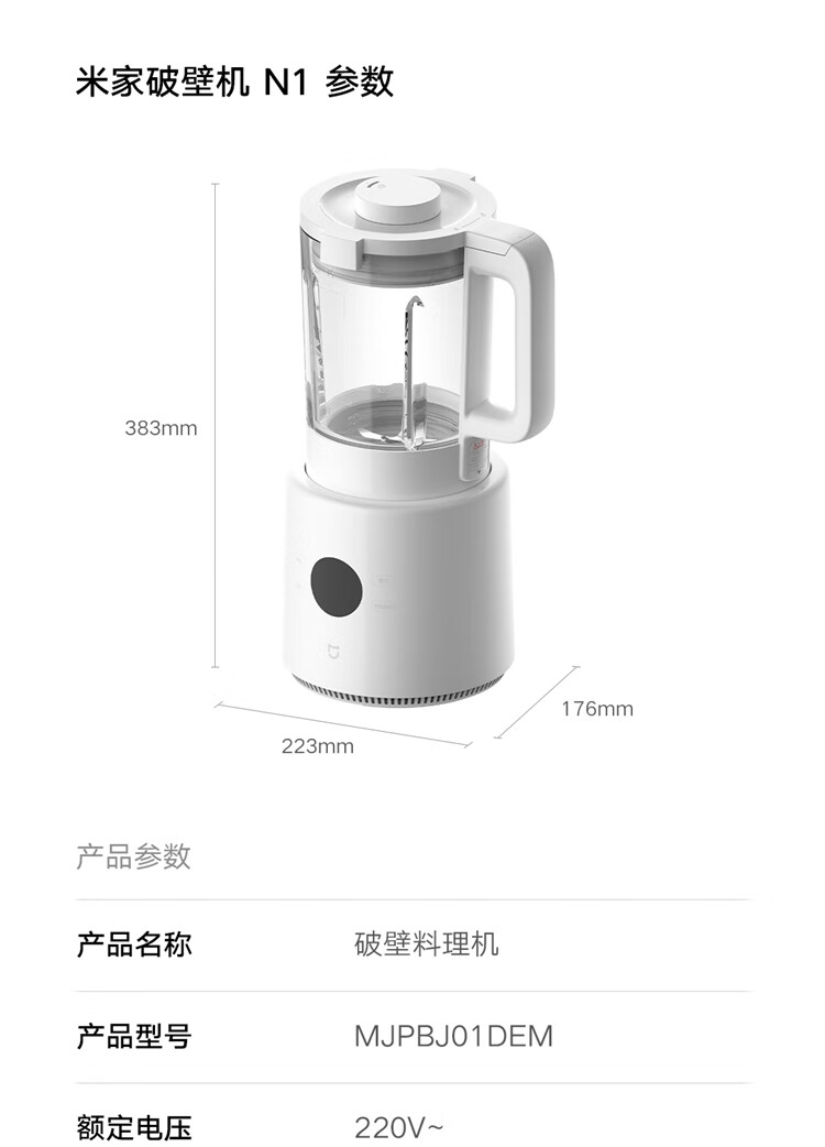 米家小米米家破壁机N1 1.75L超大容量强劲电机6叶精钢刀片高速破壁搅拌快速自清洗多重防护 米家破壁机N1