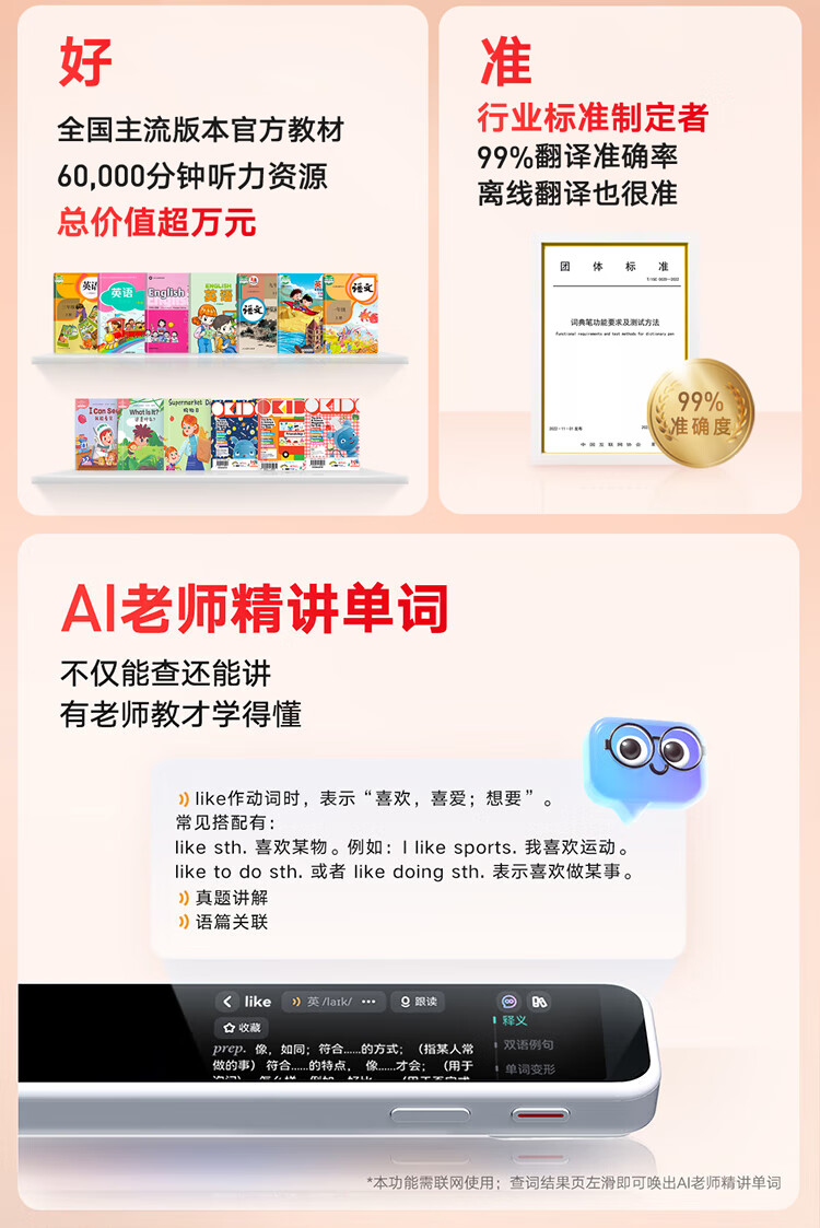 有道词典笔A6Pro英语点读笔小学初中高中新课标教材同步扫描学习笔电子词典翻译笔单词笔点读机学习机