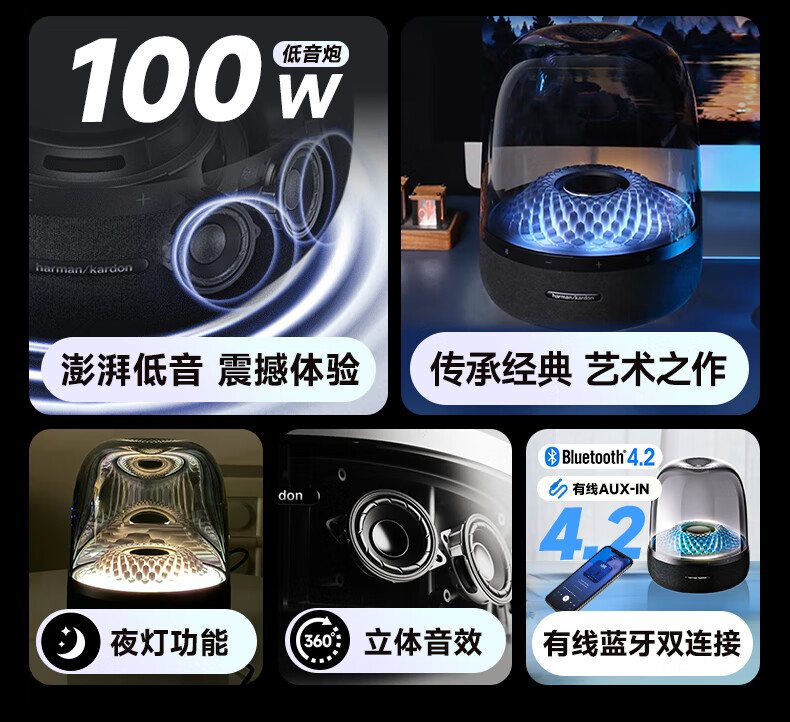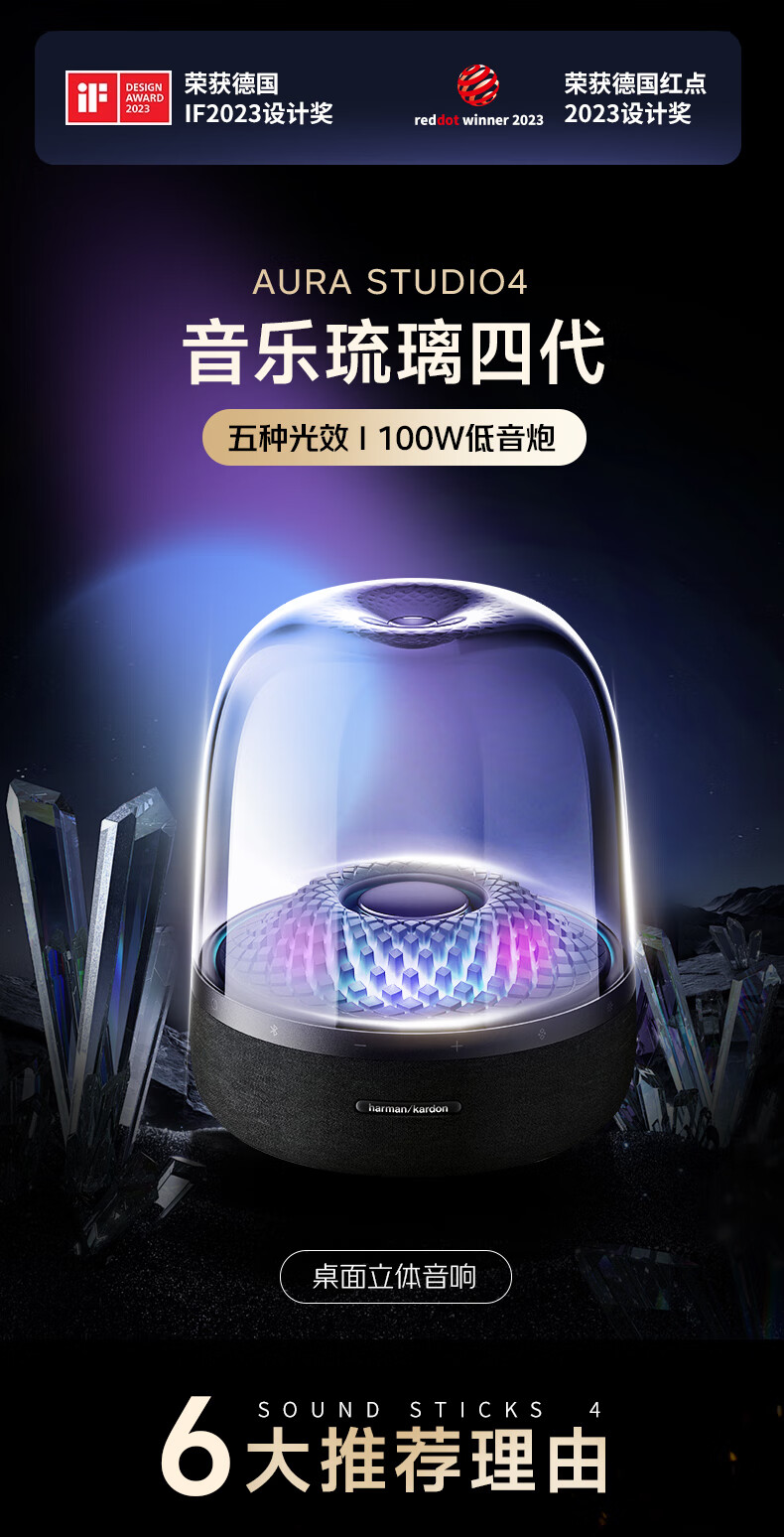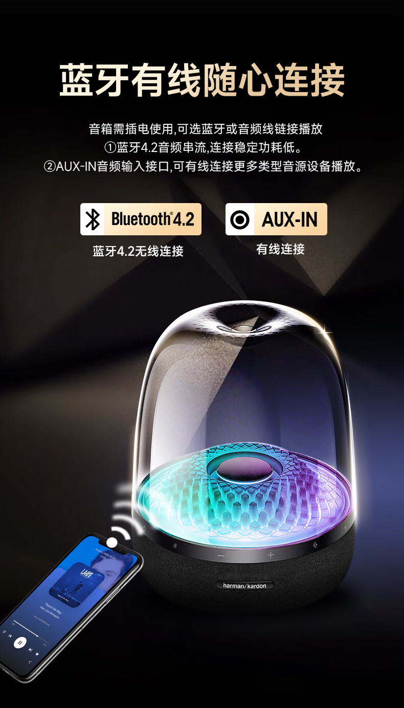哈曼卡顿(Harman/Kardon)AuraStudio4代家用蓝牙音箱 桌面电脑音箱 家庭影院音响 生日礼物 琉璃4晶莹剔透外观 5种氛围灯效 【老款】琉璃4代