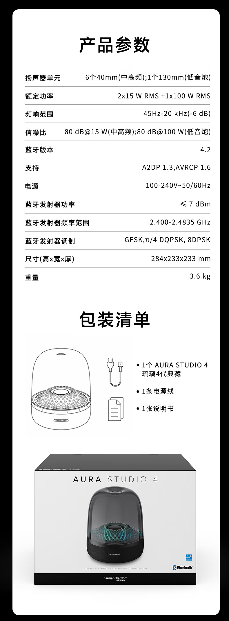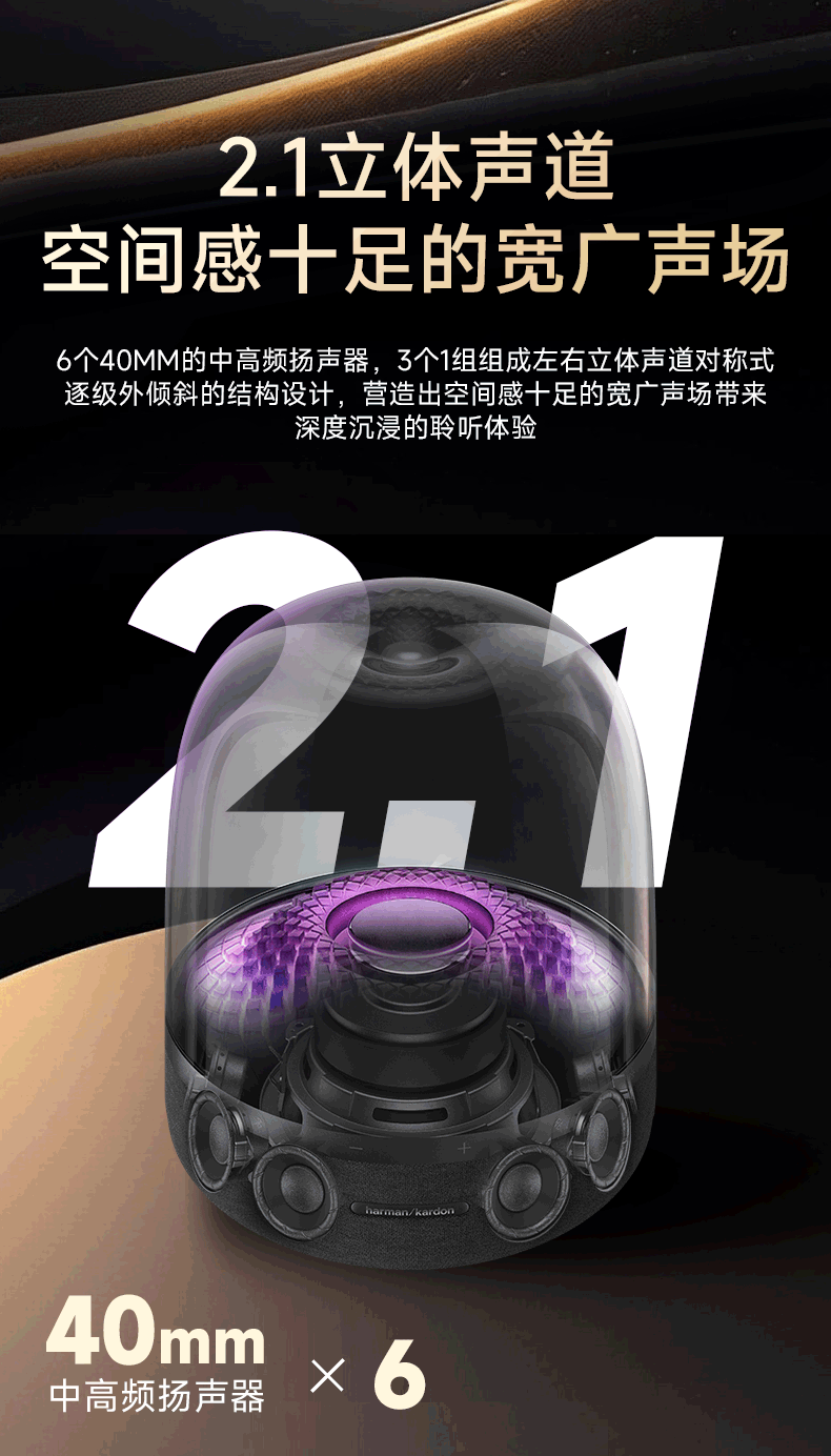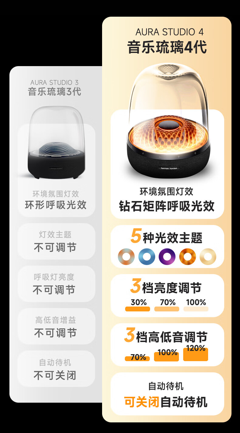 哈曼卡顿(Harman/Kardon)AuraStudio4代家用蓝牙音箱 桌面电脑音箱 家庭影院音响 生日礼物 琉璃4晶莹剔透外观 5种氛围灯效 【老款】琉璃4代