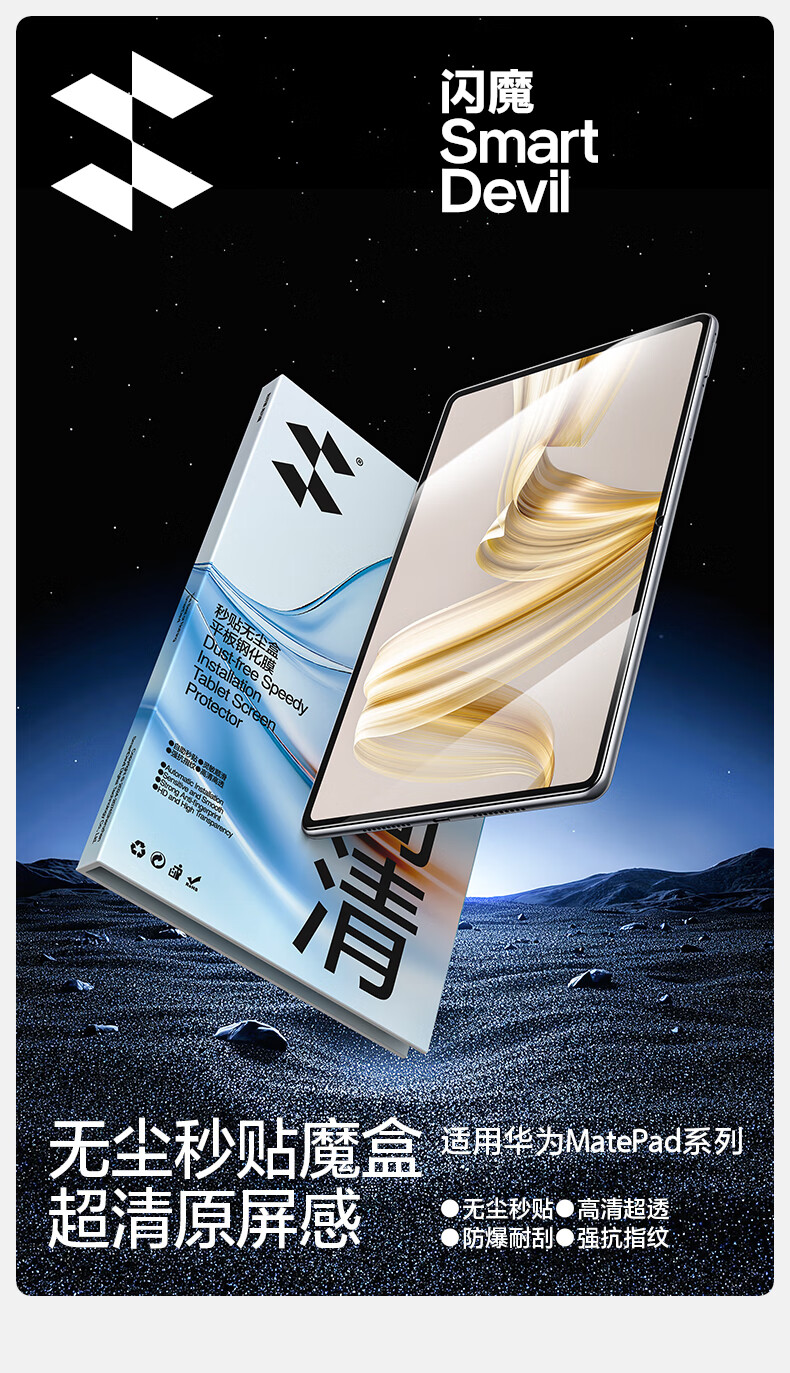 闪魔适用华为matepadpro12.2钢化膜2025/24款华为平板高清全屏秒贴无尘盒