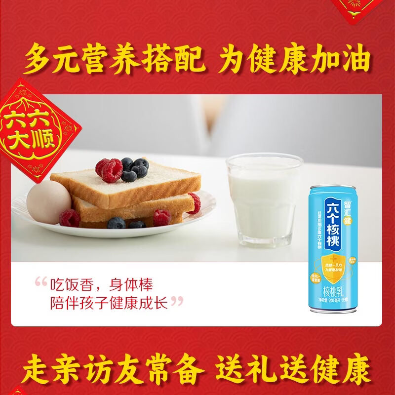 六个核桃智汇健核桃乳240ml*12罐*2箱植物蛋白饮料【年货好礼】