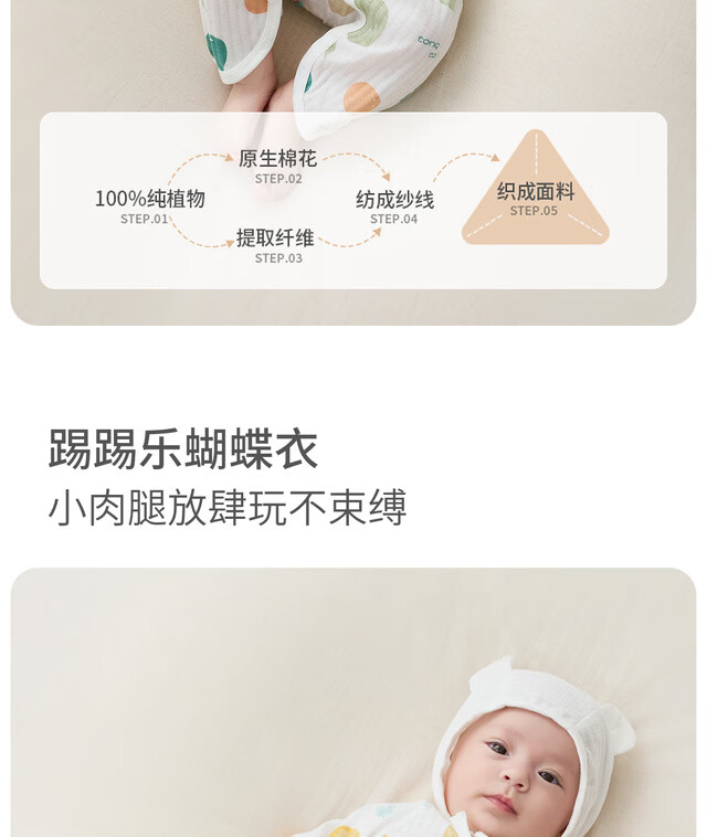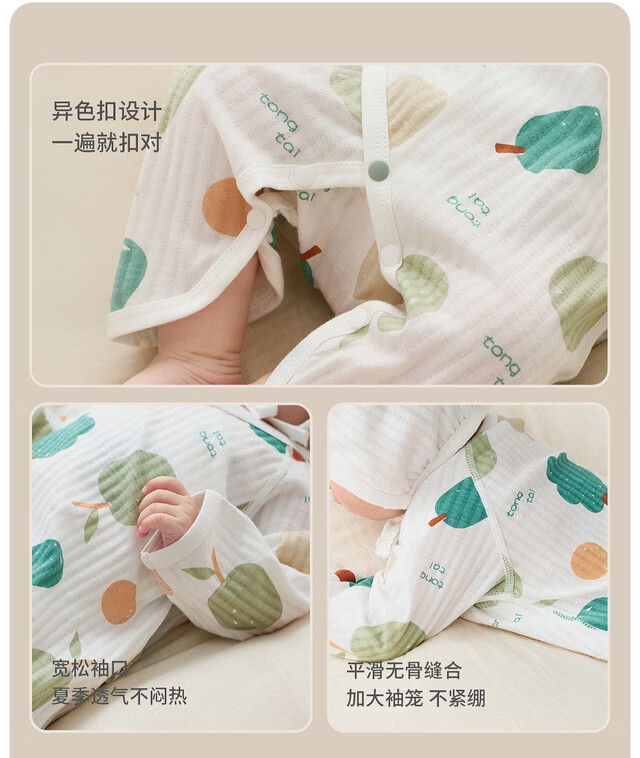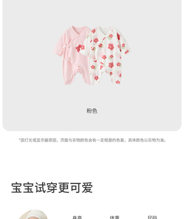 童泰(TONGTAI)婴儿连体衣夏纯棉衣服初生宝宝蝴蝶哈衣爬服提花粉色59cm