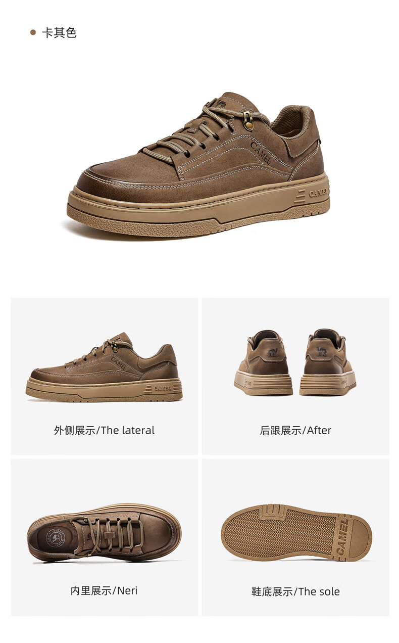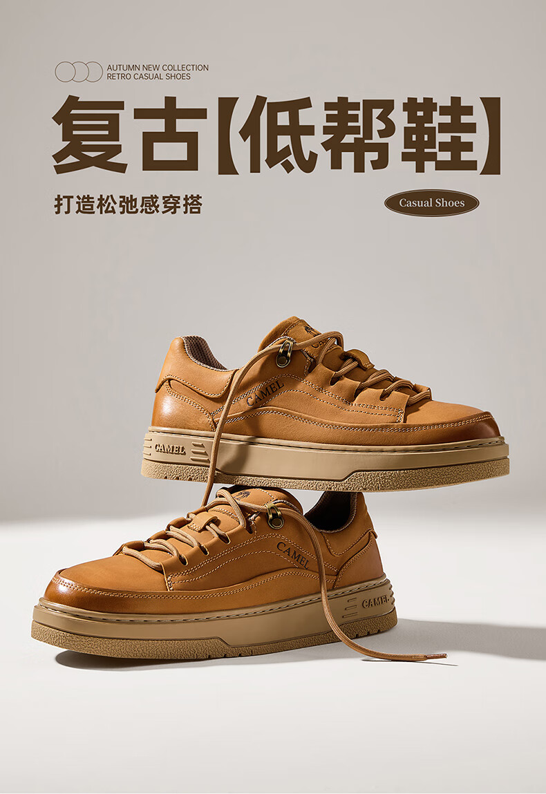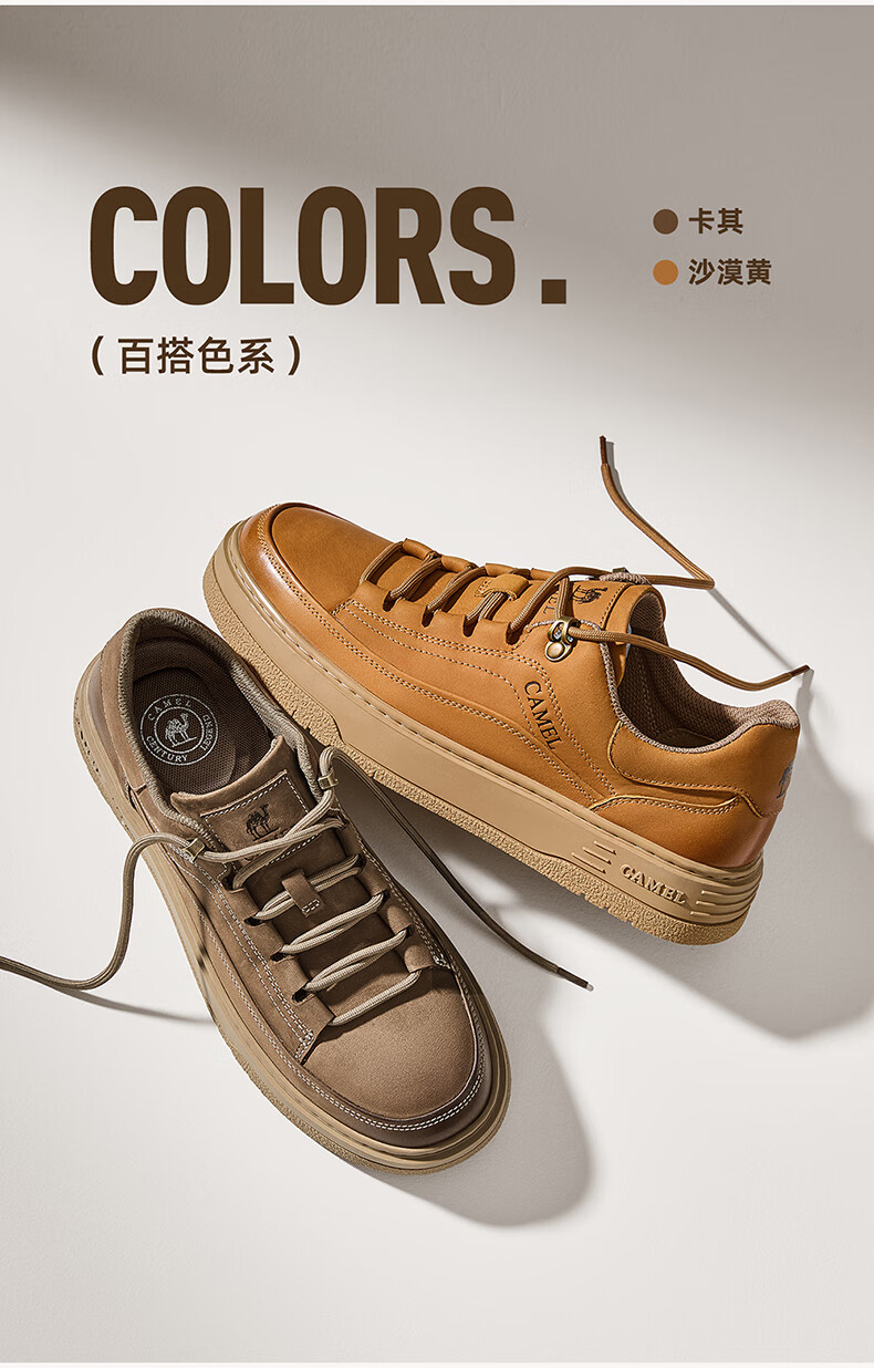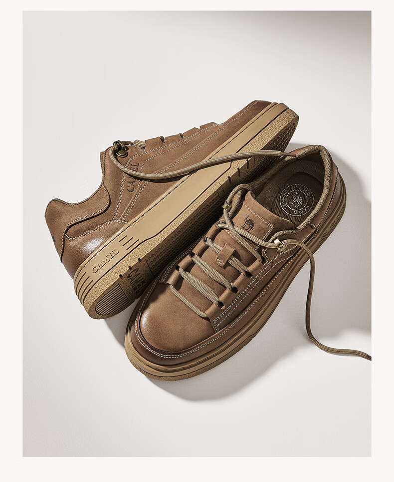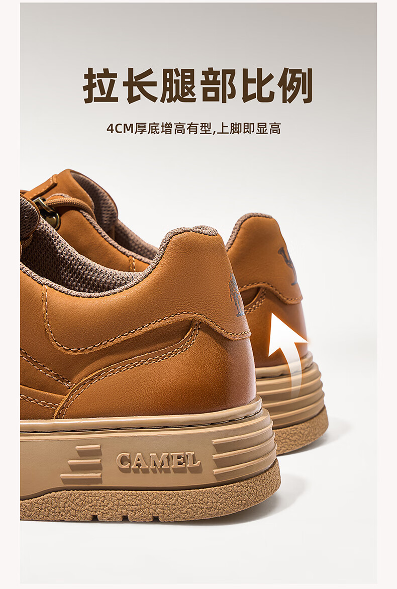 骆驼(CAMEL)磨砂牛皮舒适增高城市复古低帮男休闲板鞋 G15A136034 卡其 42