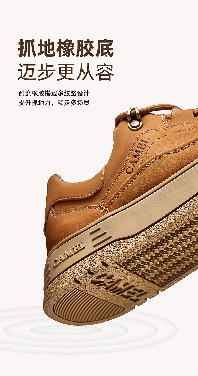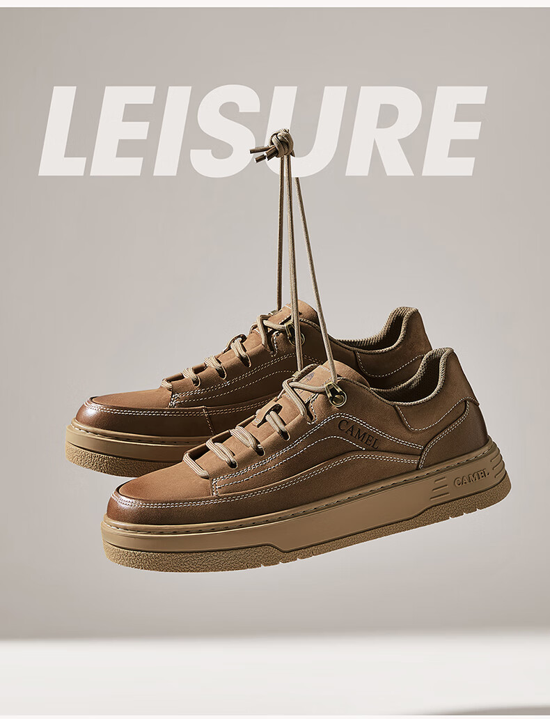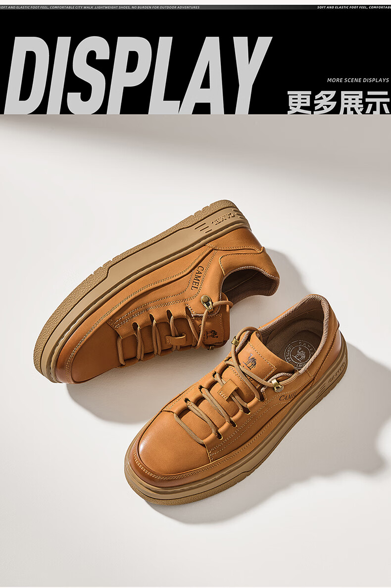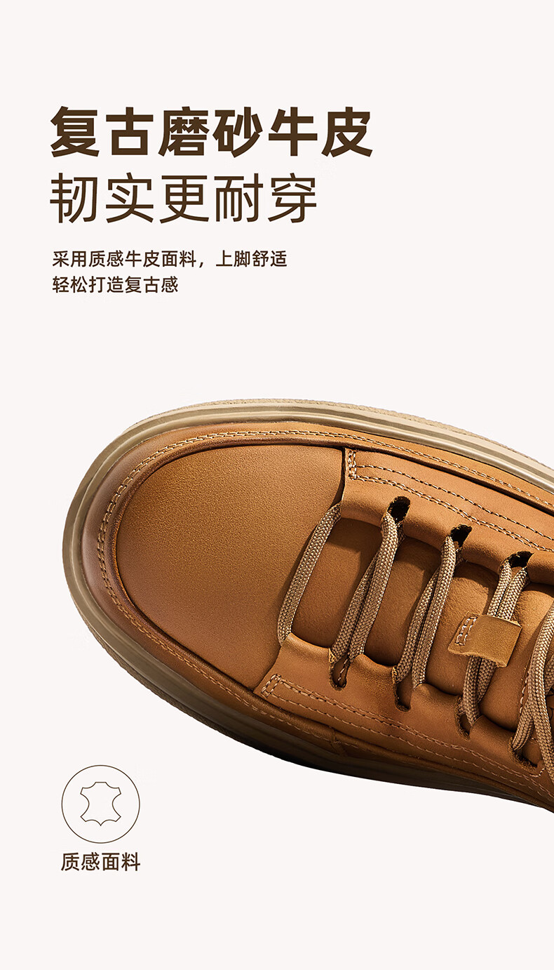 骆驼(CAMEL)磨砂牛皮舒适增高城市复古低帮男休闲板鞋 G15A136034 卡其 42