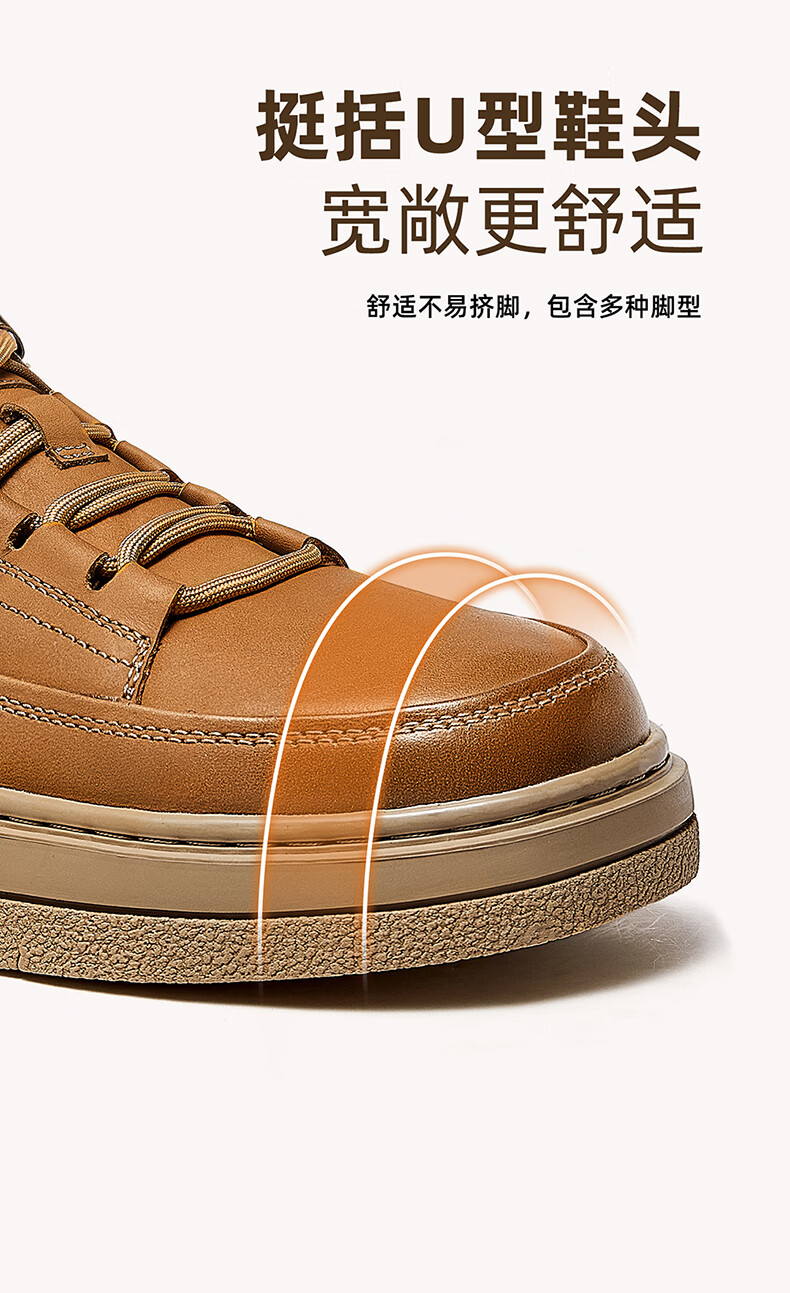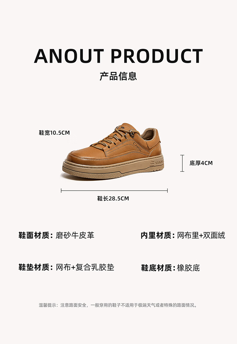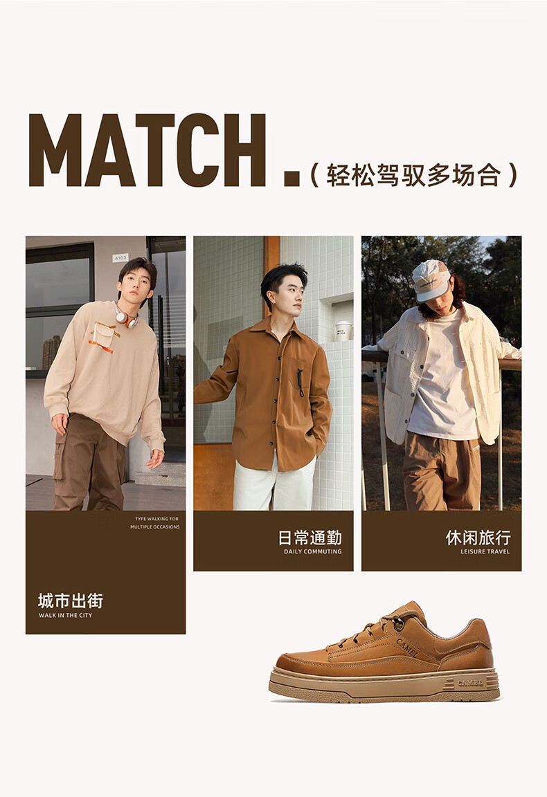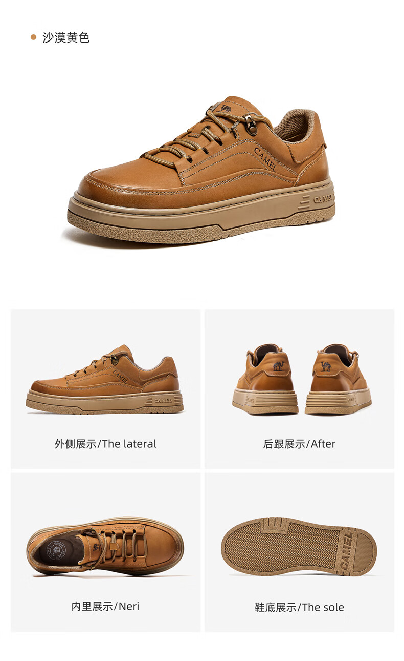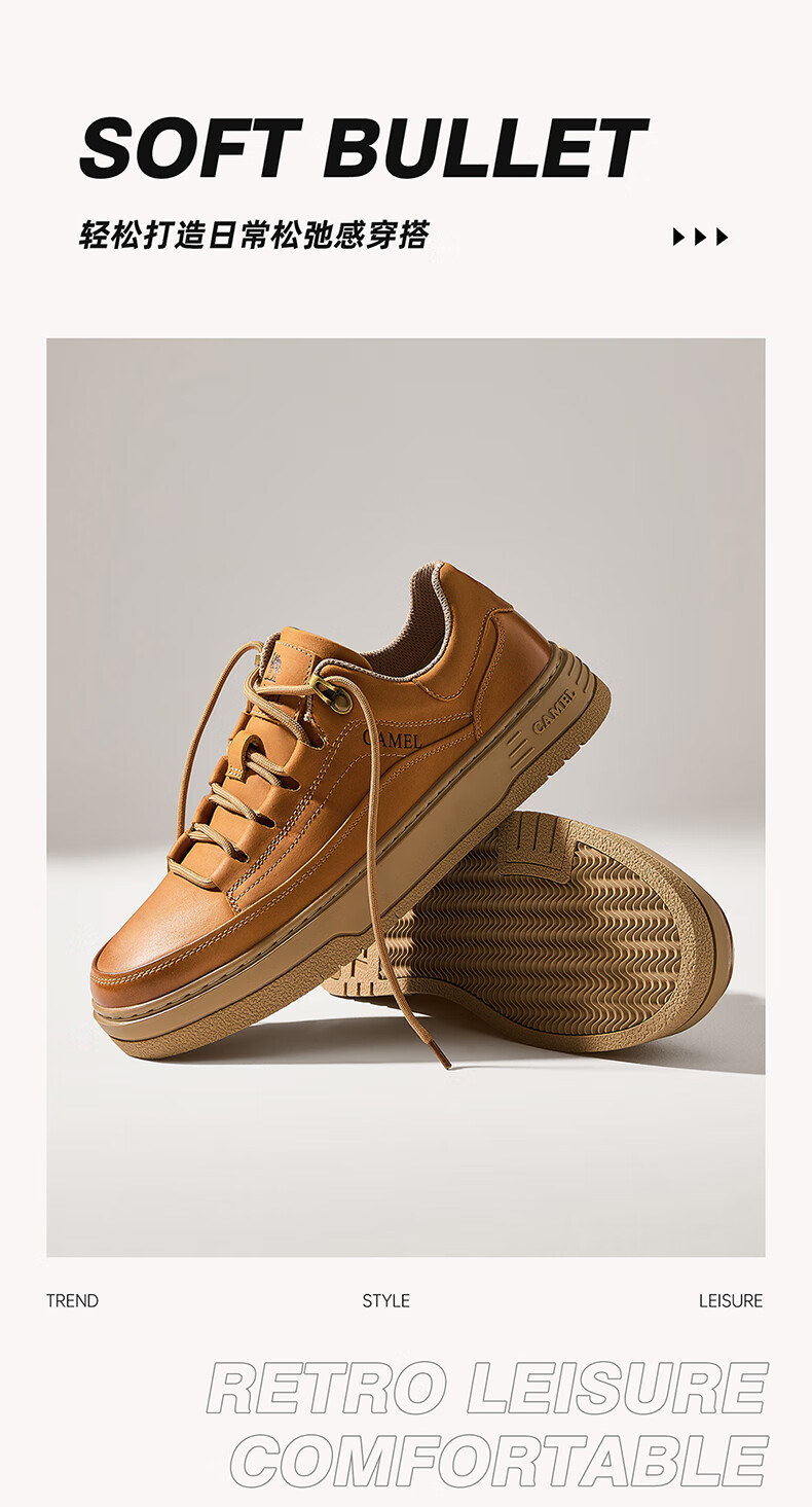 骆驼(CAMEL)磨砂牛皮舒适增高城市复古低帮男休闲板鞋 G15A136034 卡其 42