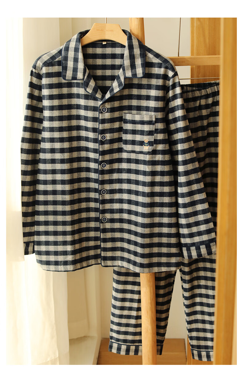 蔓秋 MEJU《小熊》男士翻领开门襟长袖长裤家居服套装 XL