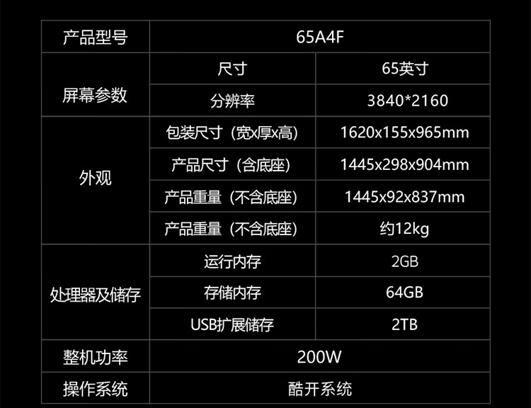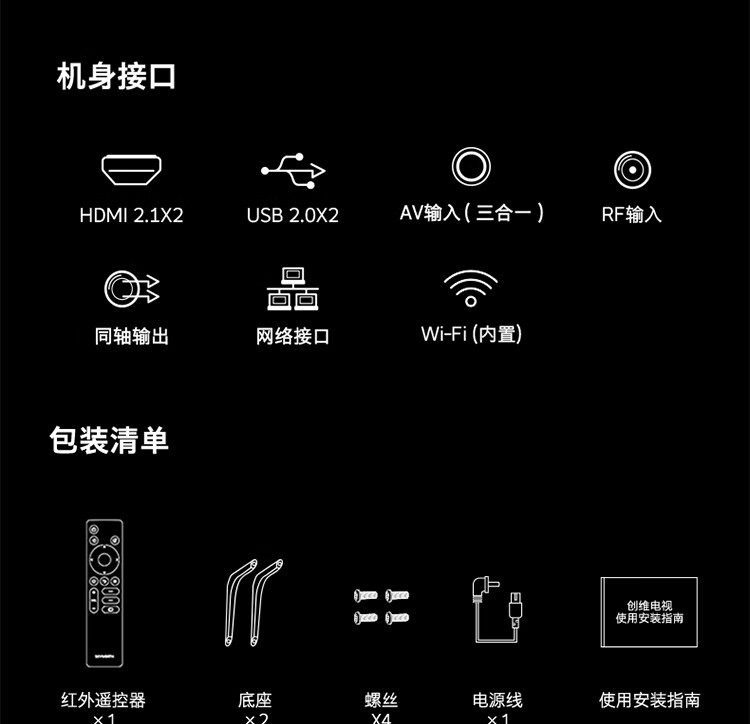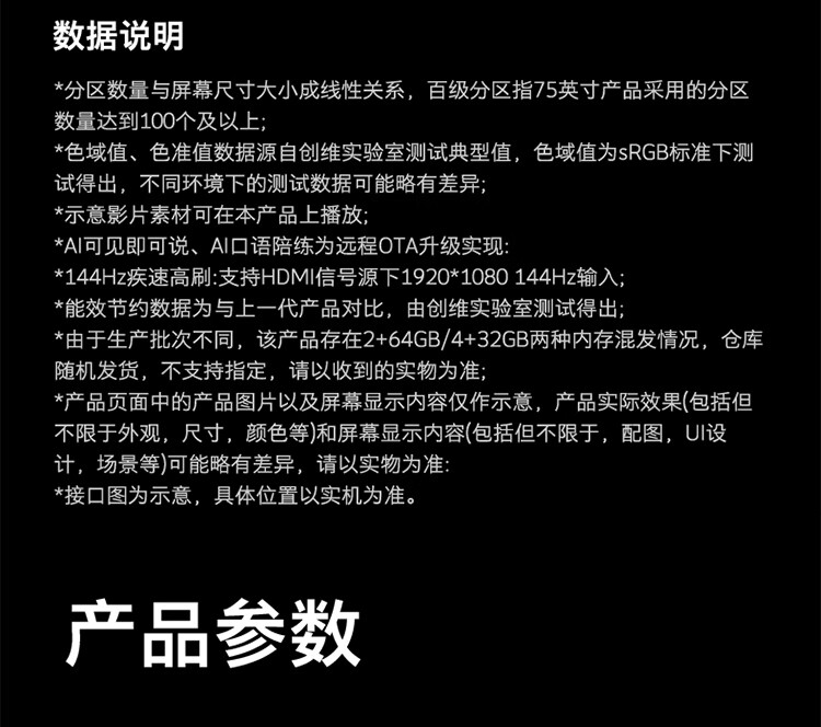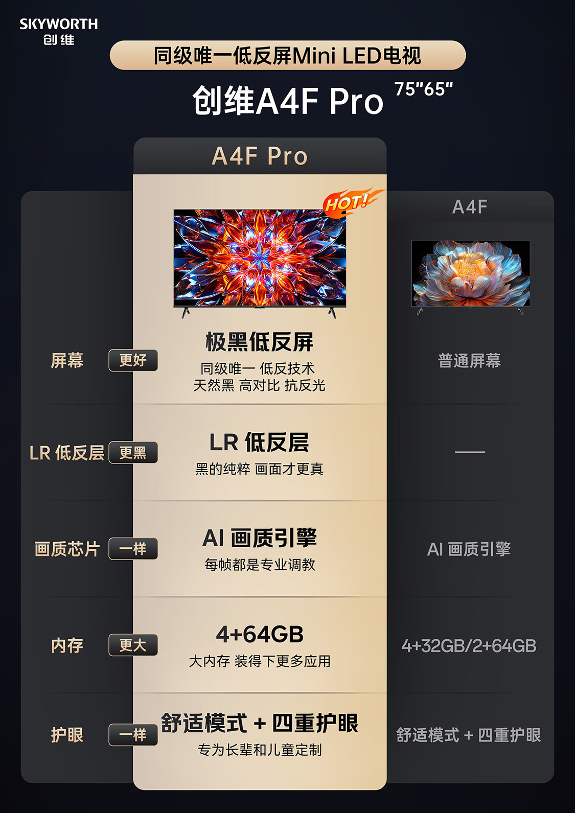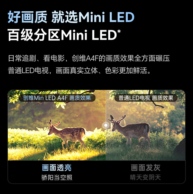 创维电视65A4F 65英寸电视机mini led 百级分区国家补贴一级能效 液晶平板游戏