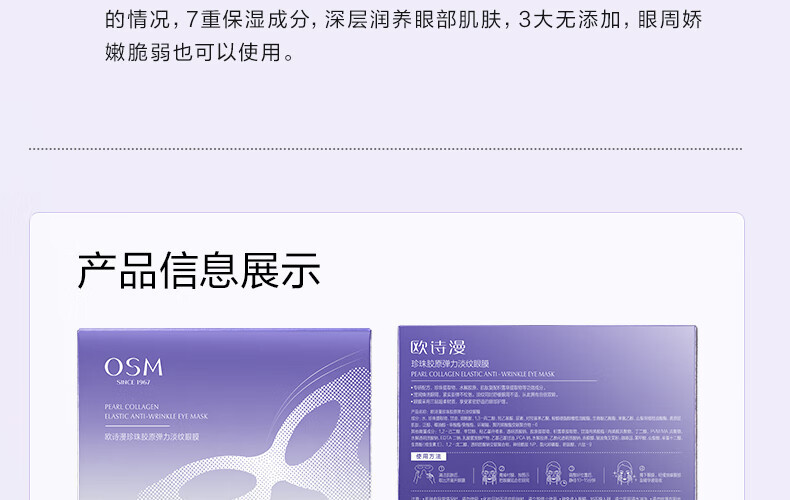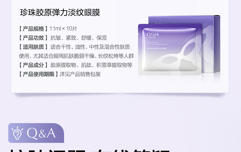 欧诗漫(OSM)珍珠胶原弹力淡纹眼膜10片淡纹抗皱提亮紧致补水护肤品 新年礼物