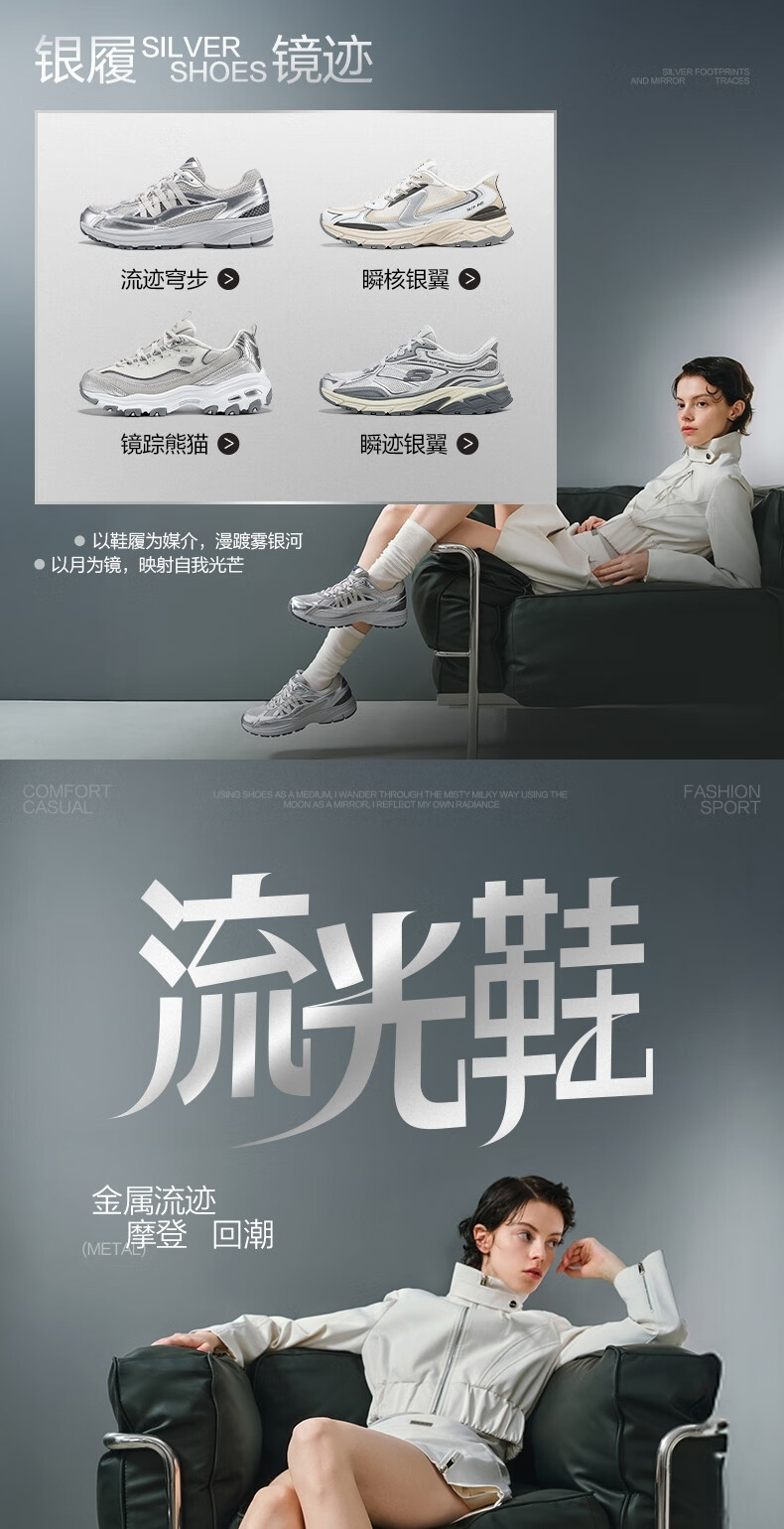 斯凯奇(Skechers)女鞋秋季2025年新款复古老爹鞋运动软底百搭休闲跑步鞋159306